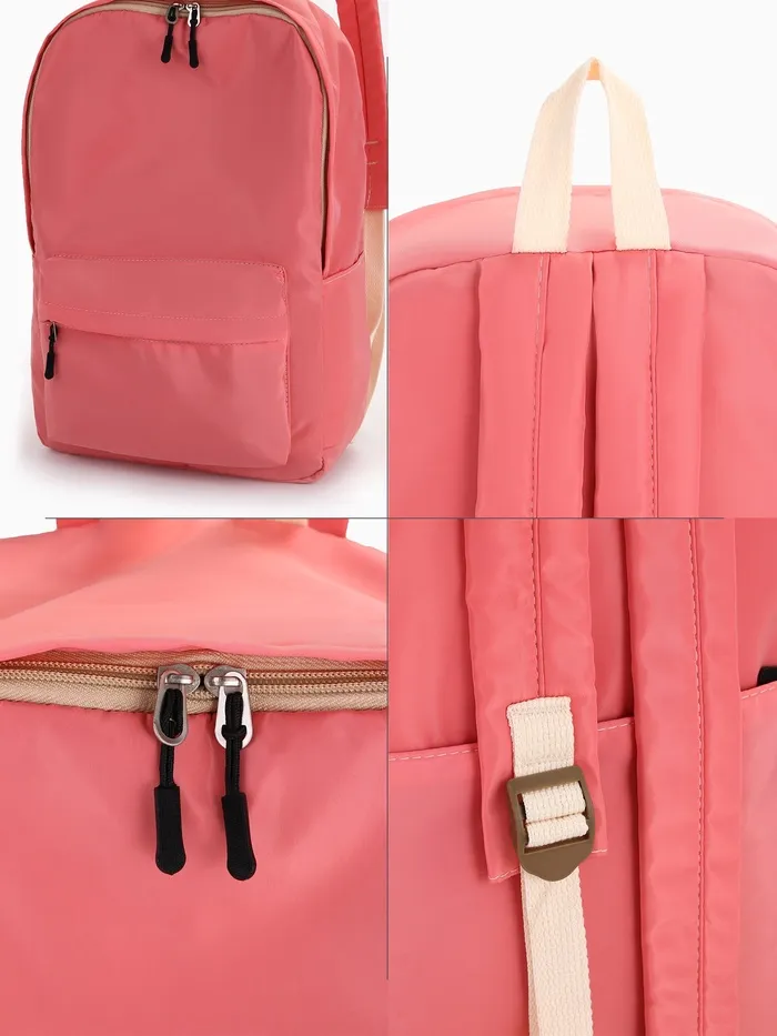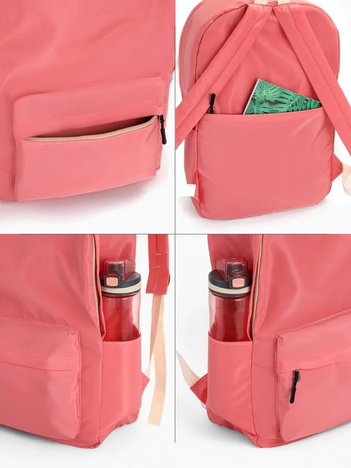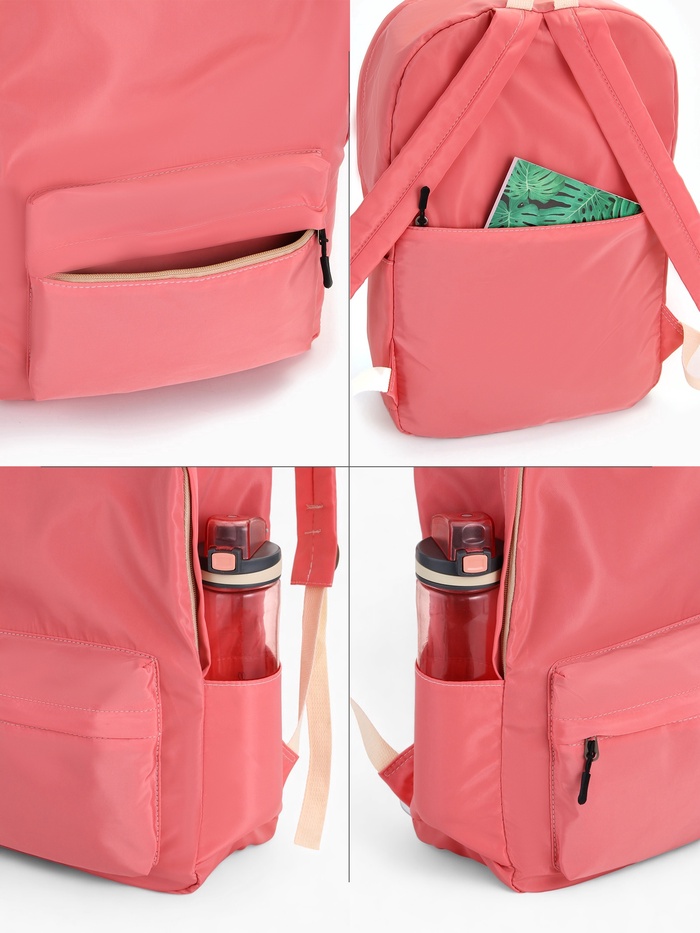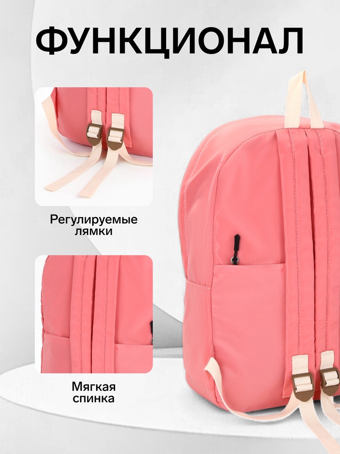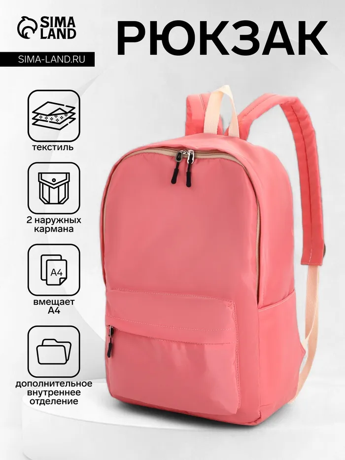 Рюкзак школьный на молнии, с карманами, однотонный, размер 28×12×42 см, розовый — Характеристики