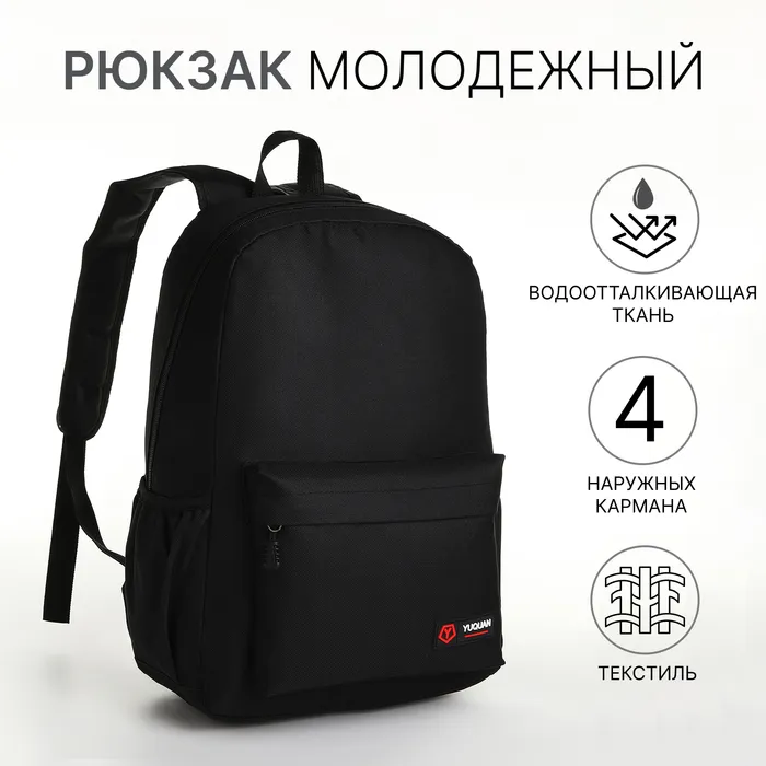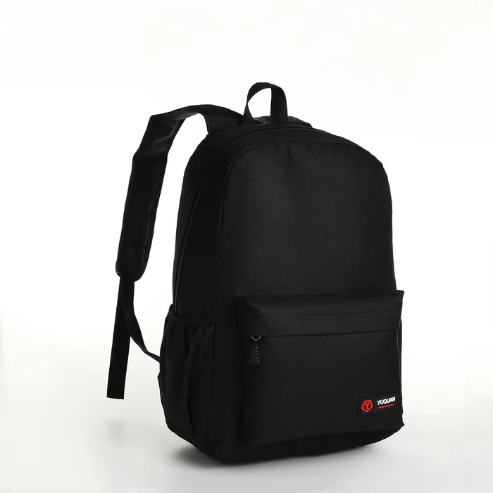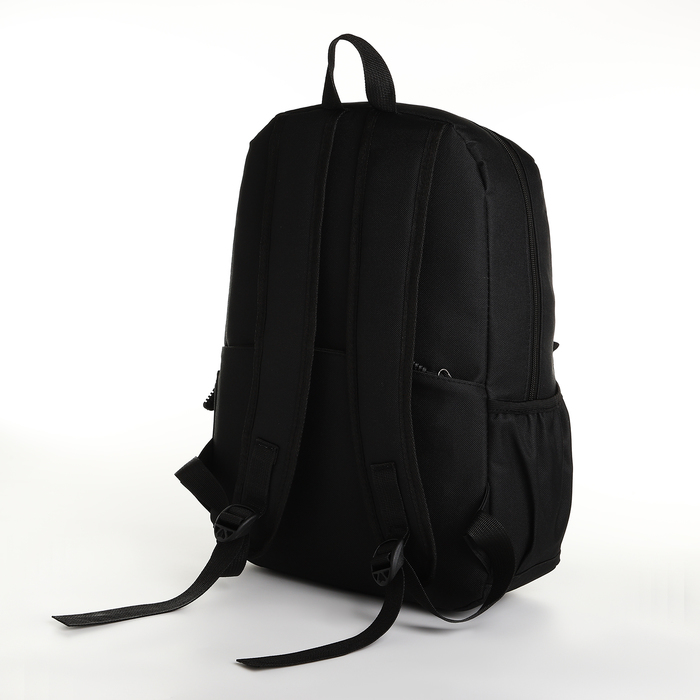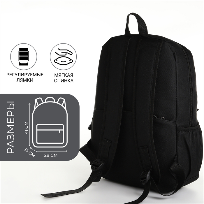 Рюкзак школьный на молнии, с карманами, однотонный, размер 28×13×41 см, чёрный — Характеристики
