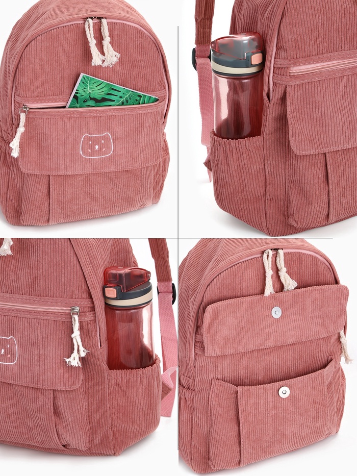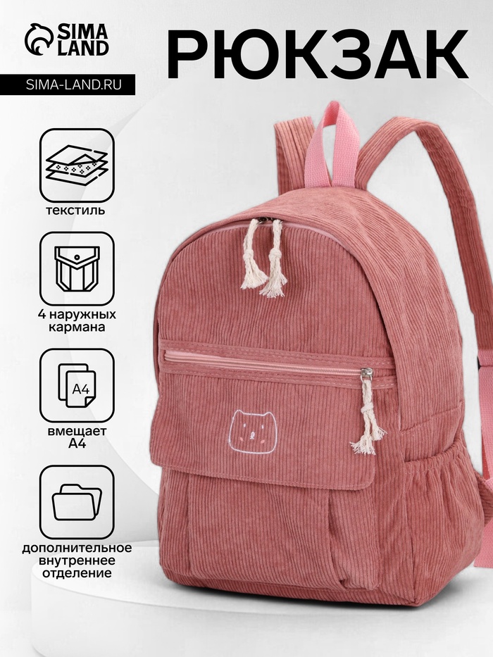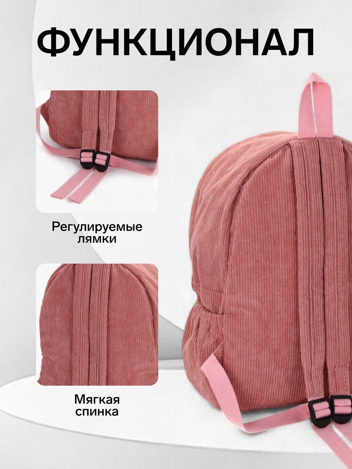 Рюкзак школьный на молнии, с карманами, однотонный, размер 29×13×38 см, розовый — Характеристики