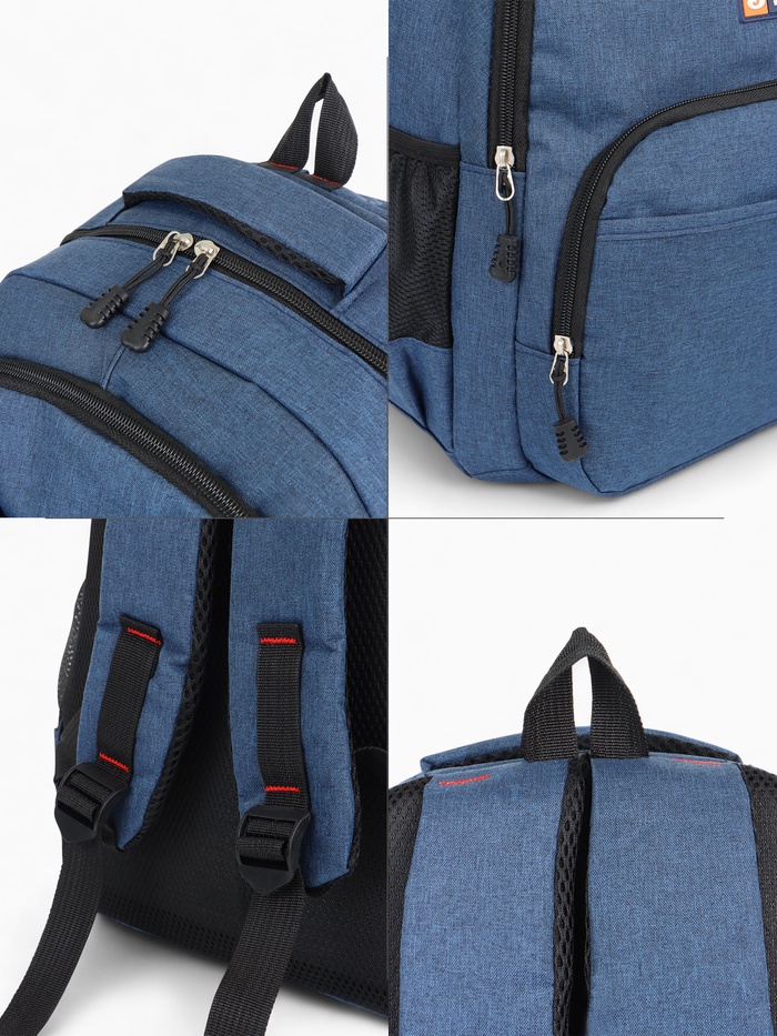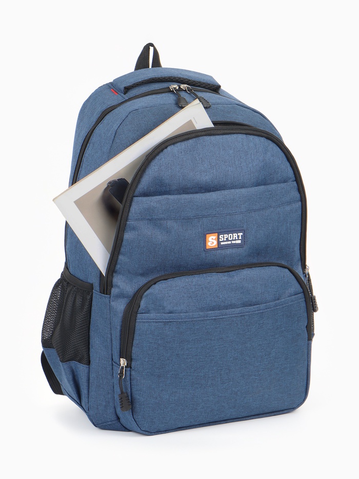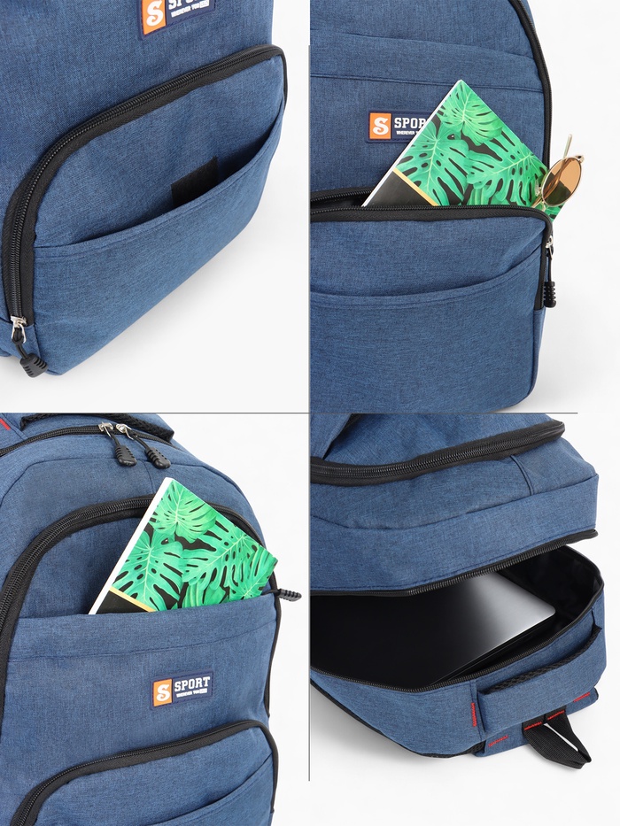 Рюкзак школьный на молнии, с карманами, однотонный, размер 30×14×46 см, синий — Характеристики