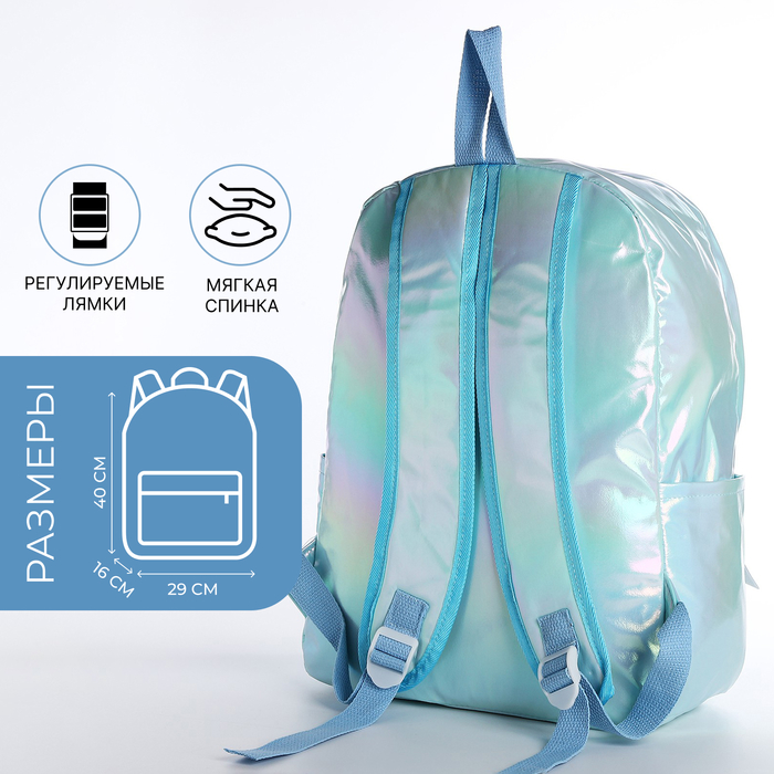 Рюкзак школьный на молнии, с карманами, перламутровый/голубой — Характеристики