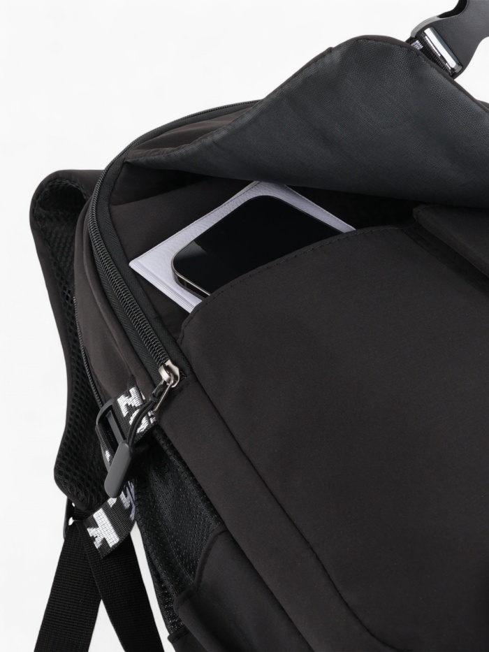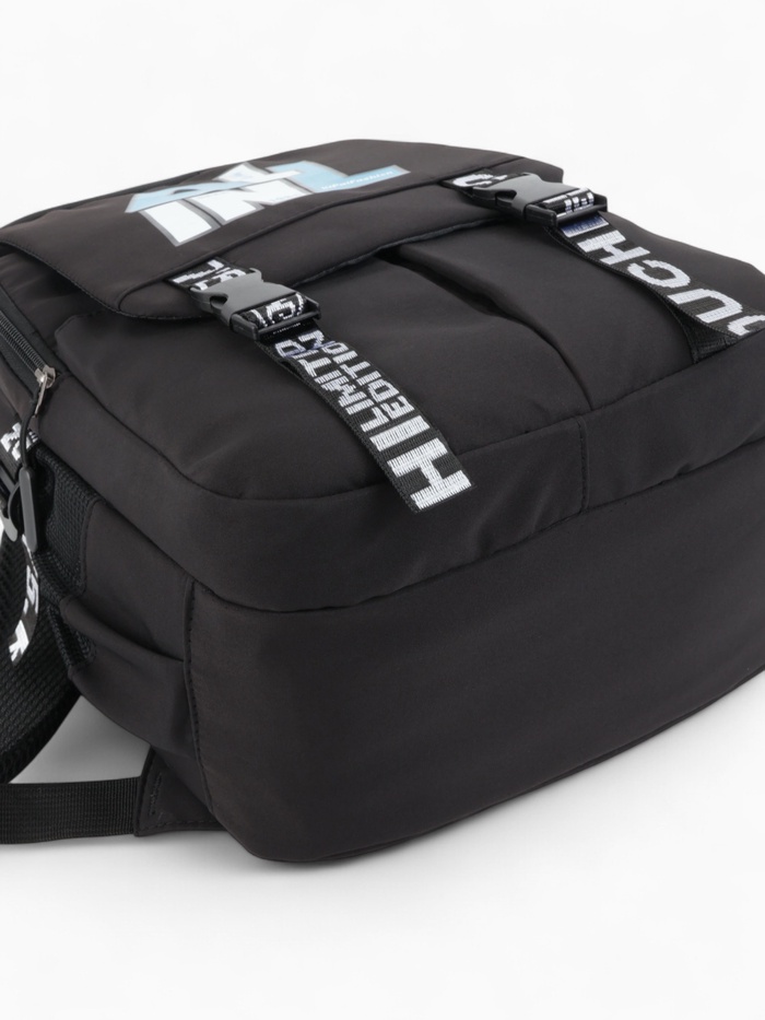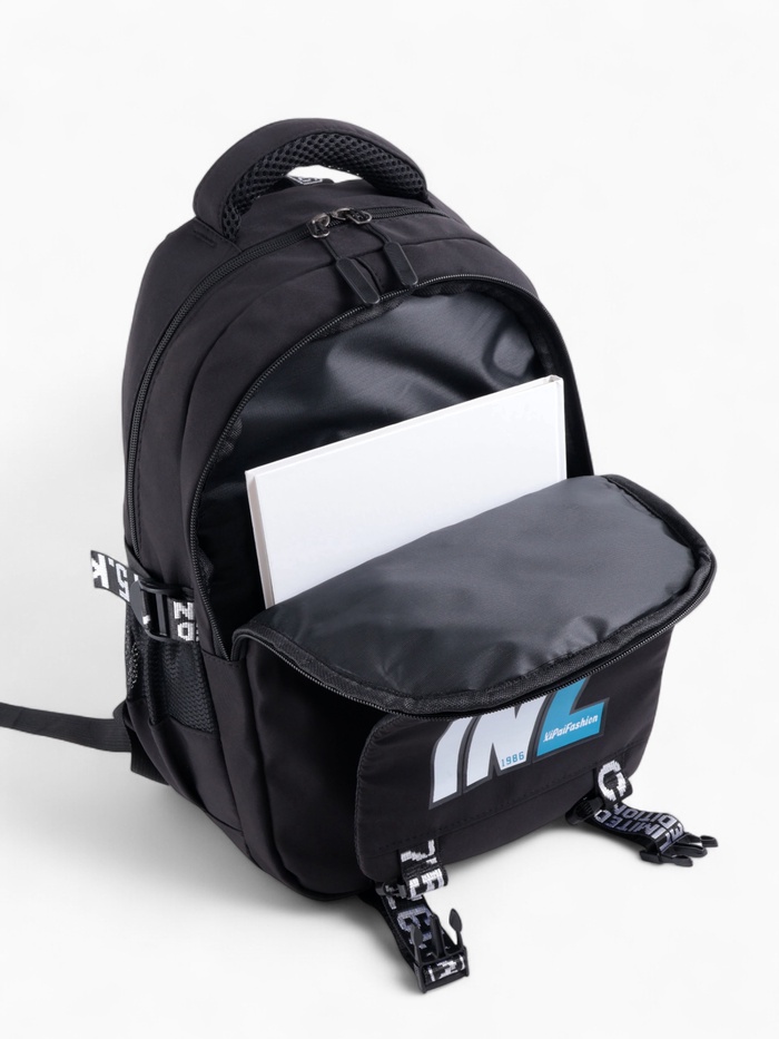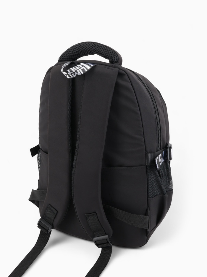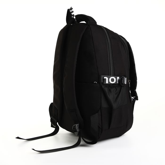 Рюкзак школьный на молнии, с карманами, принтом, размер 28×11×41 см, чёрный/голубой/белый — Характеристики