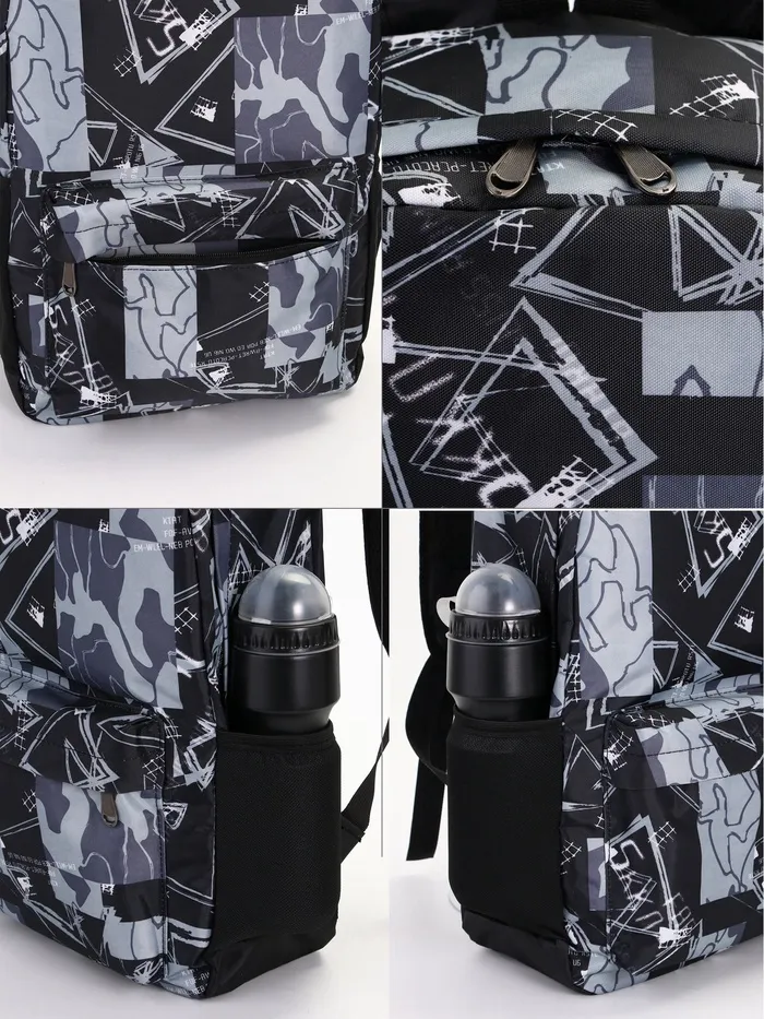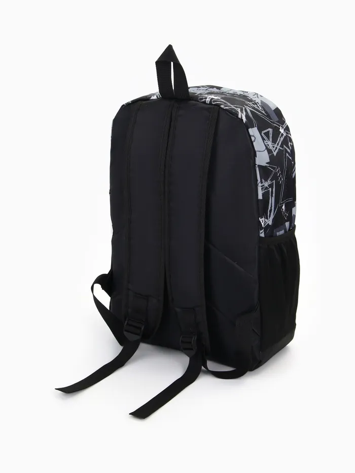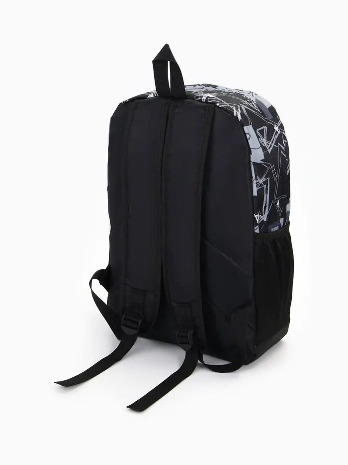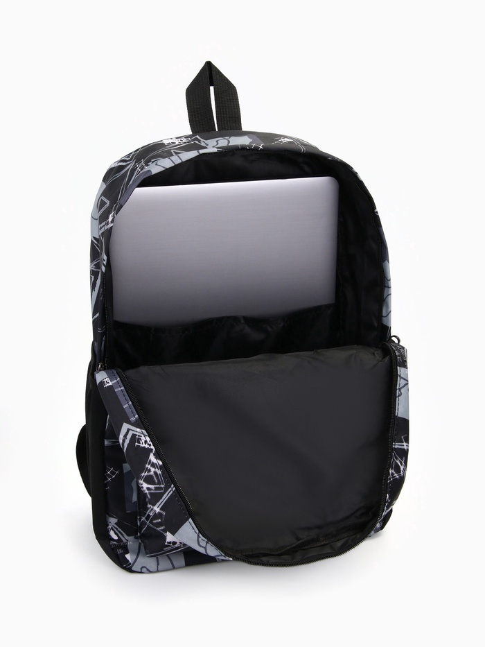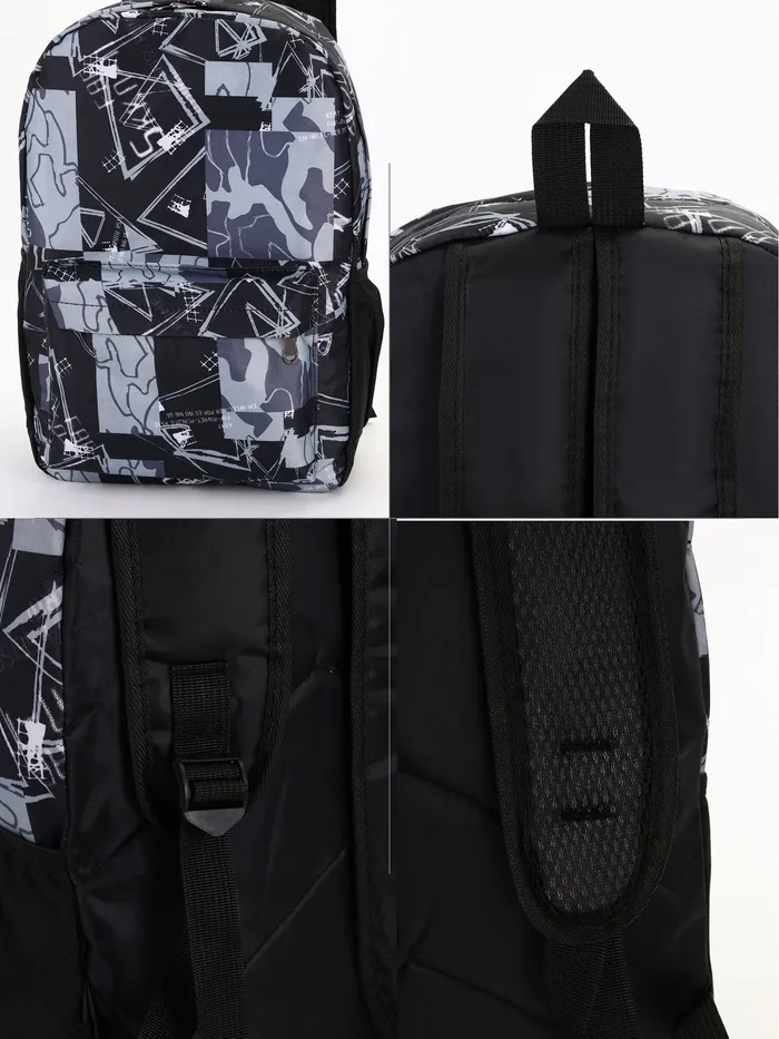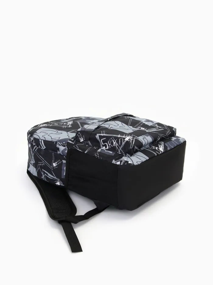 Рюкзак школьный на молнии, с карманами, принтом, размер 30×13×42 см, чёрный/серый — Характеристики