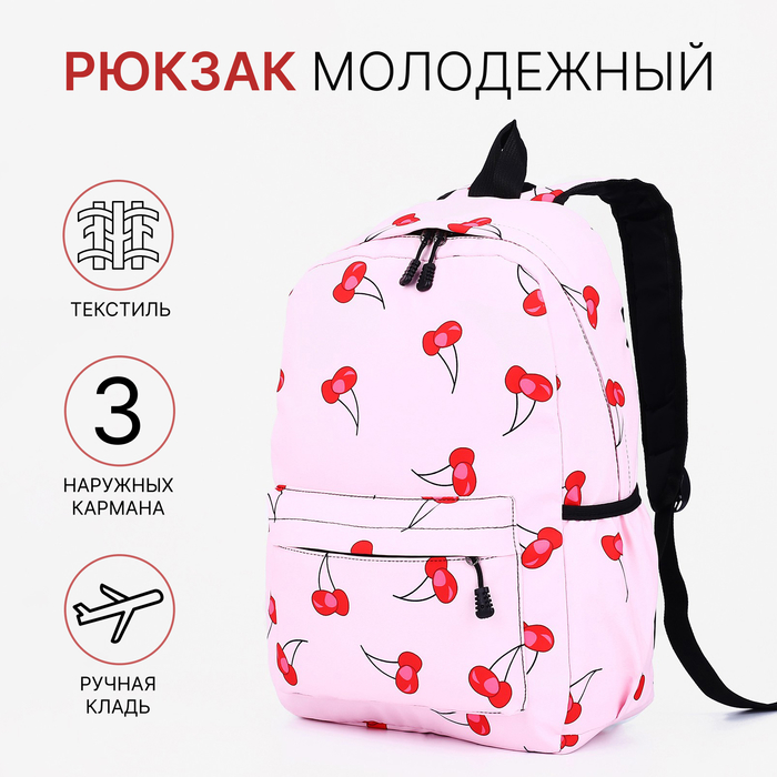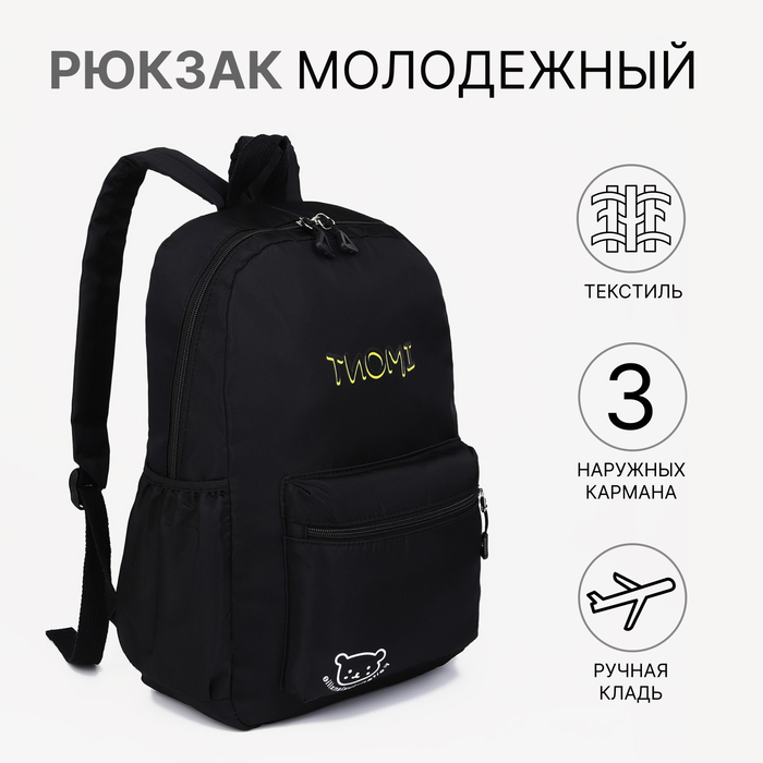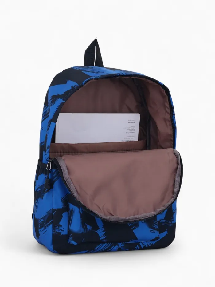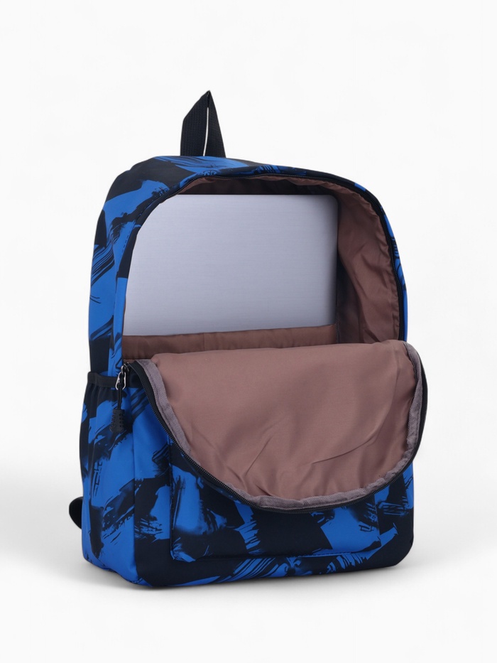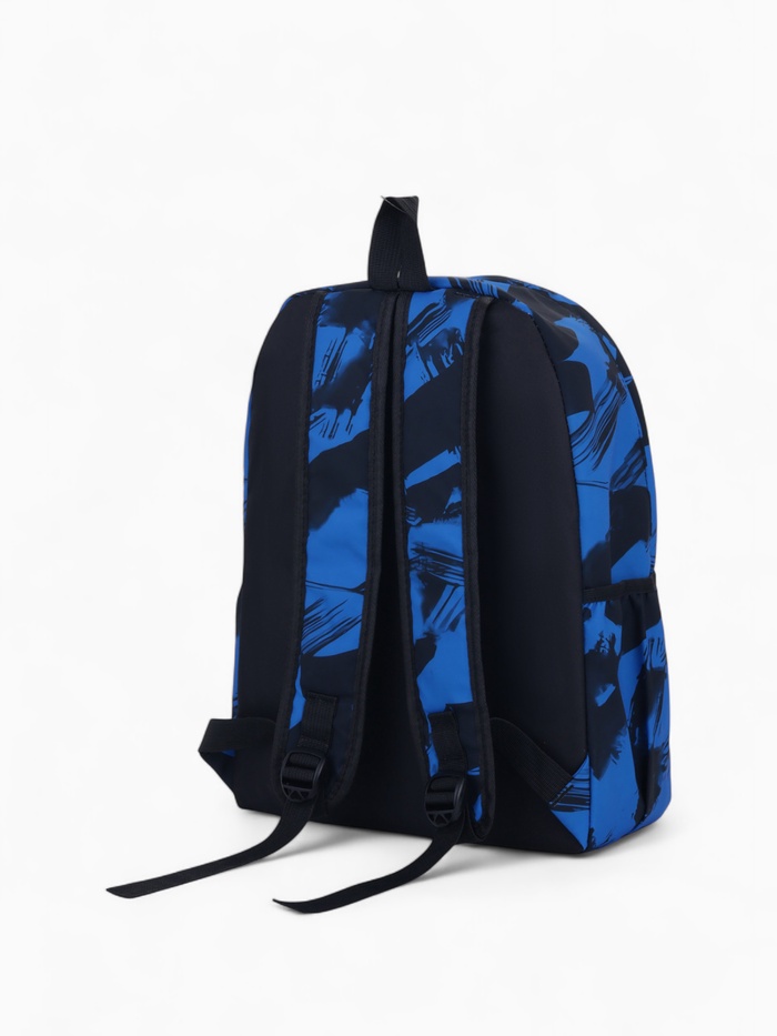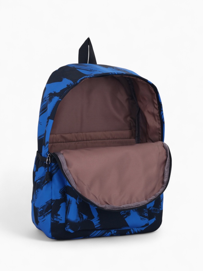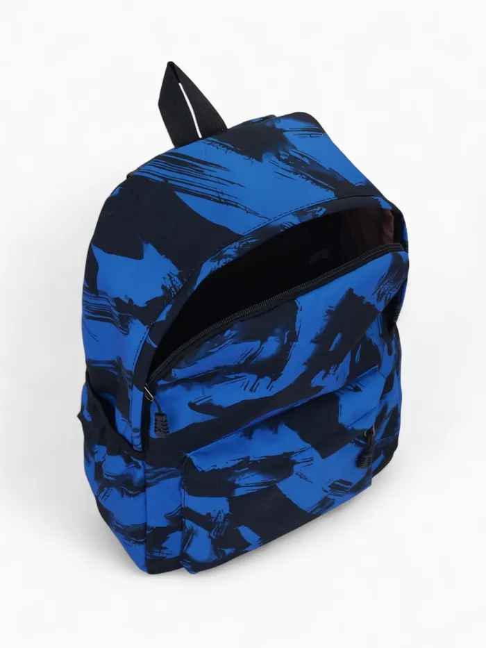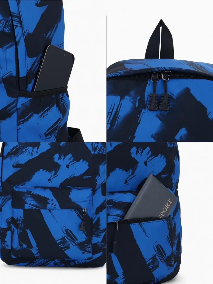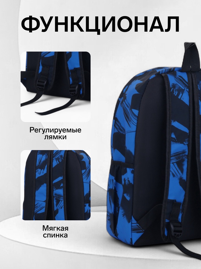 Рюкзак школьный на молнии, с карманами, принтом, размер 30×13×42 см, чёрный/синий — Характеристики