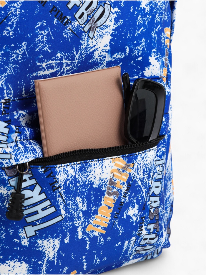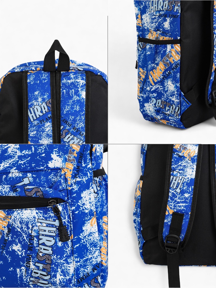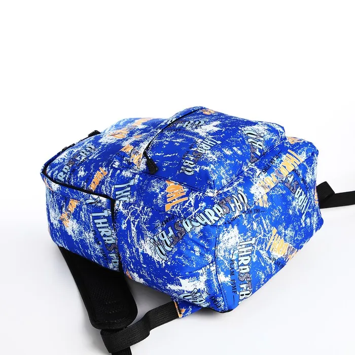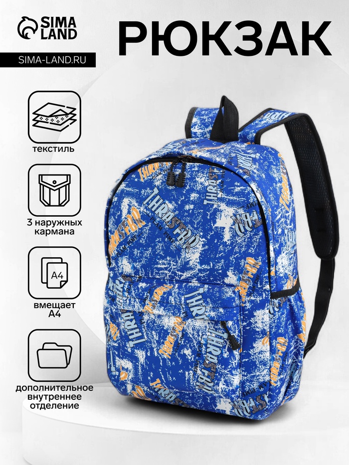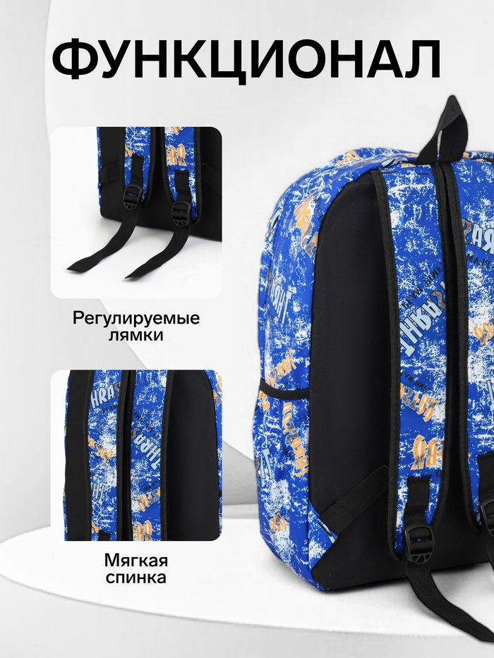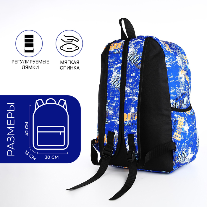 Рюкзак школьный на молнии, с карманами, принтом, размер 30×13×42 см, синий — Характеристики