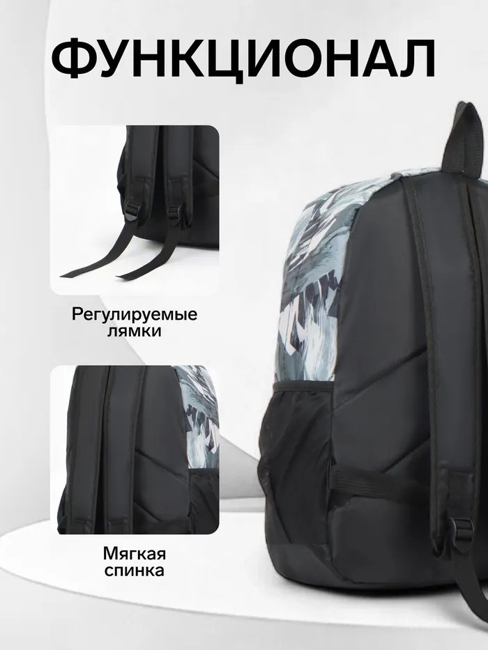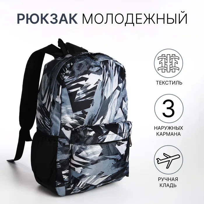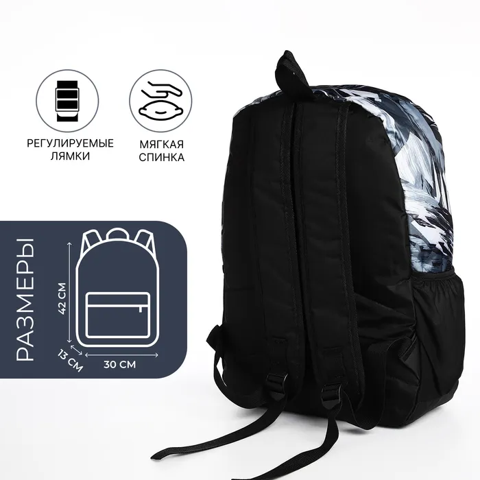 Рюкзак школьный на молнии, с карманами, размер 30×13×42 см, чёрный/серый — Характеристики