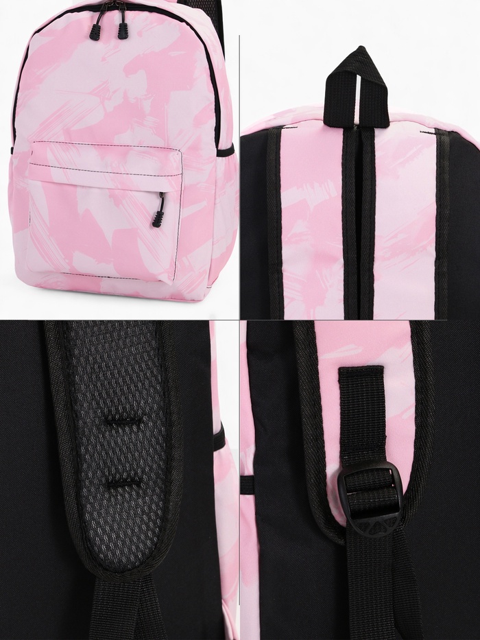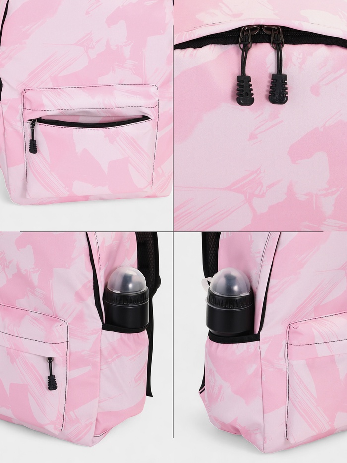 Рюкзак школьный на молнии, с карманами, размер 30×13×42 см, светло-розовый — Характеристики