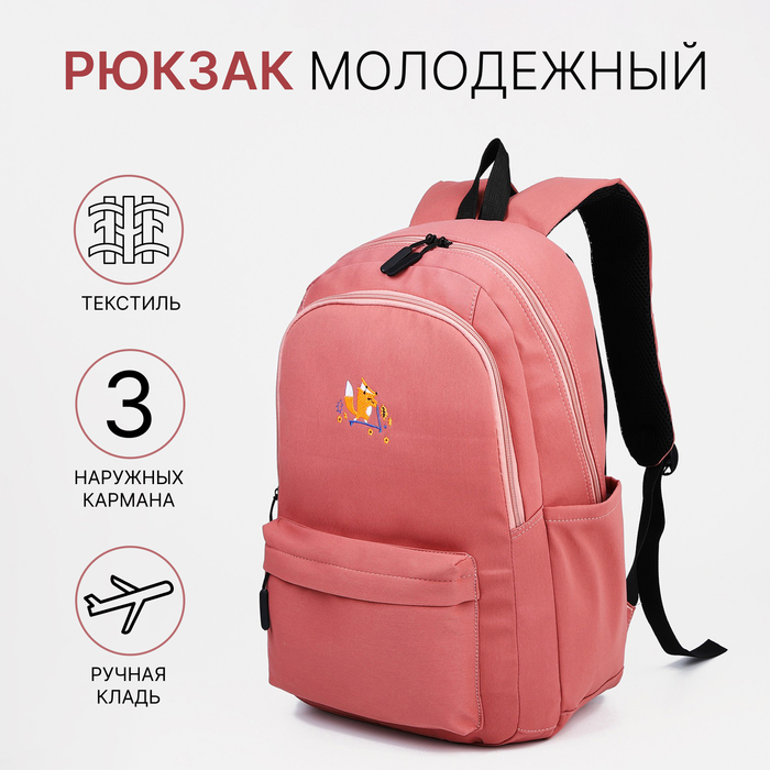 Рюкзак школьный на молнии, с карманами, размер 31×14×44 см, синий — Характеристики