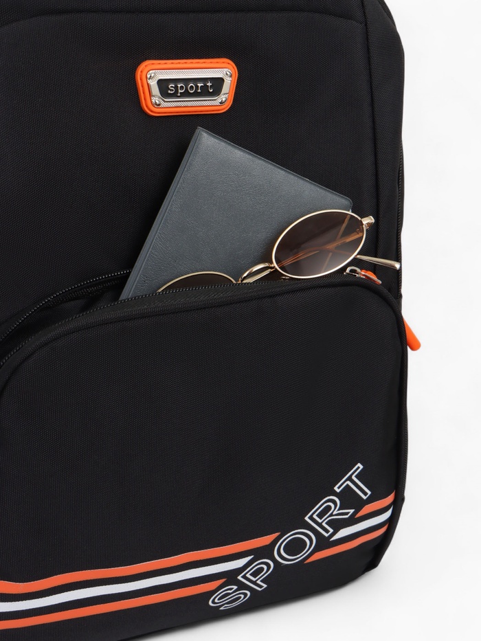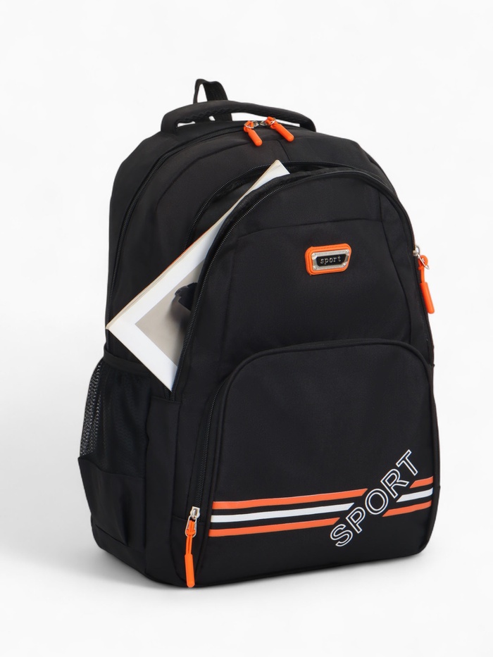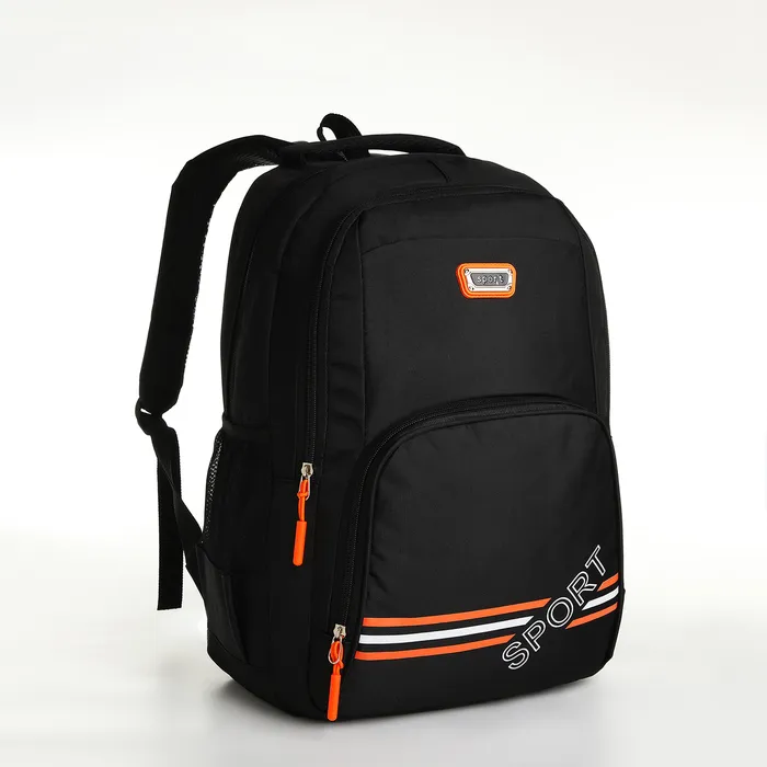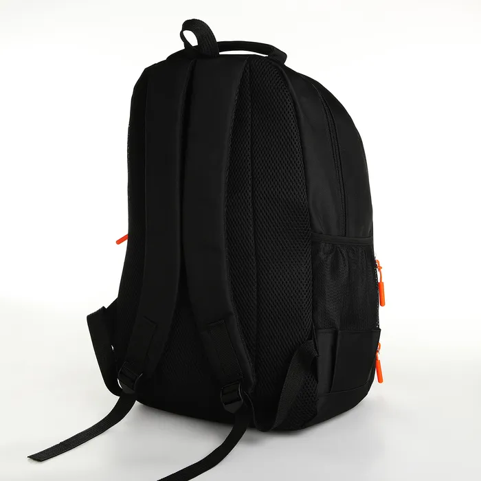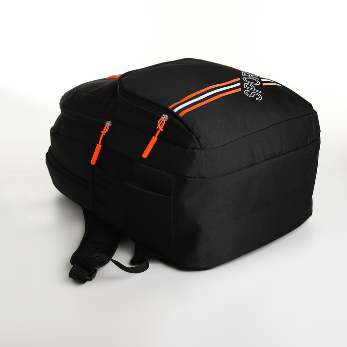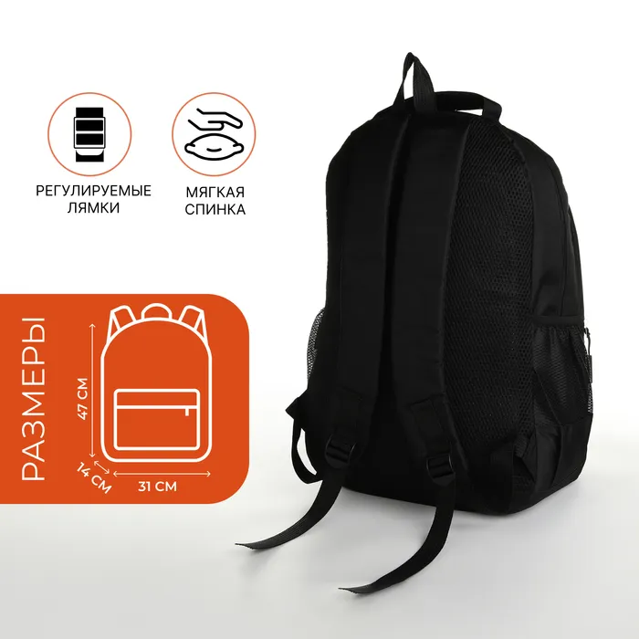 Рюкзак школьный на молнии, с карманами, размер 31×14×47 см, чёрный/оранжевый — Характеристики