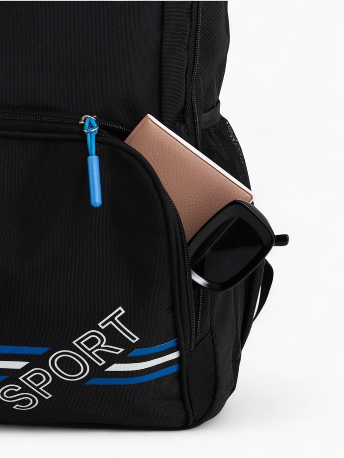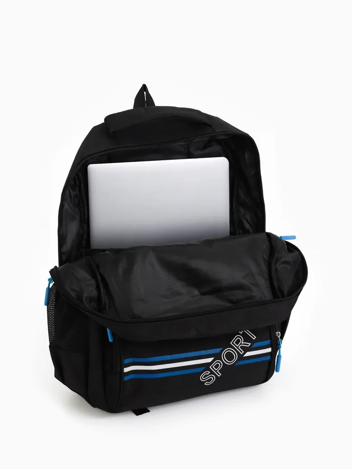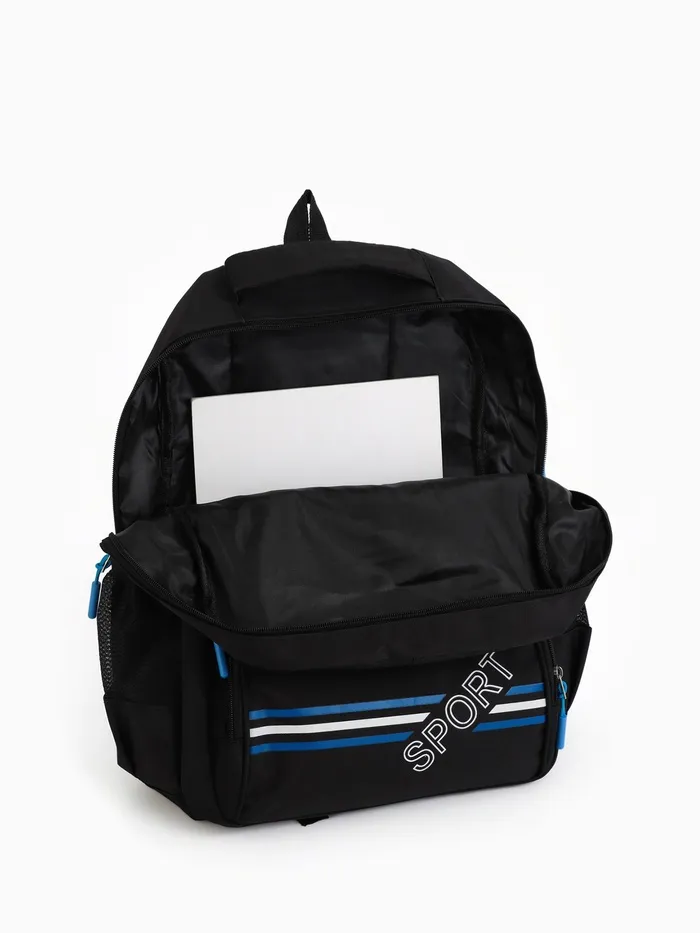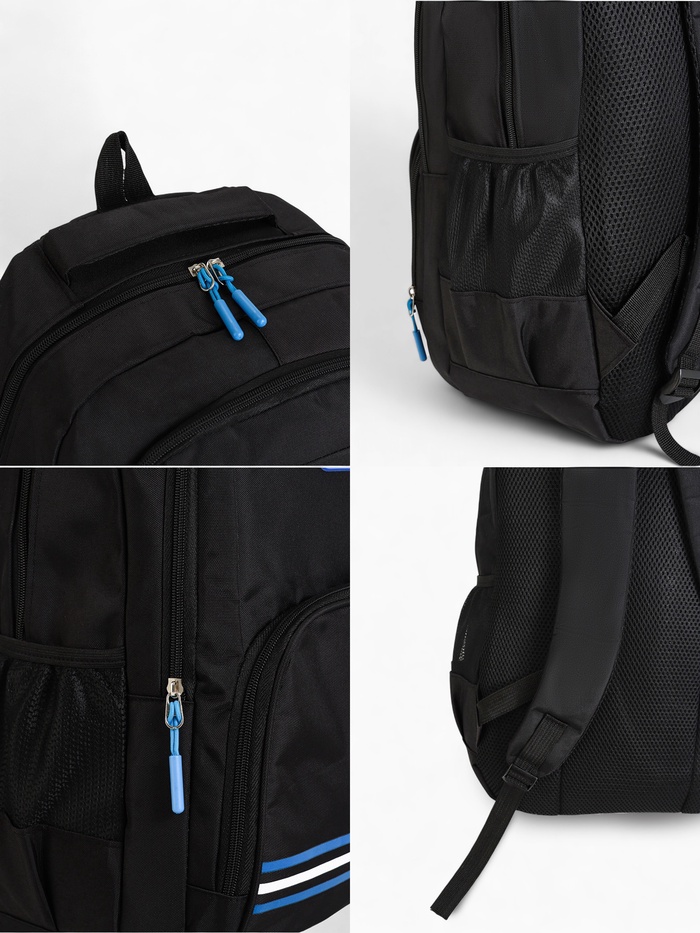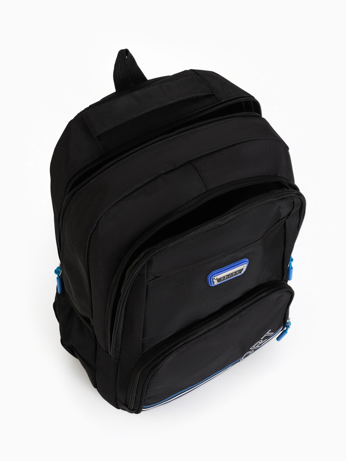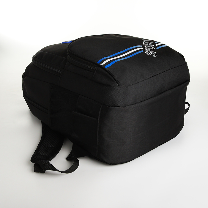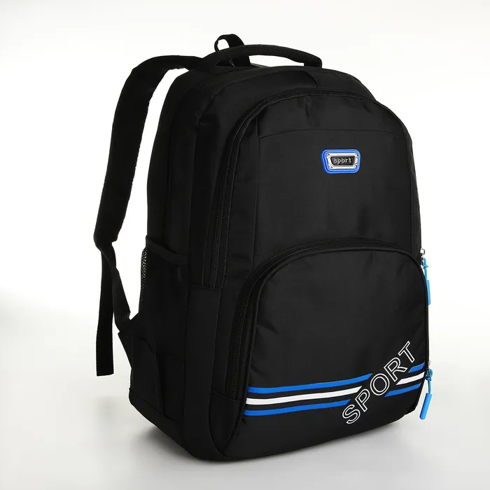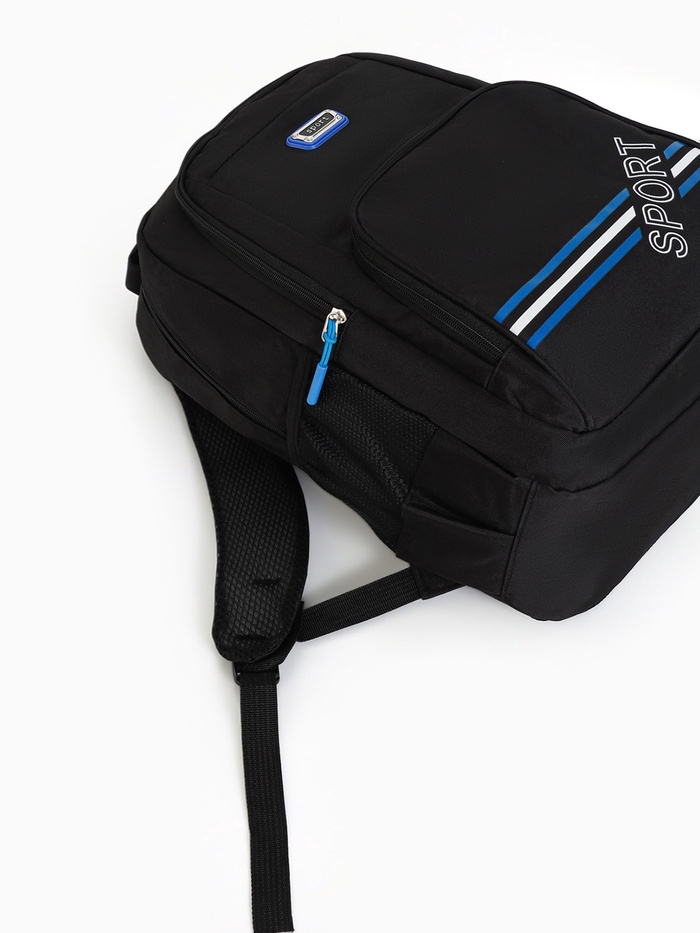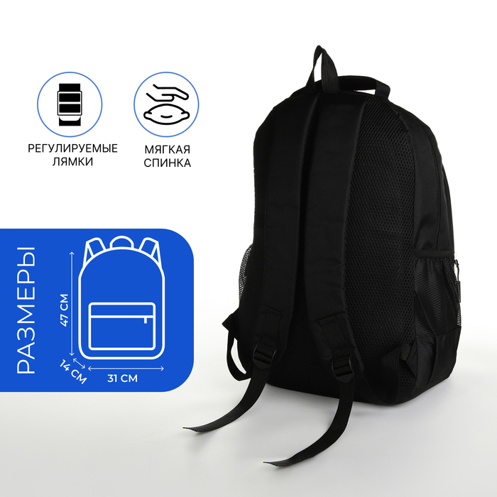 Рюкзак школьный на молнии, с карманами, размер 31×14×47 см, чёрный/синий — Характеристики