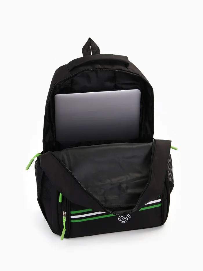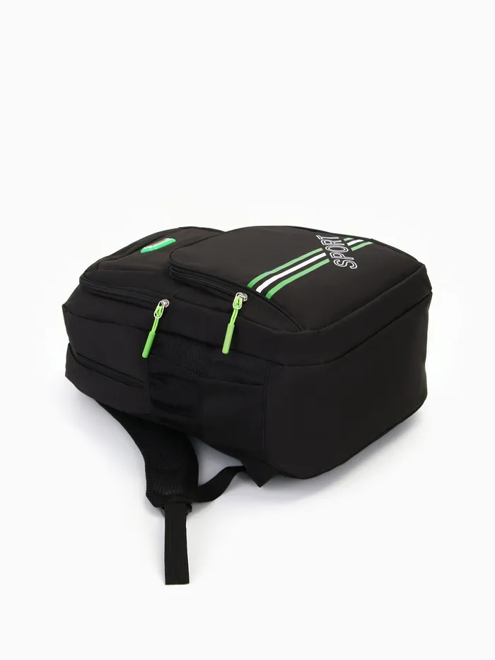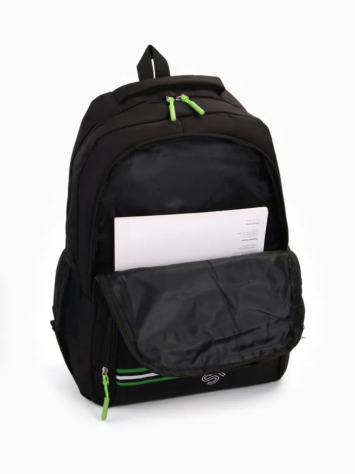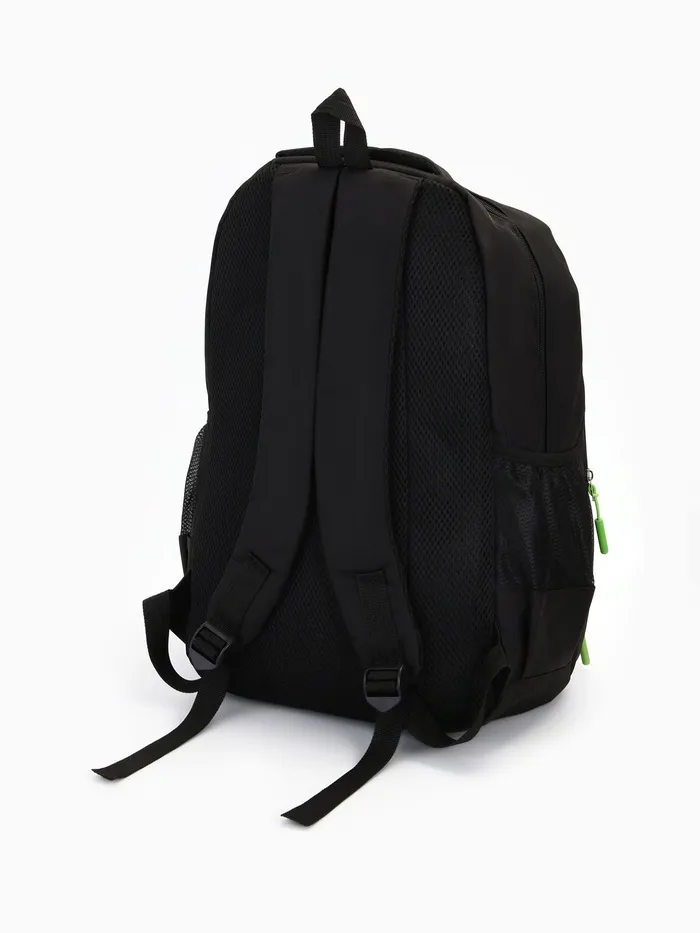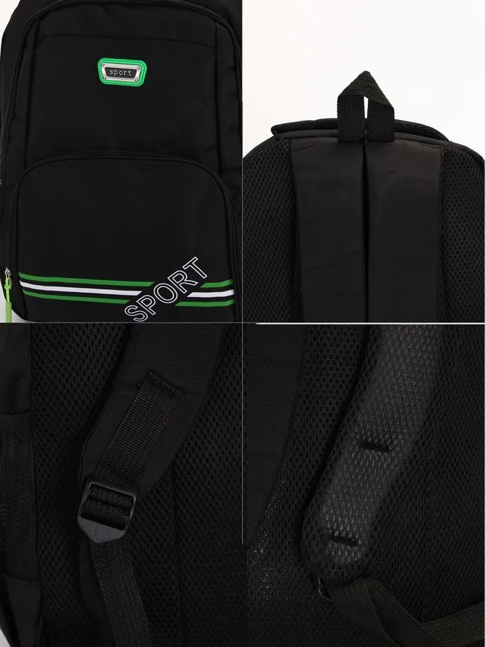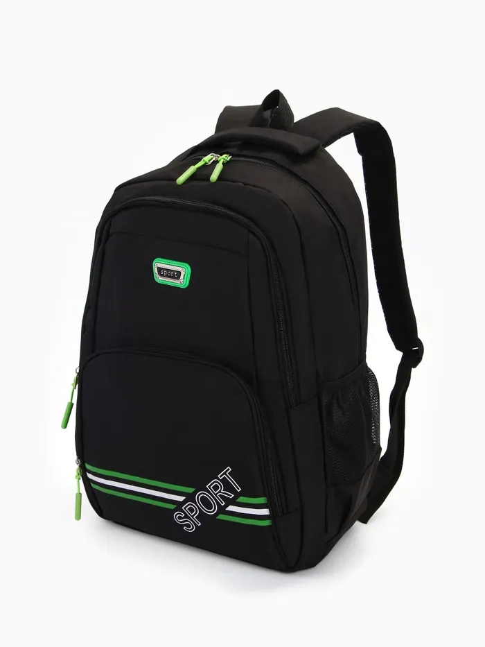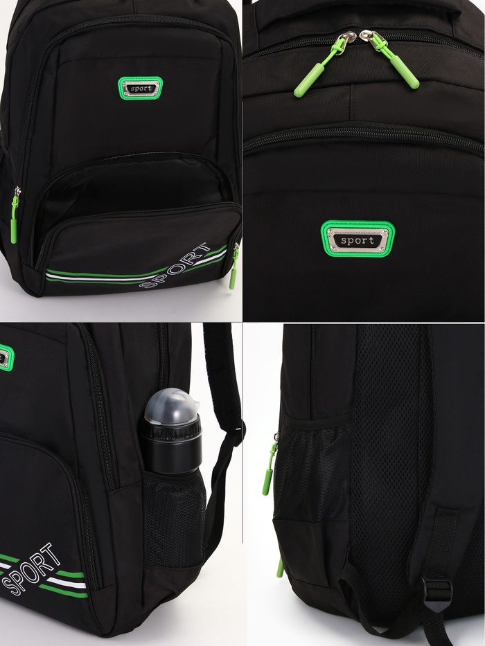 Рюкзак школьный на молнии, с карманами, размер 31×14×47 см, чёрный/зелёный — Характеристики