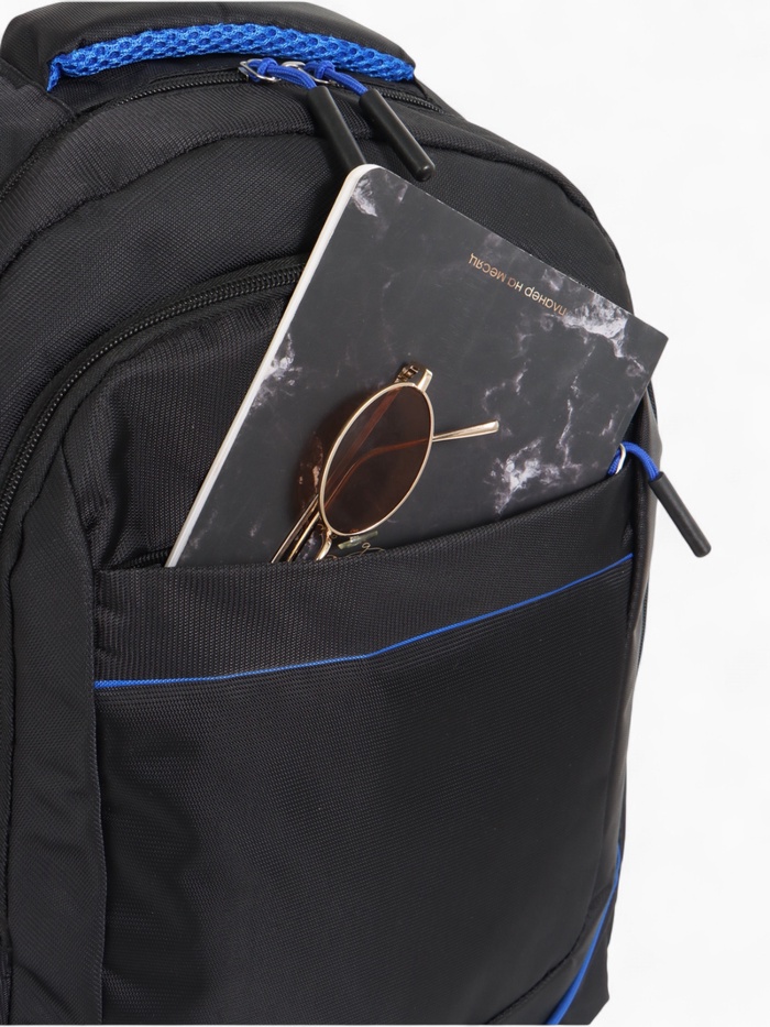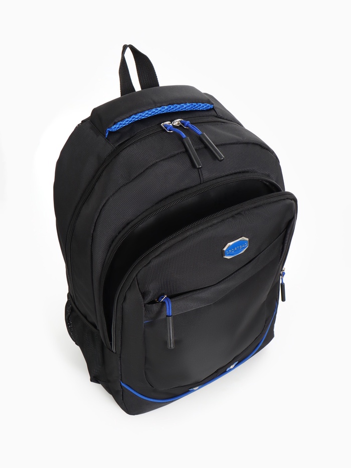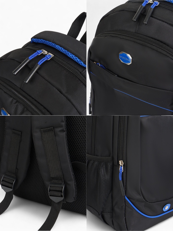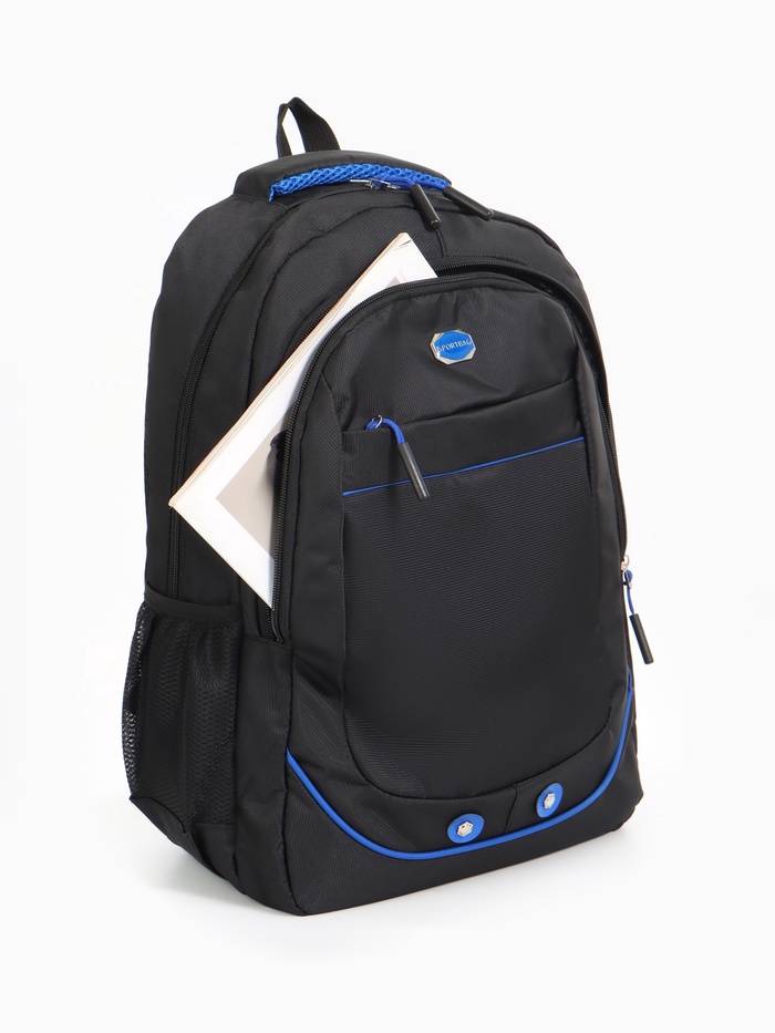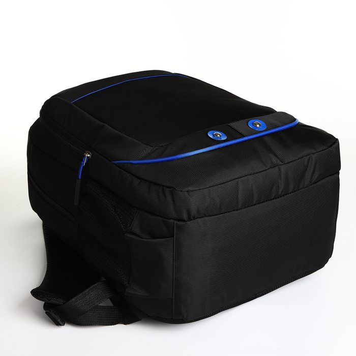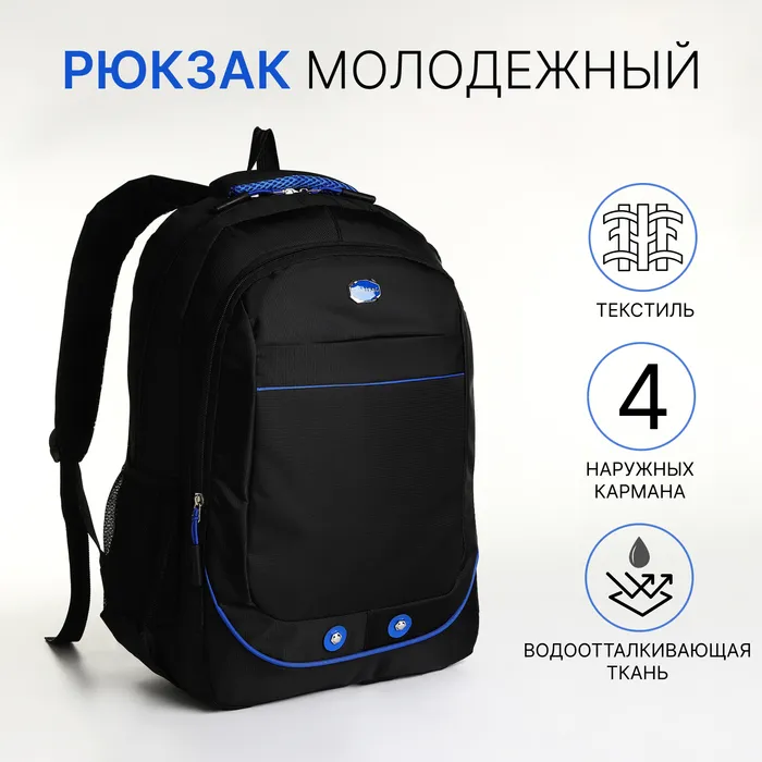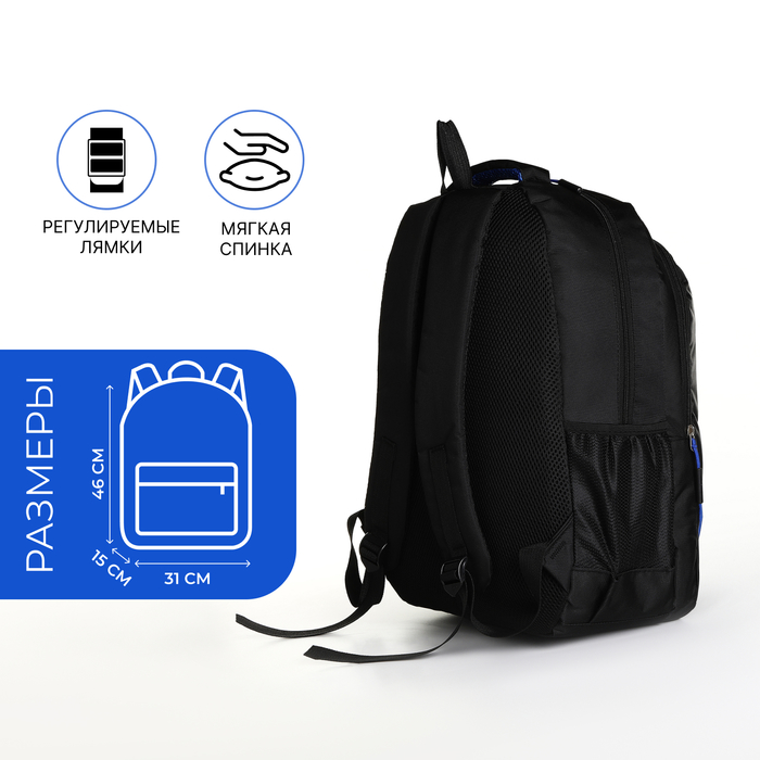 Рюкзак школьный на молнии, с карманами, размер 31×15×46 см, чёрный/синий — Характеристики