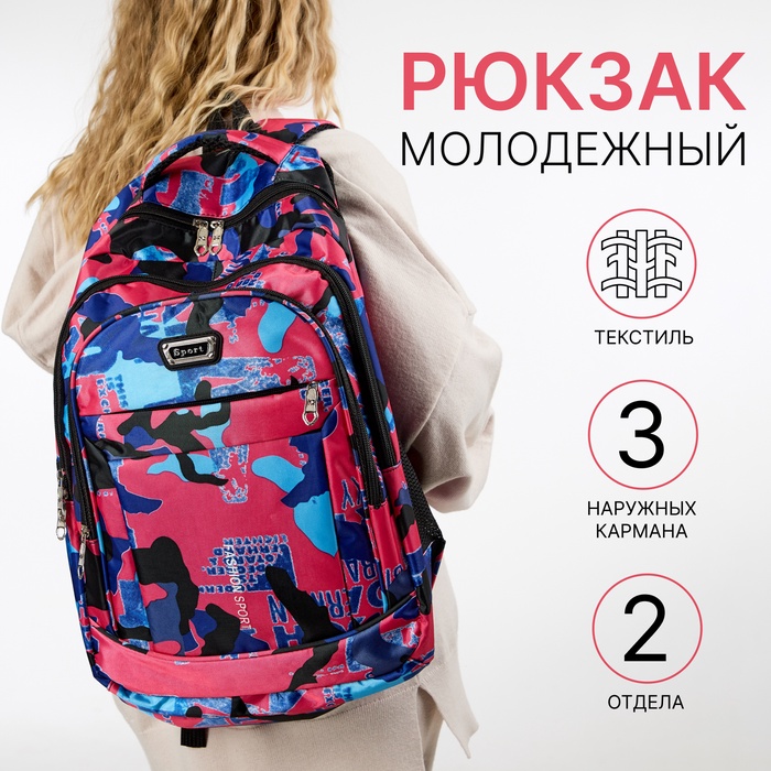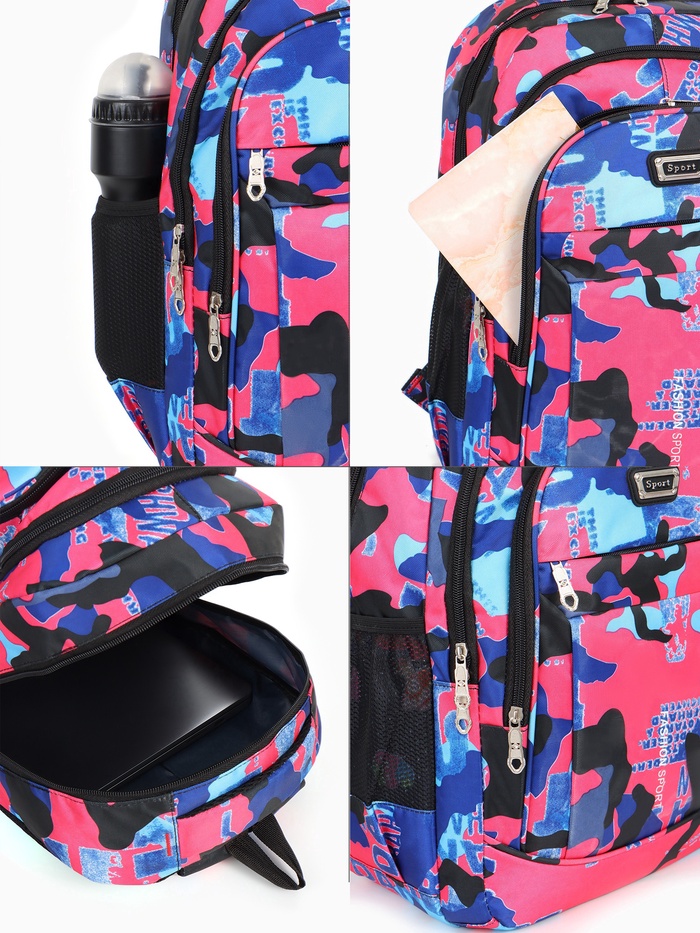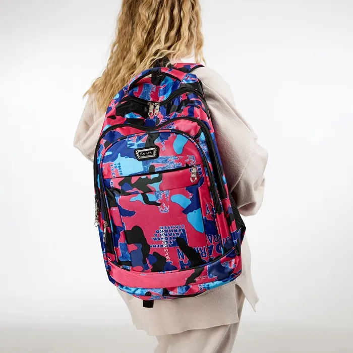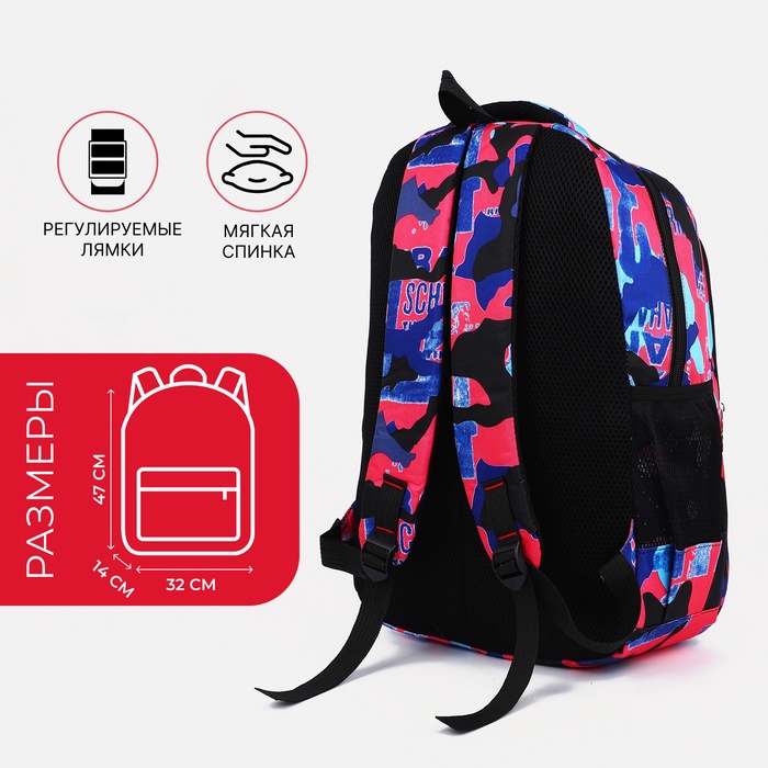 Рюкзак школьный на молнии, с карманами, размер 32×14×47 см, розовый/голубой — Характеристики