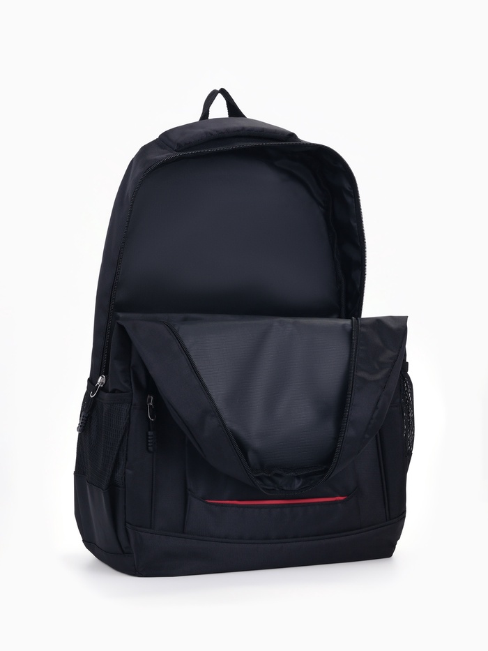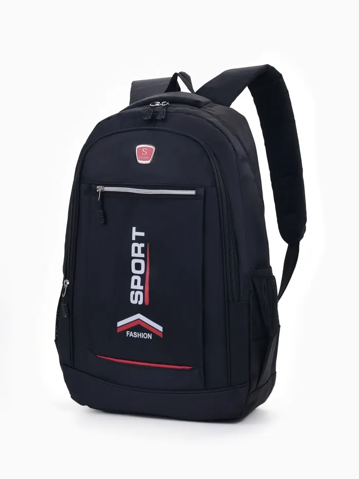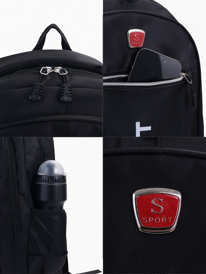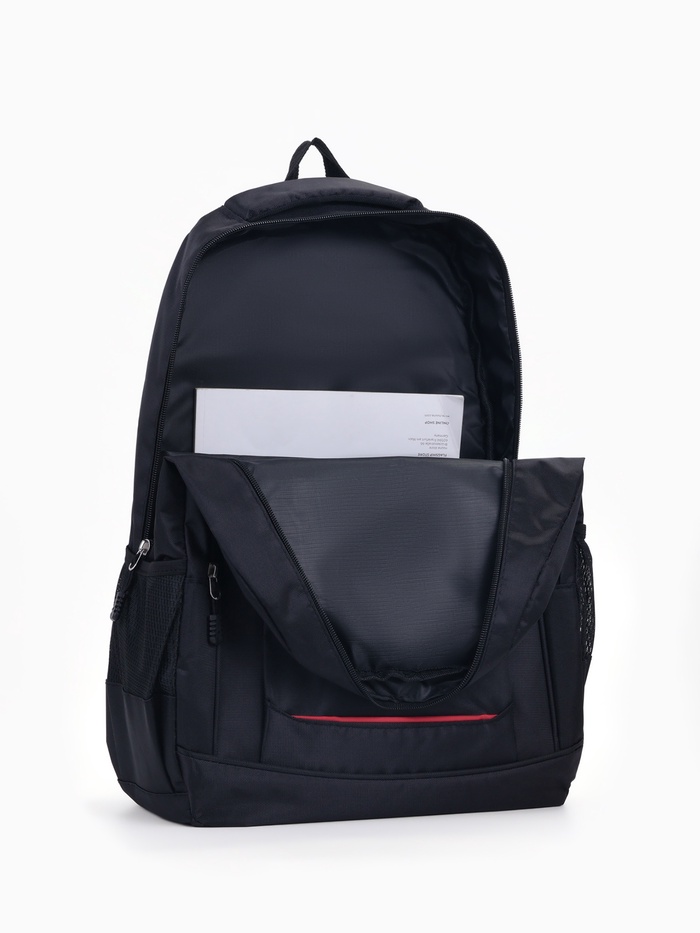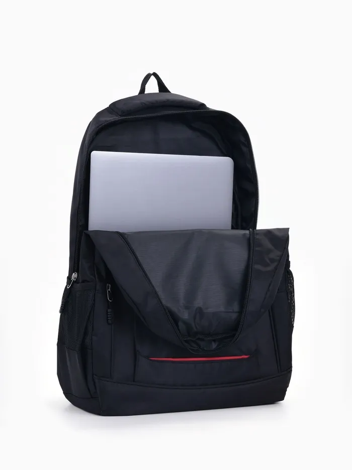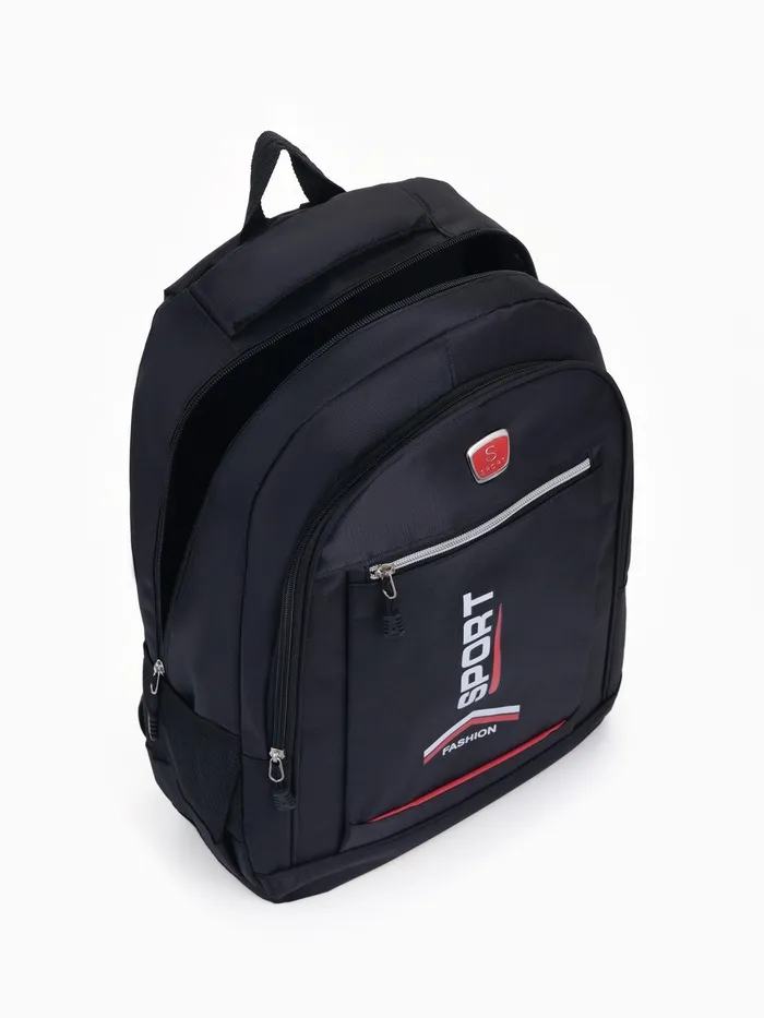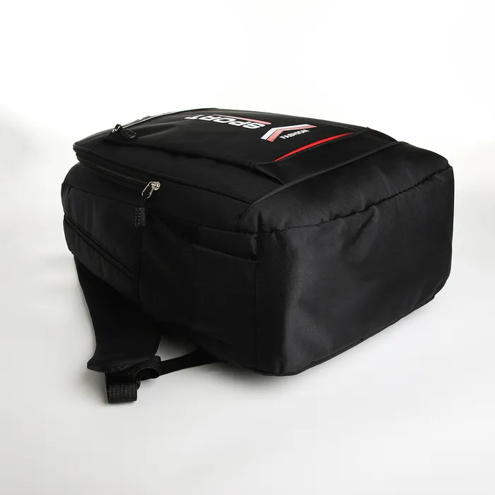Рюкзак школьный на молнии, с карманами, с надписями, однотонный, размер 31×14×47 см, чёрный/красный — Характеристики