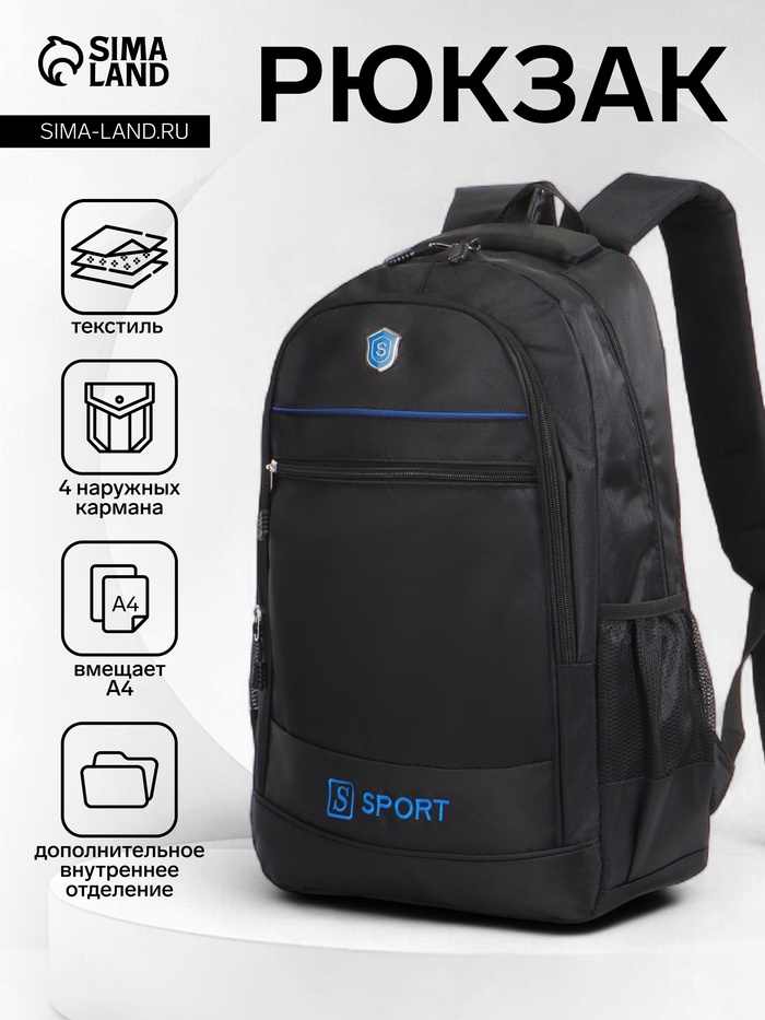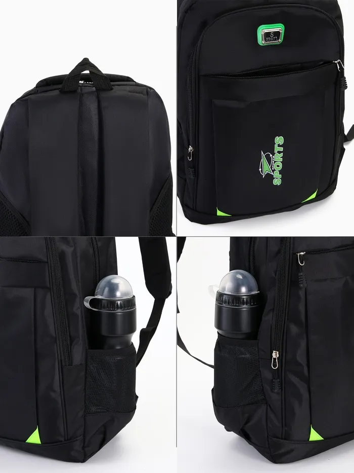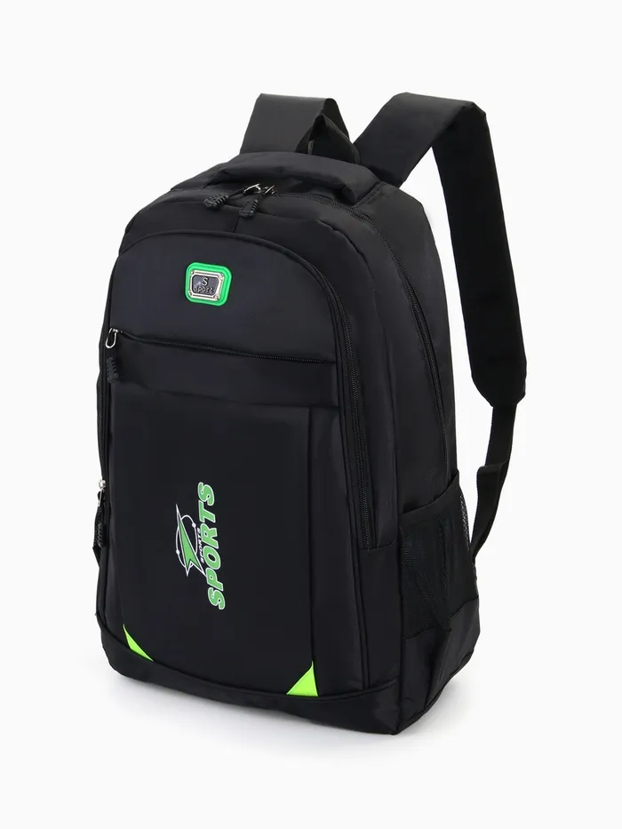 Рюкзак школьный на молнии, с карманами, с надписями, однотонный, размер 31×14×47 см, чёрный/зелёный — Характеристики