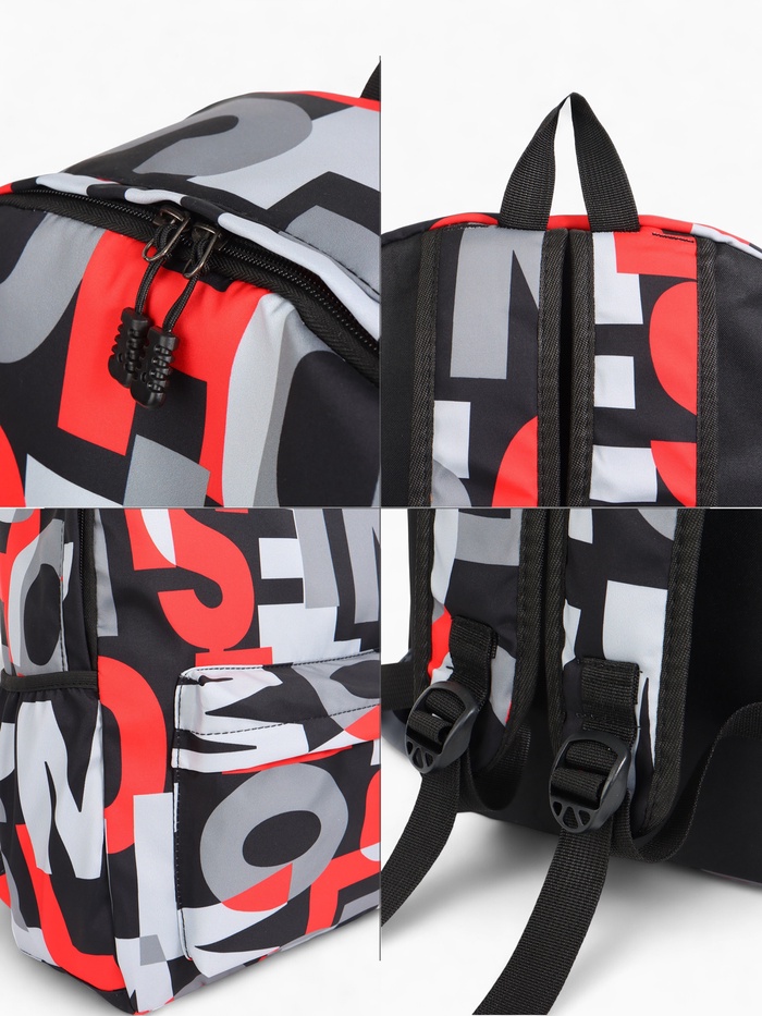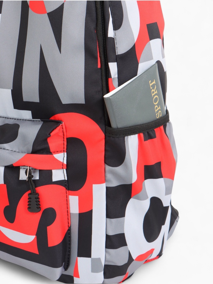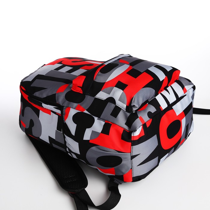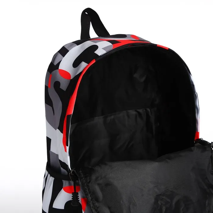 Рюкзак школьный на молнии, с карманами, с надписями, размер 30×13×42 см, серый/красный — Характеристики