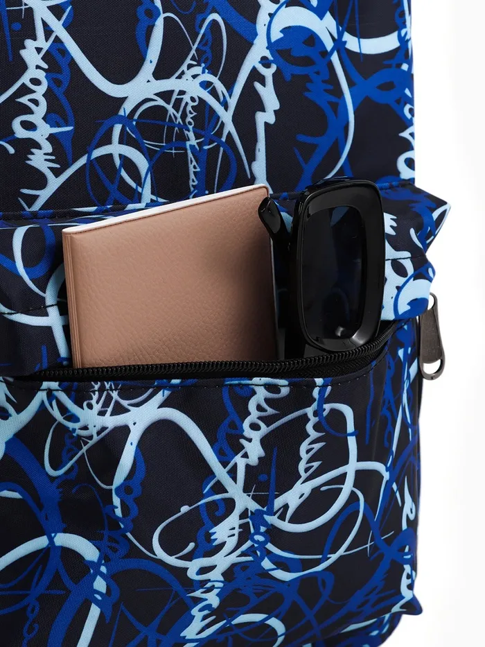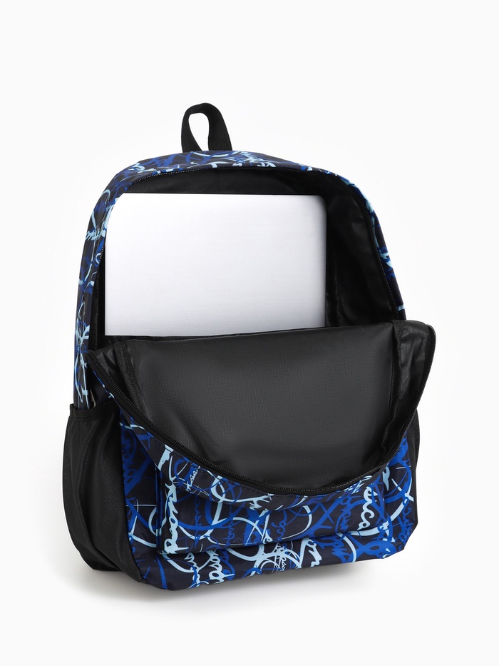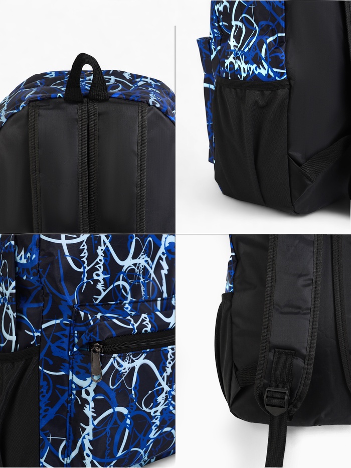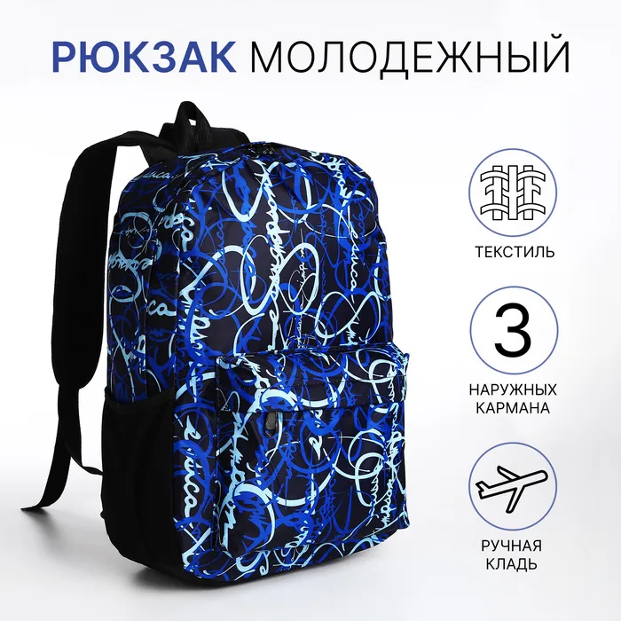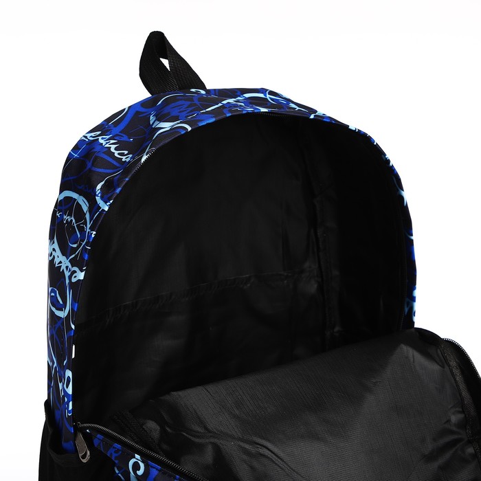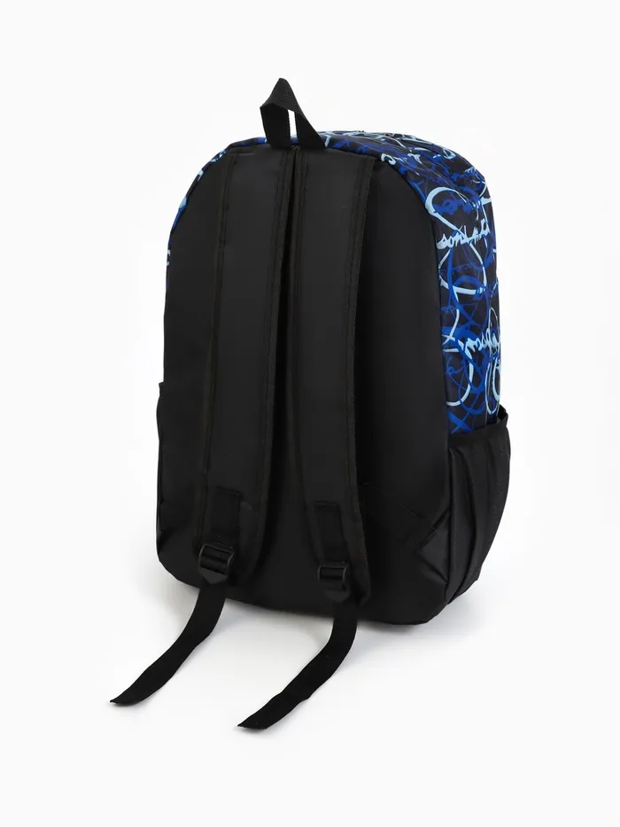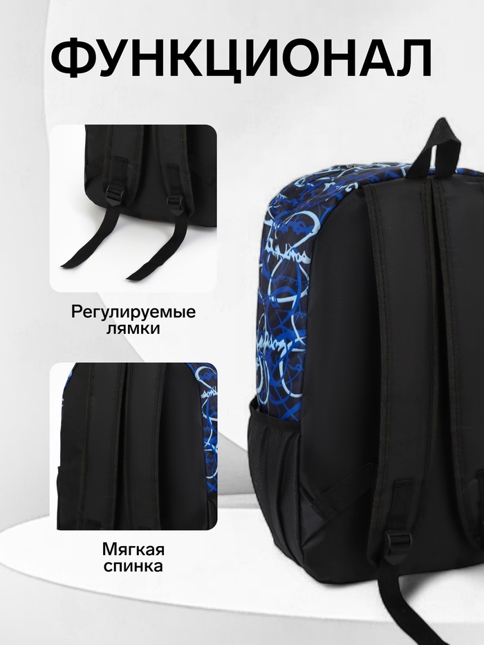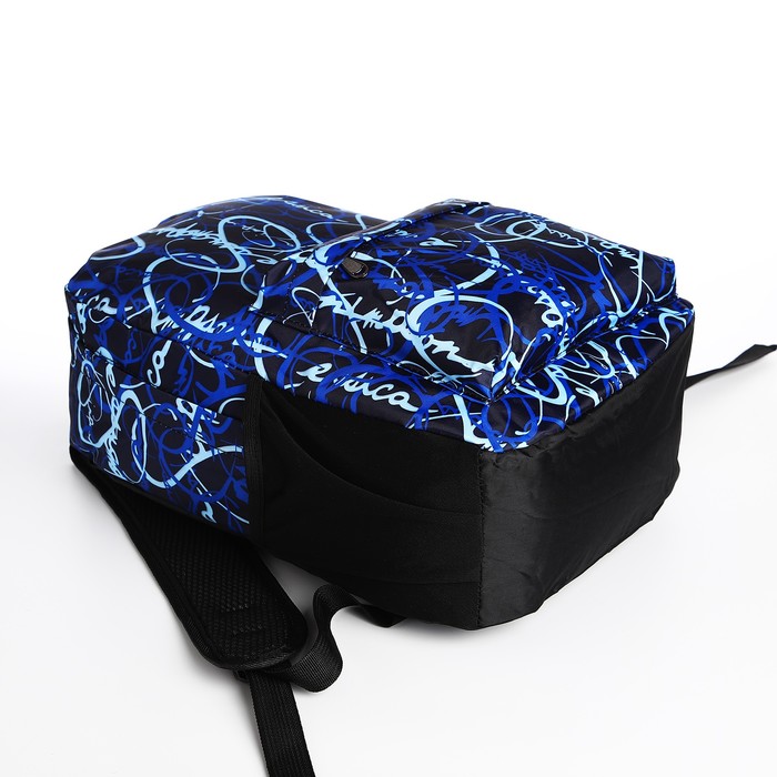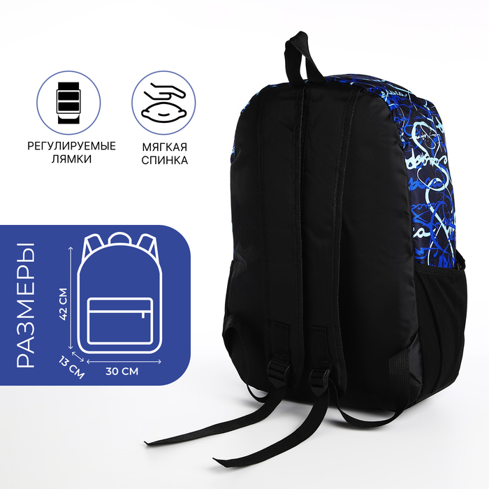 Рюкзак школьный на молнии, с карманами, с надписями, размер 30×13×42 см, синий — Характеристики