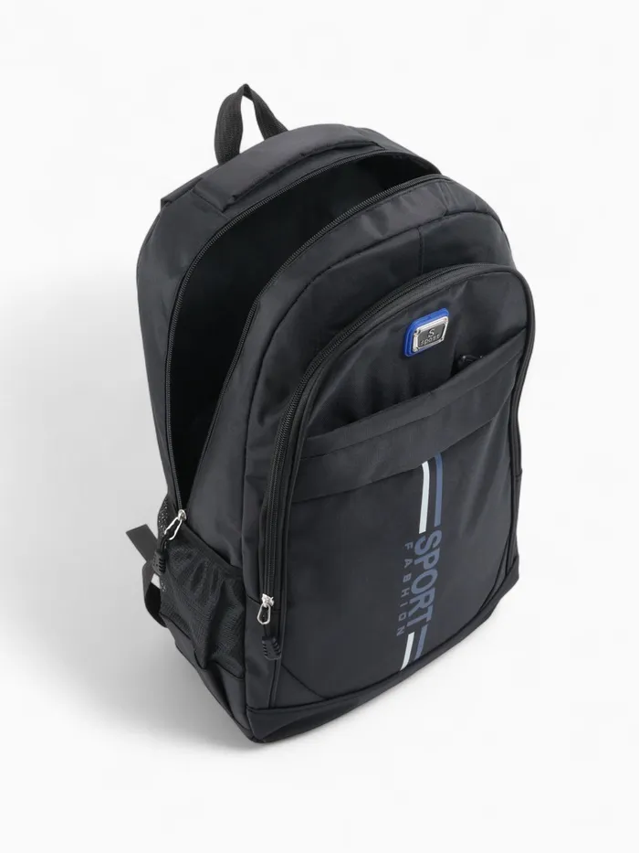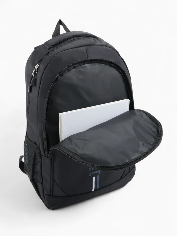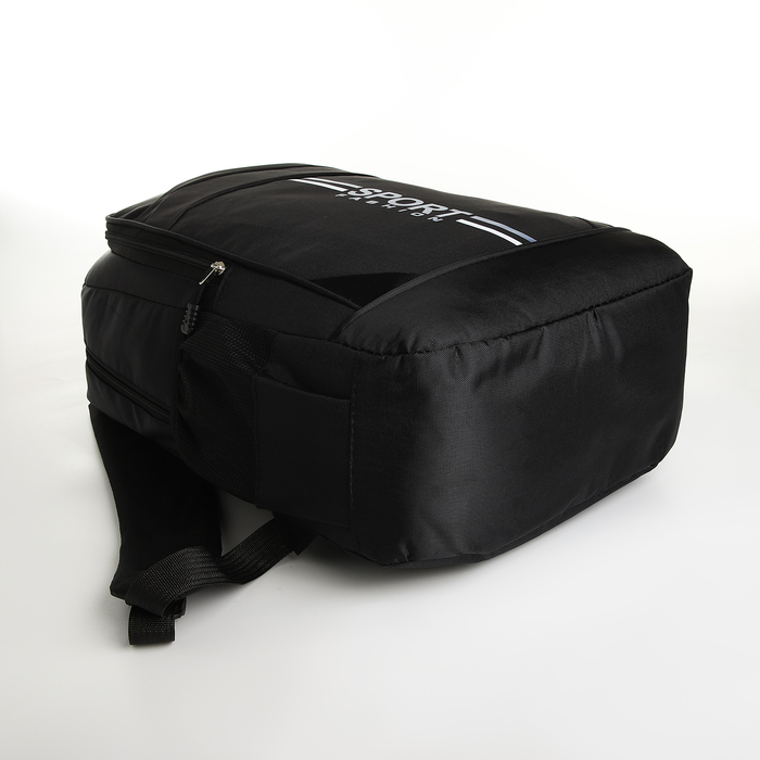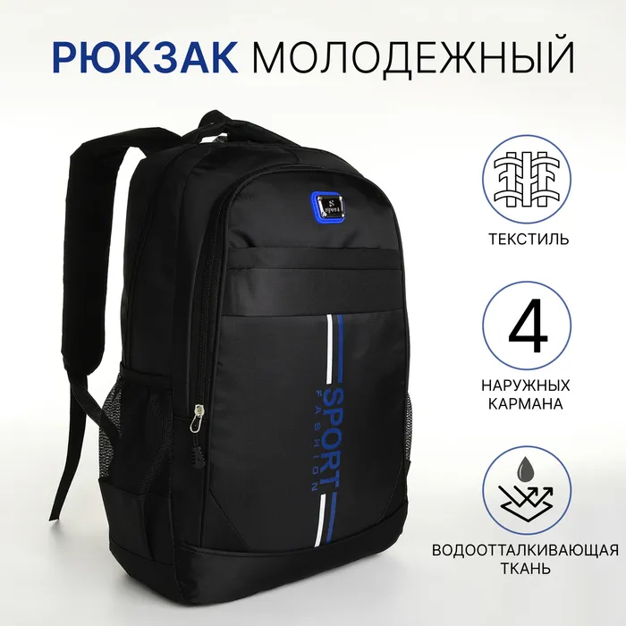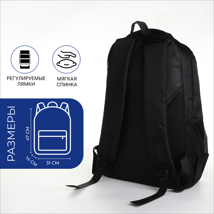 Рюкзак школьный на молнии, с карманами, с полосками, однотонный, размер 31×14×47 см, чёрный/синий — Характеристики