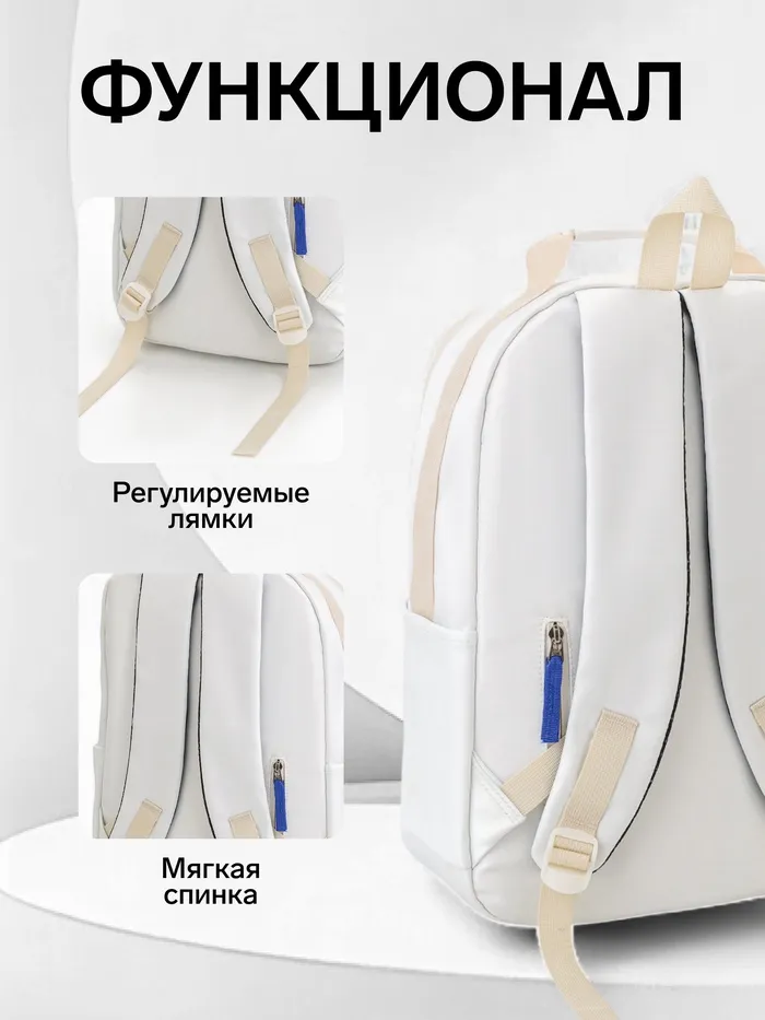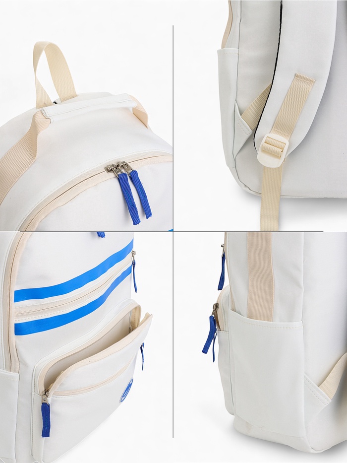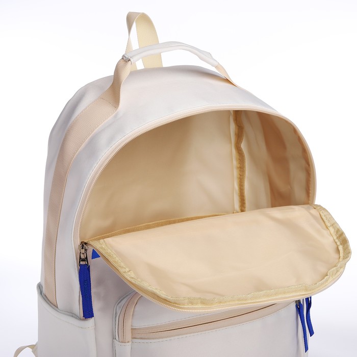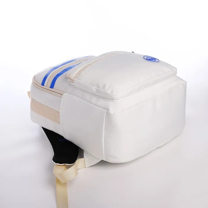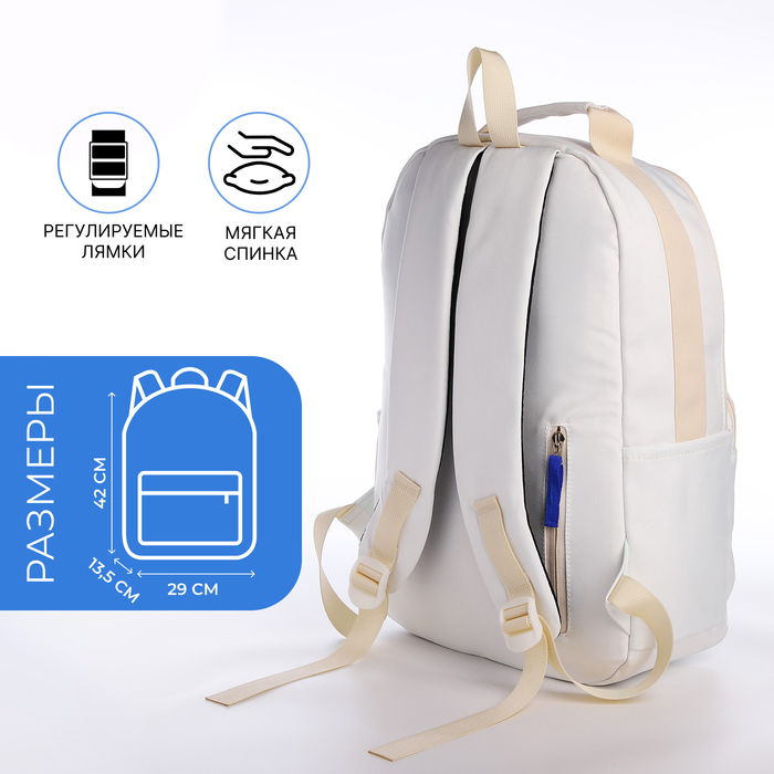 Рюкзак школьный на молнии, с карманами, с полосками, размер 29×13.5×42 см, белый — Характеристики