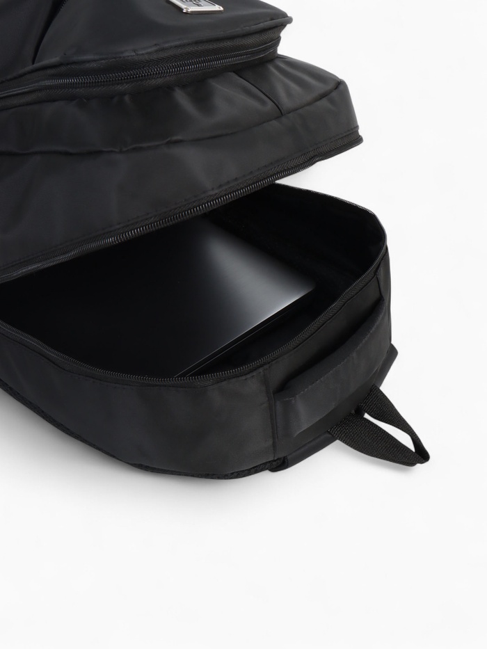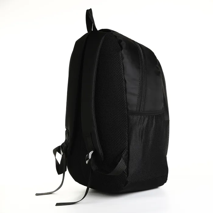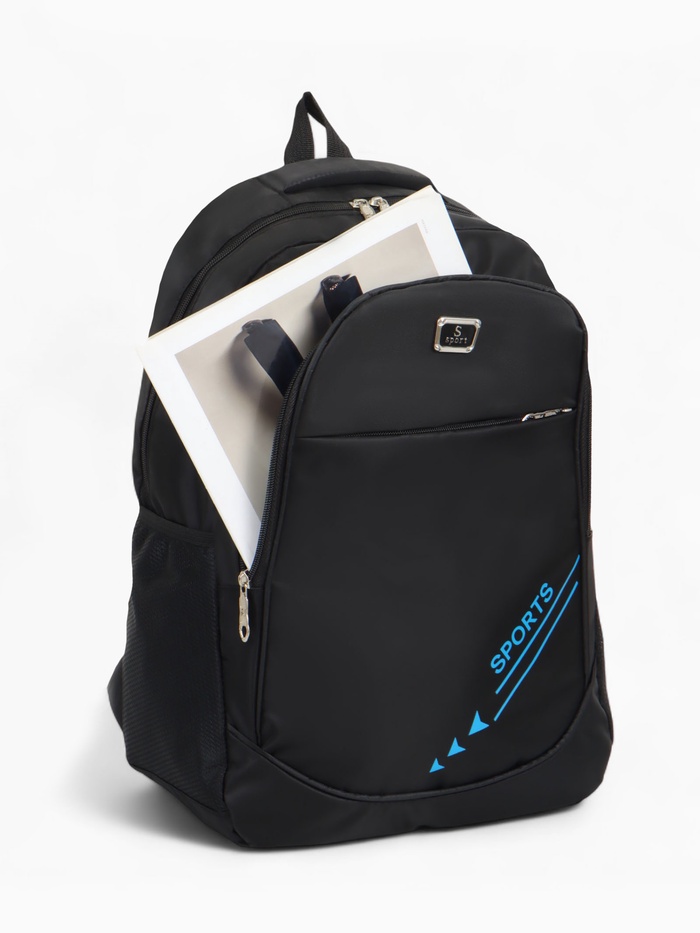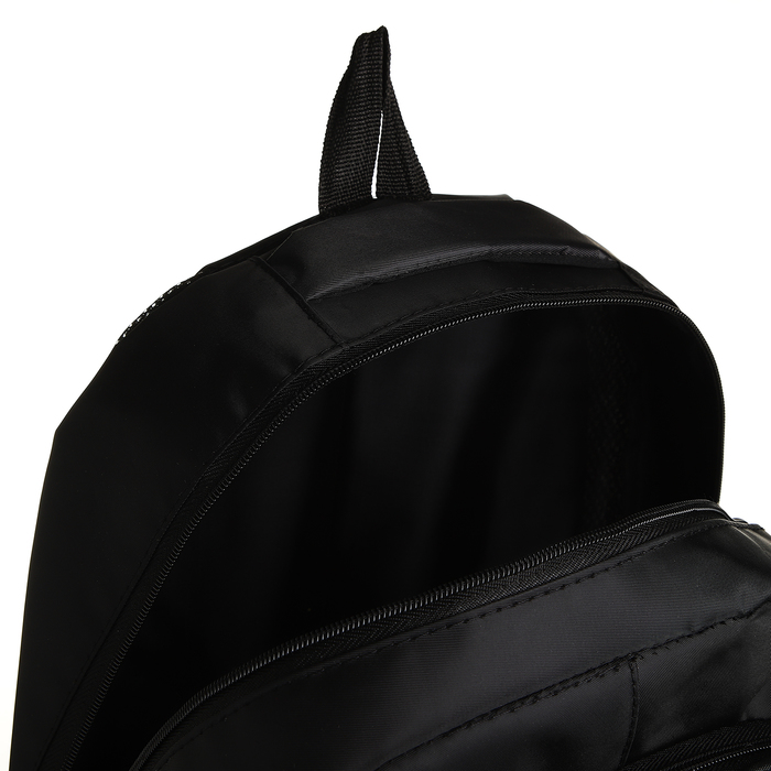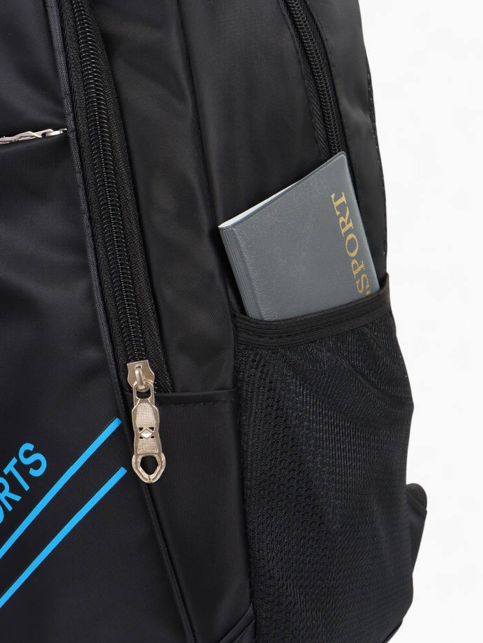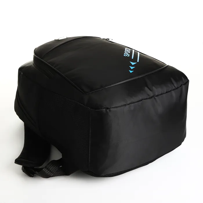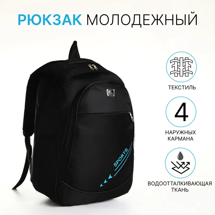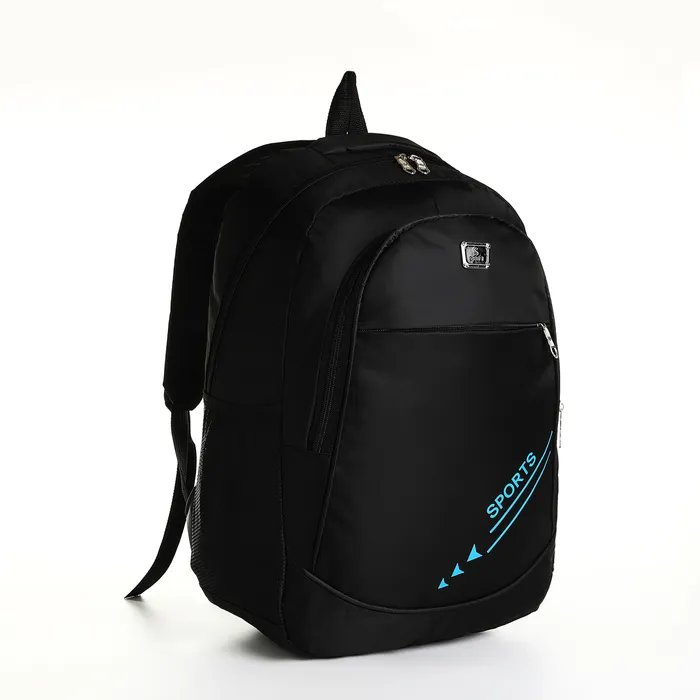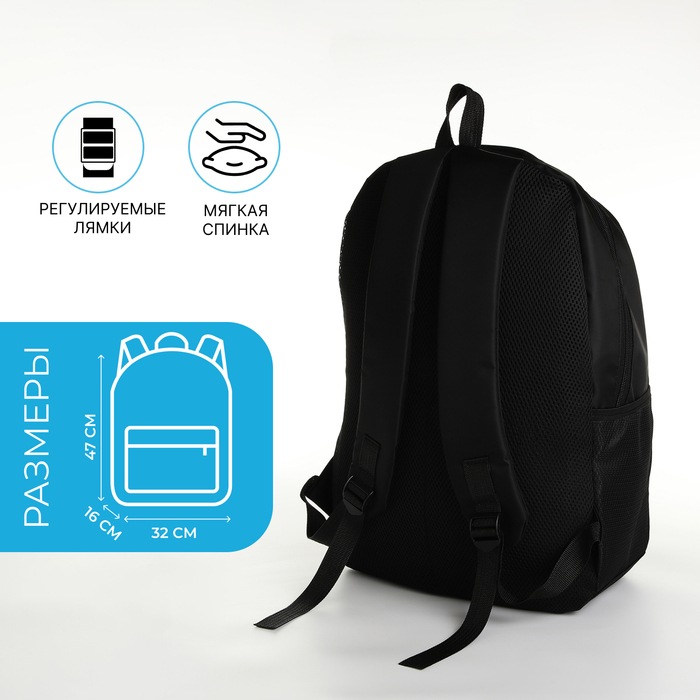 Рюкзак школьный на молнии, с карманами, с полосками, размер 32×16×47 см, чёрный/голубой — Характеристики
