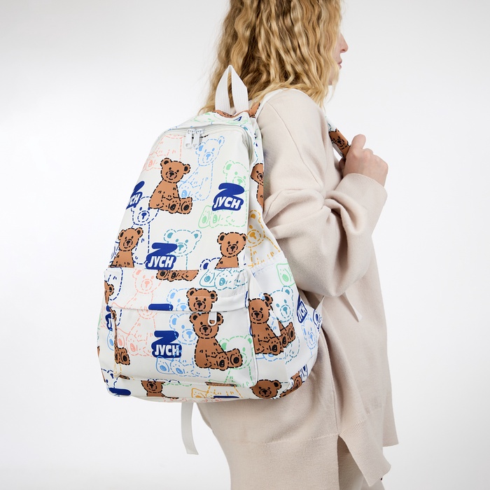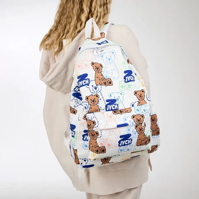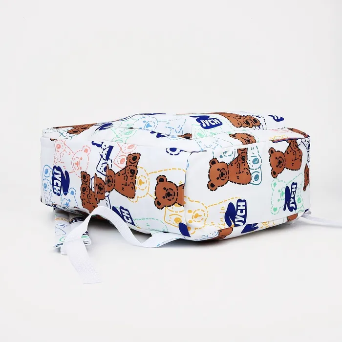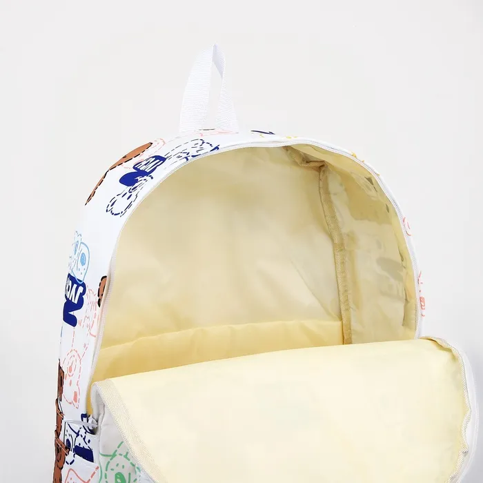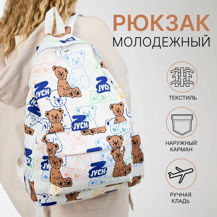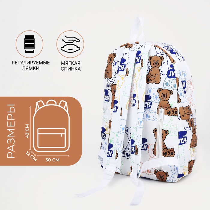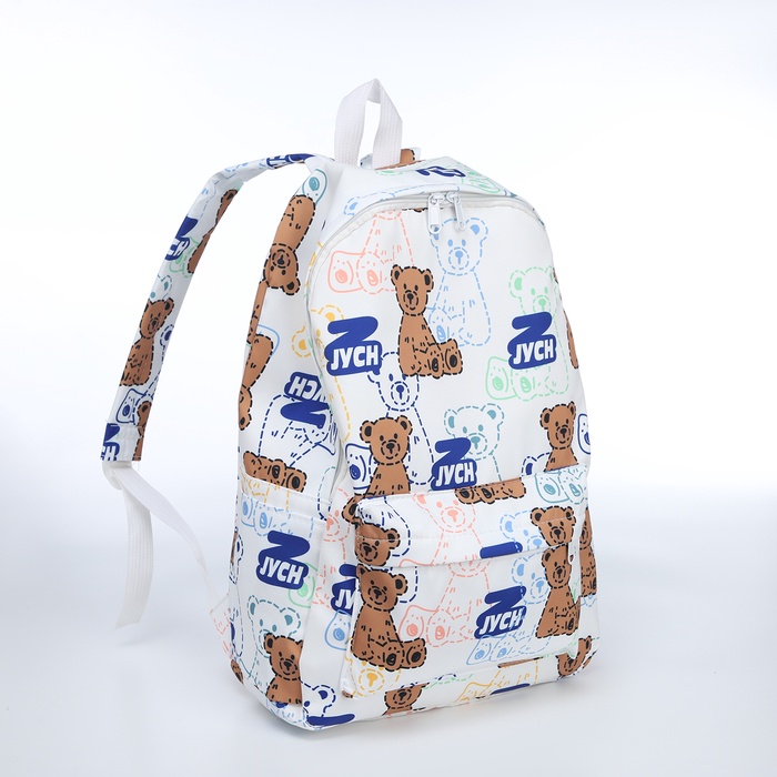 Рюкзак школьный на молнии, с карманами, с принтом, белый/синий — Характеристики