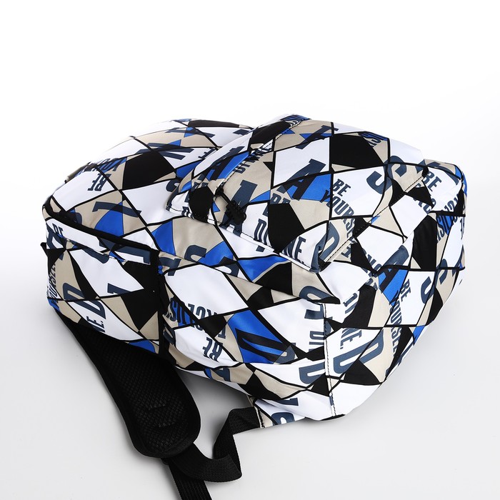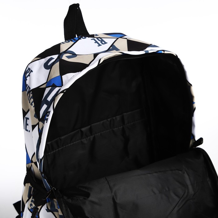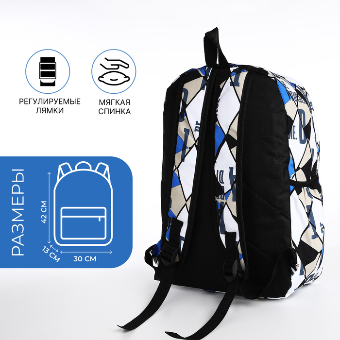Рюкзак школьный на молнии, с карманами, с принтом, бежевый/синий — Характеристики