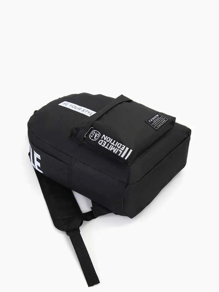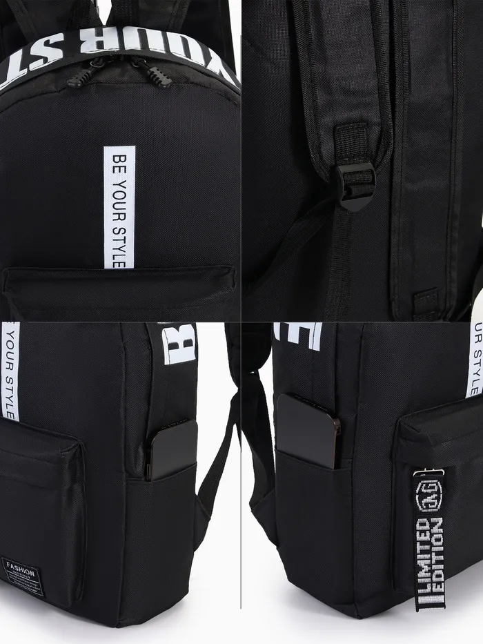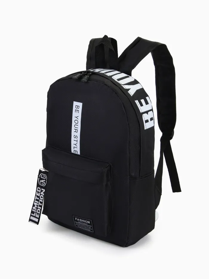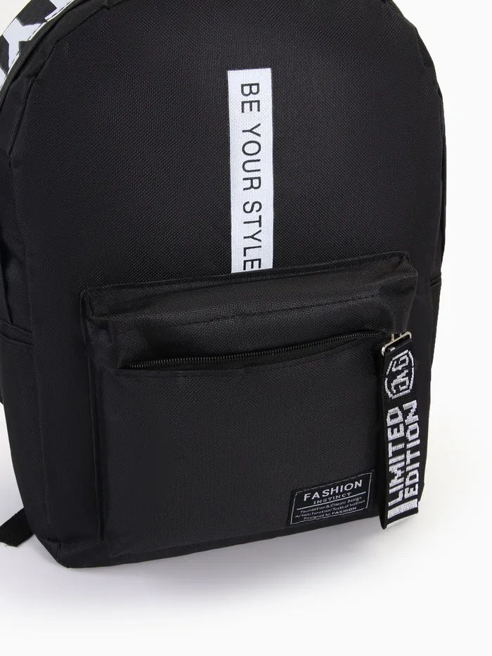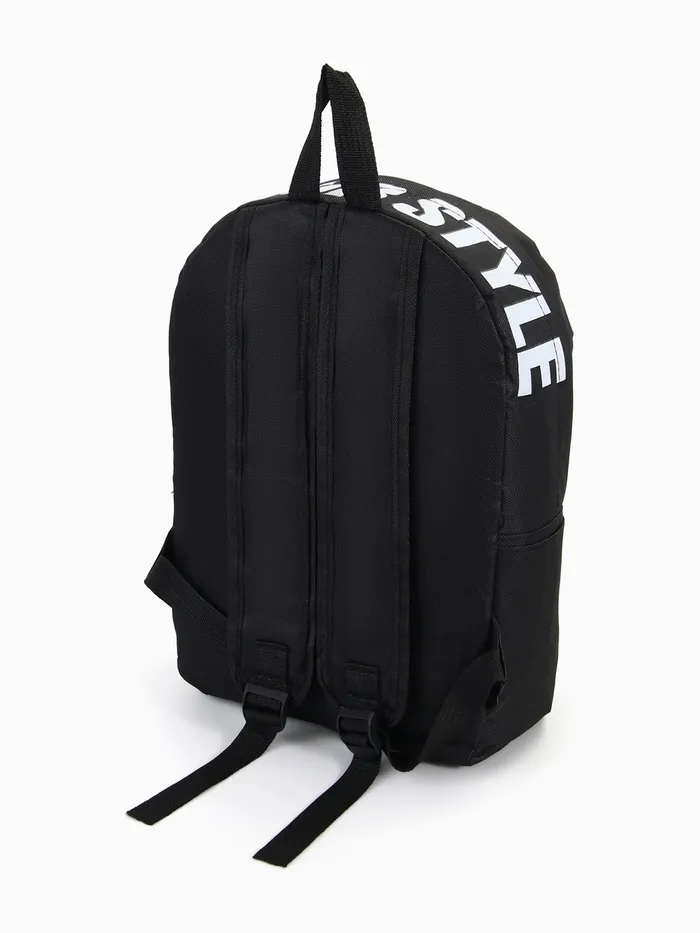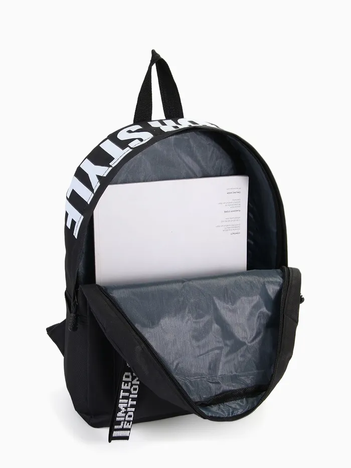 Рюкзак школьный на молнии, с карманами, с принтом, чёрный/белый — Характеристики