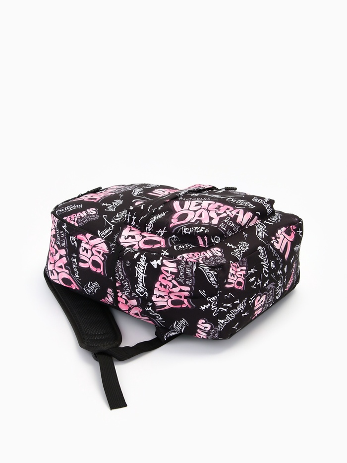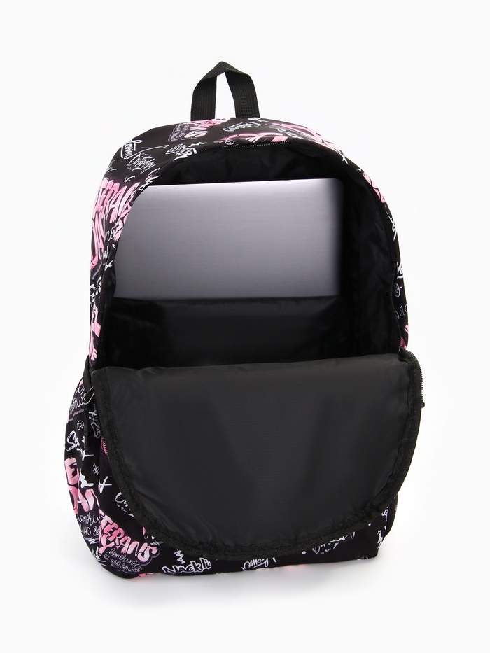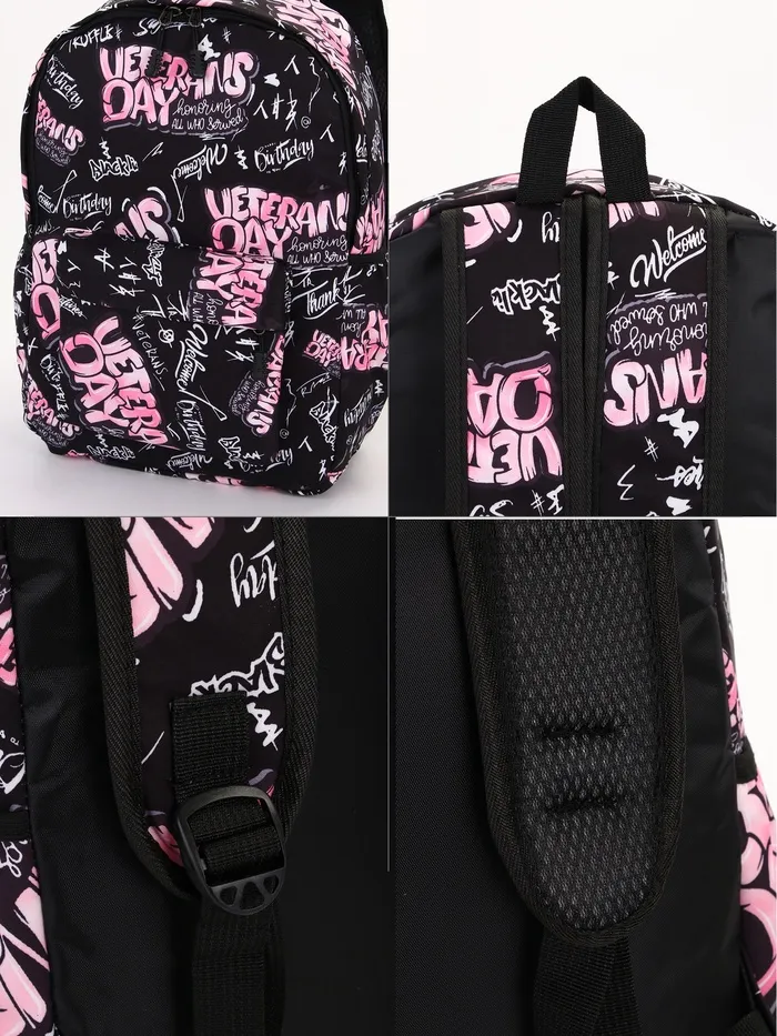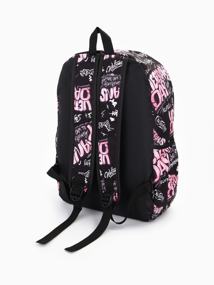 Рюкзак школьный на молнии, с карманами, с принтом, чёрный/розовый
