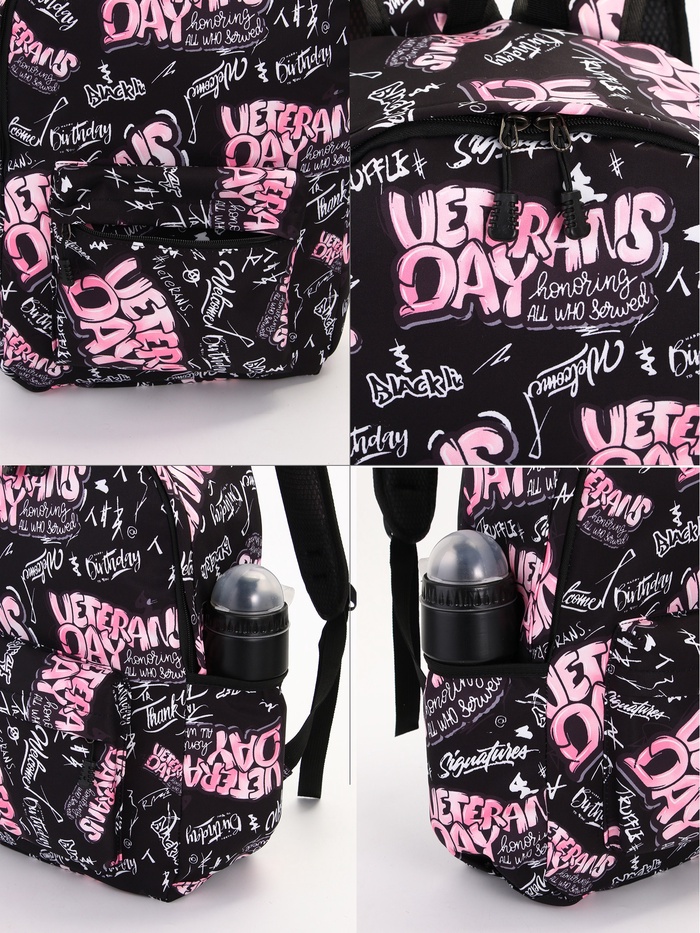 Рюкзак школьный на молнии, с карманами, с принтом, чёрный/розовый — Характеристики