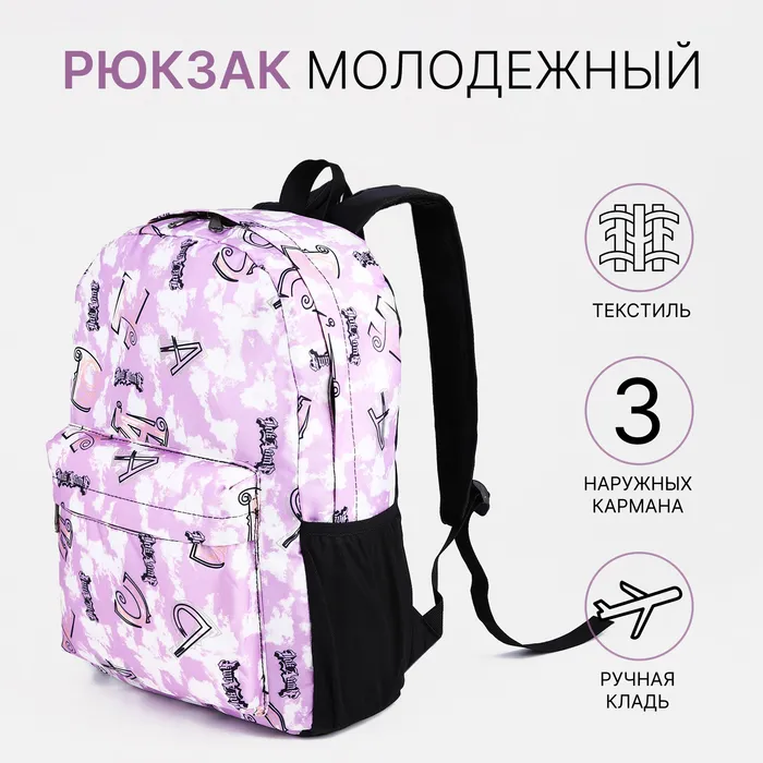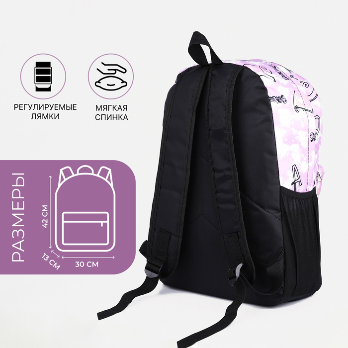 Рюкзак школьный на молнии, с карманами, с принтом, фиолетовый — Характеристики