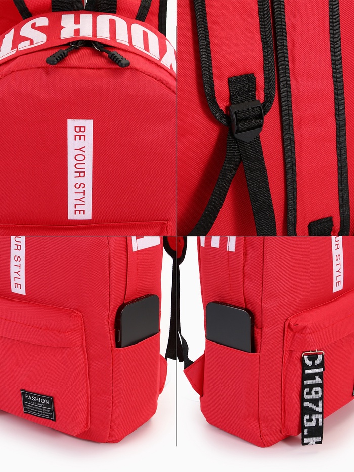 Рюкзак школьный на молнии, с карманами, с принтом, красный — Характеристики