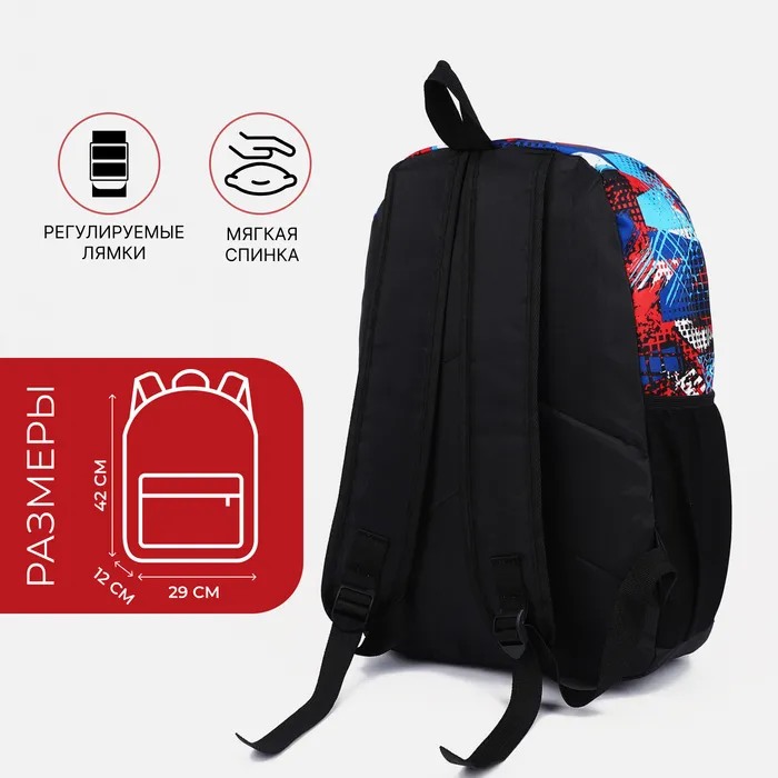 Рюкзак школьный на молнии, с карманами, с принтом, красный/голубой — Характеристики