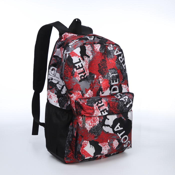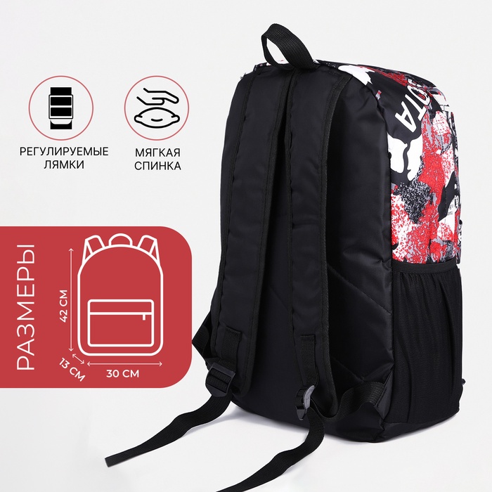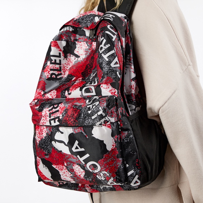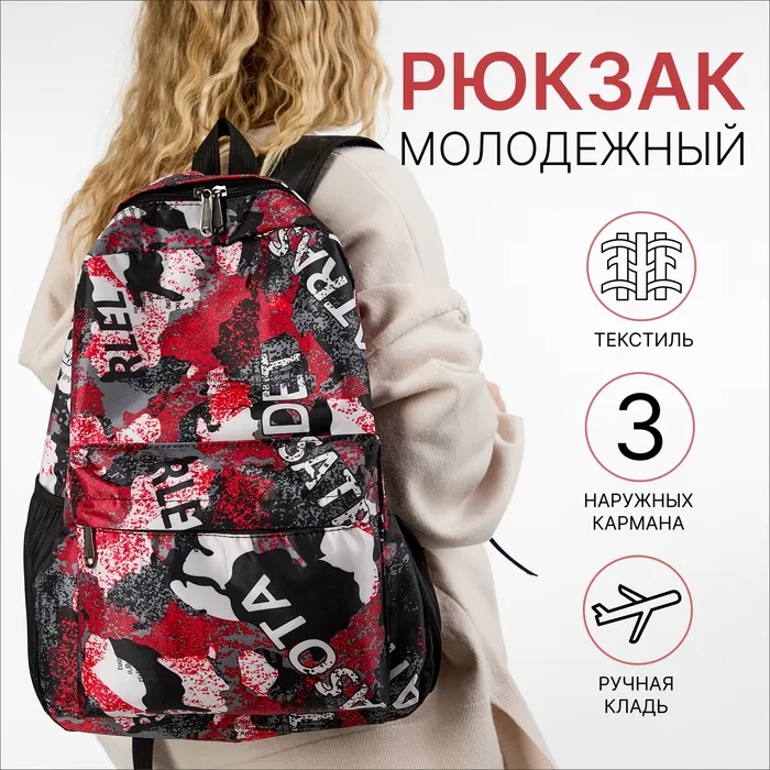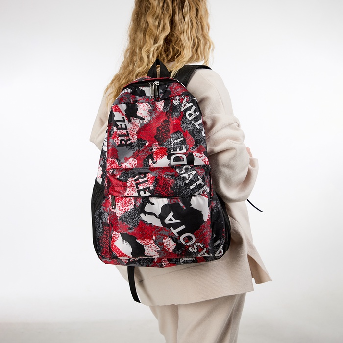 Рюкзак школьный на молнии, с карманами, с принтом, красный/серый — Характеристики
