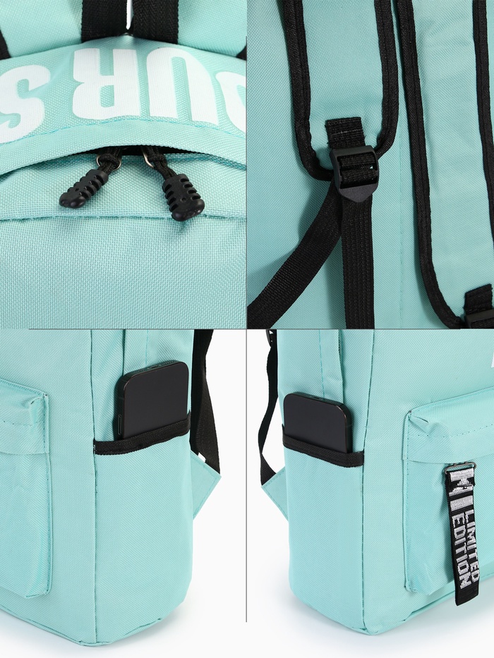Рюкзак школьный на молнии, с карманами, с принтом, мятный — Характеристики