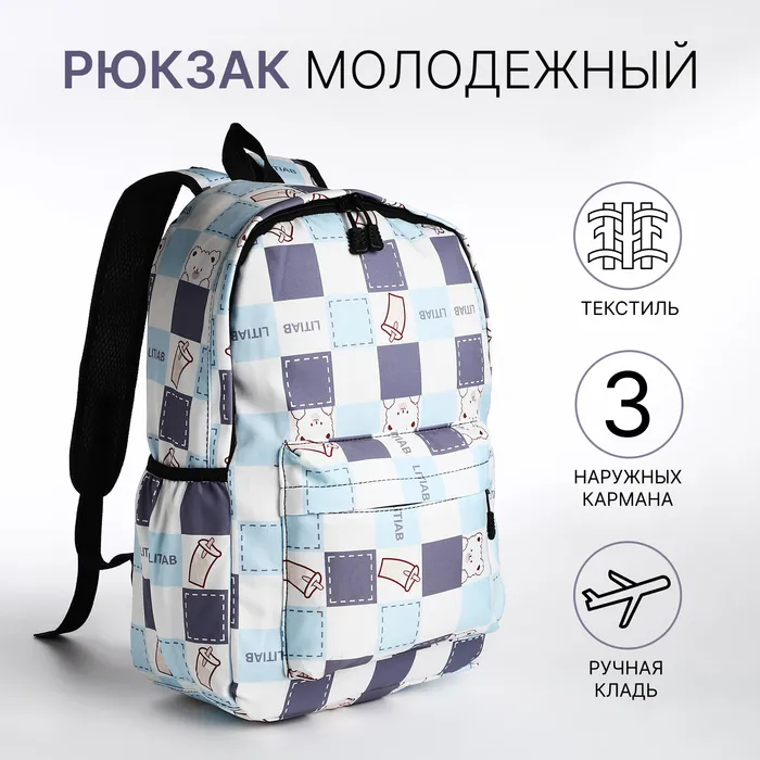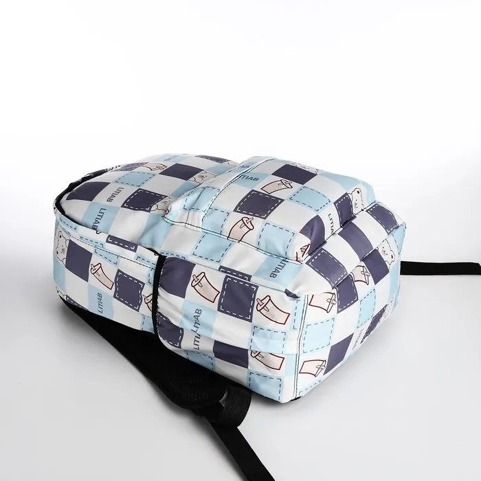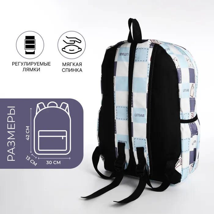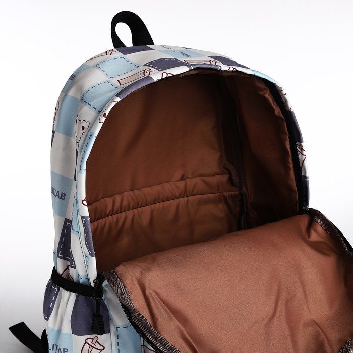 Рюкзак школьный на молнии, с карманами, с принтом, молочный/голубой — Характеристики