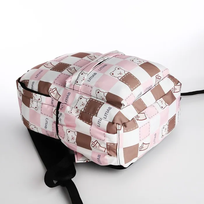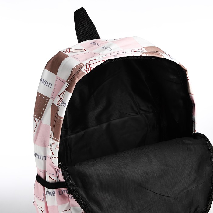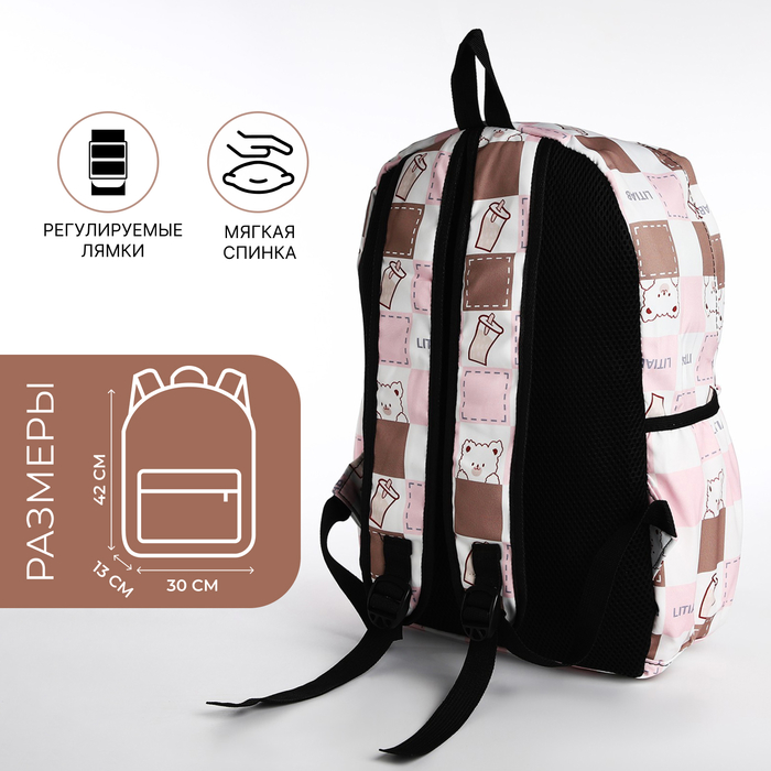Рюкзак школьный на молнии, с карманами, с принтом, молочный/розовый — Характеристики