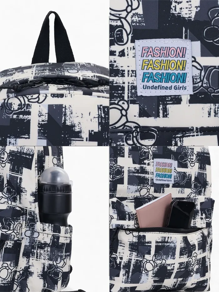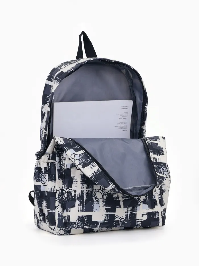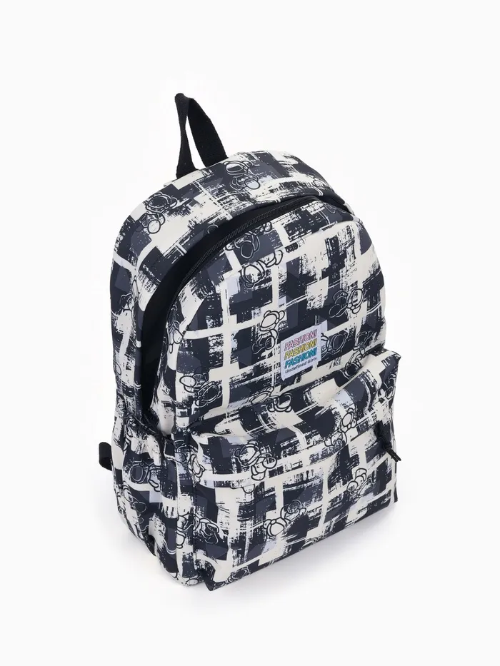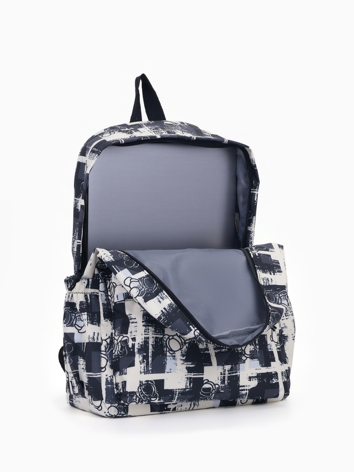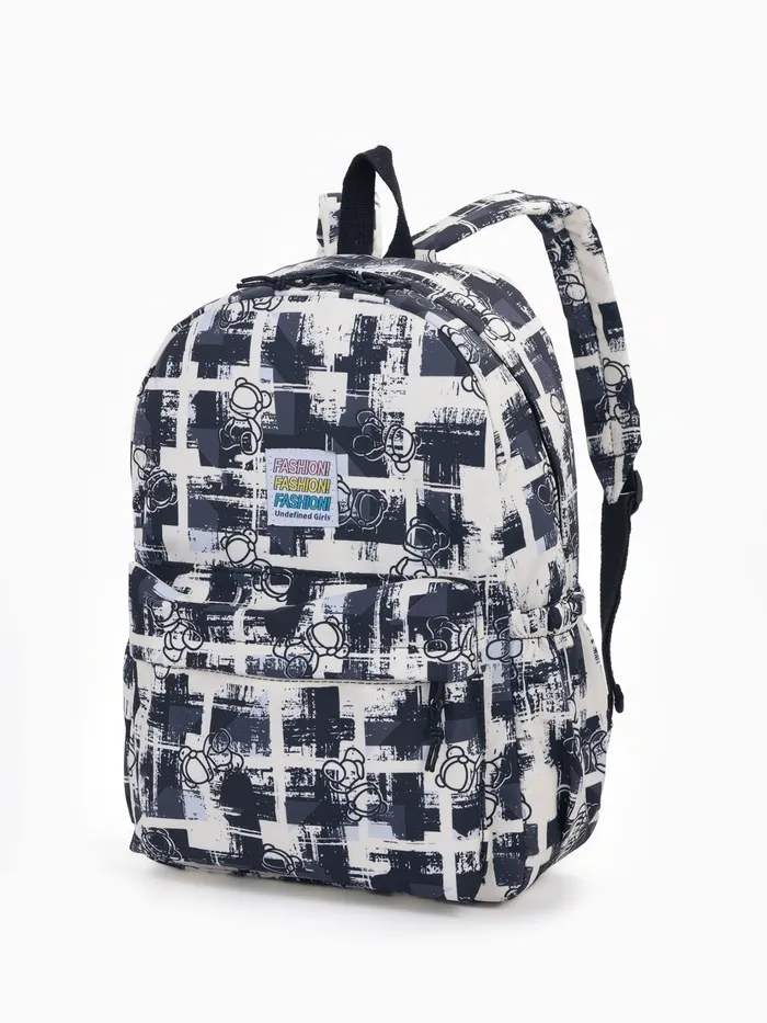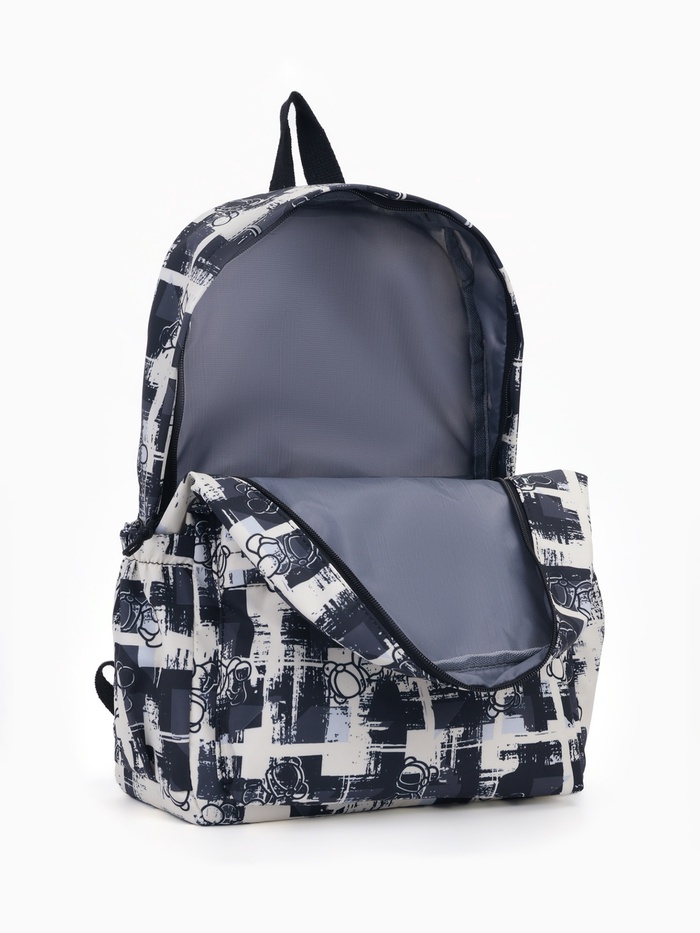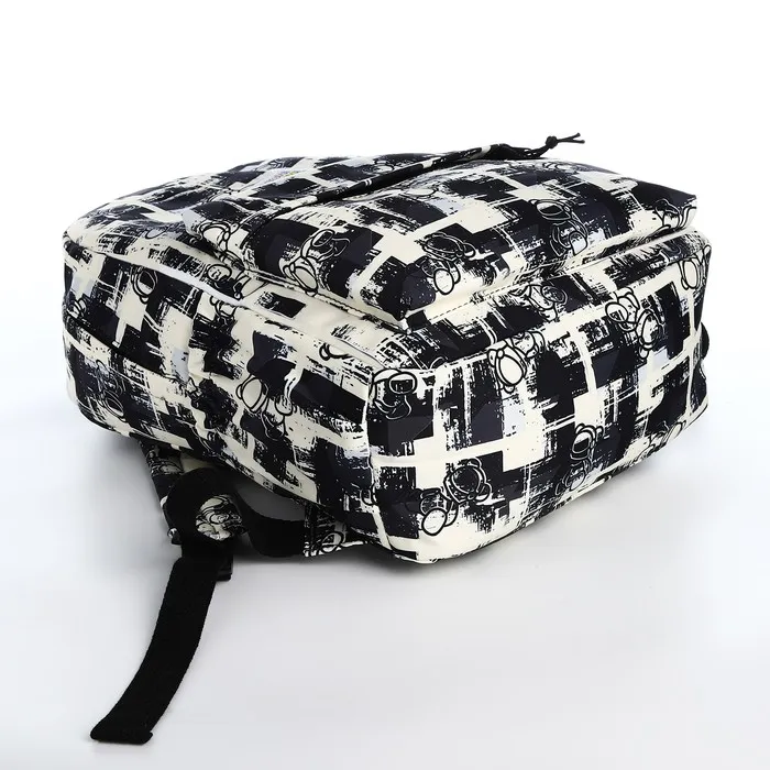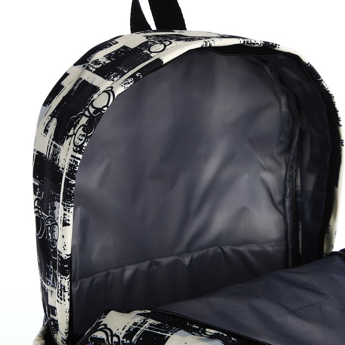 Рюкзак школьный на молнии, с карманами, с принтом, размер 28.5×12×41 см, чёрный — Характеристики