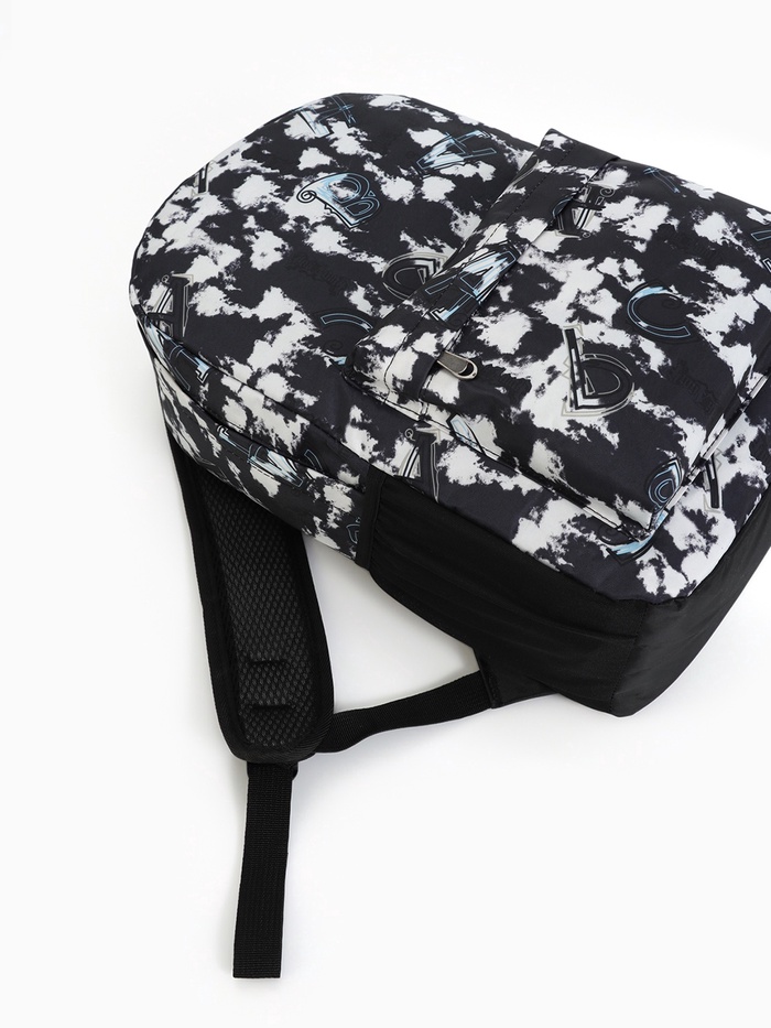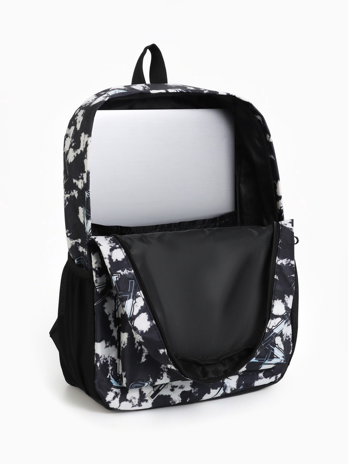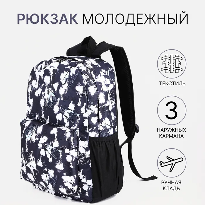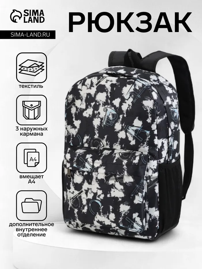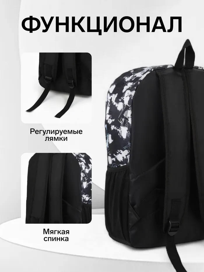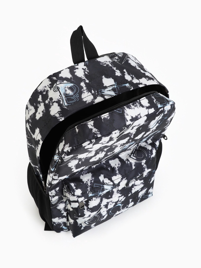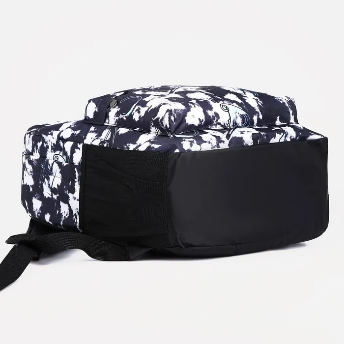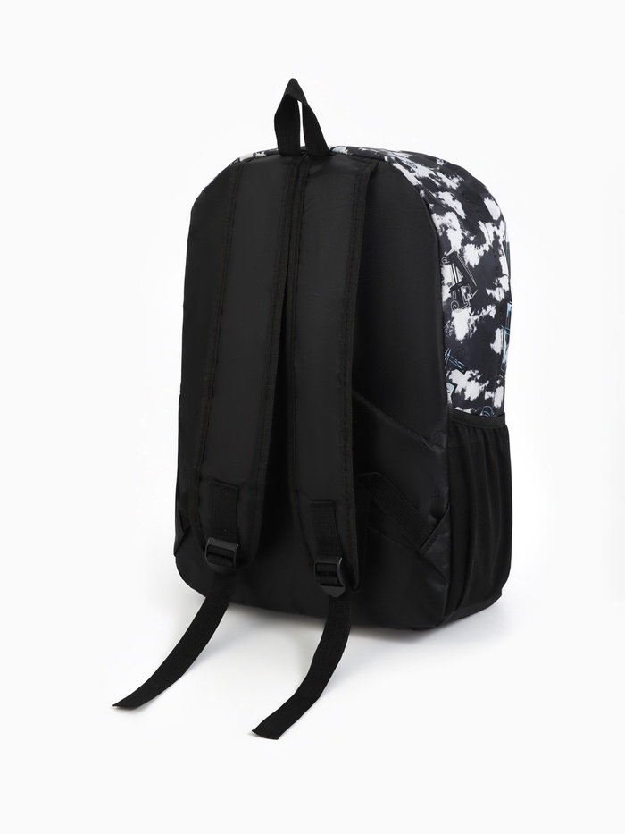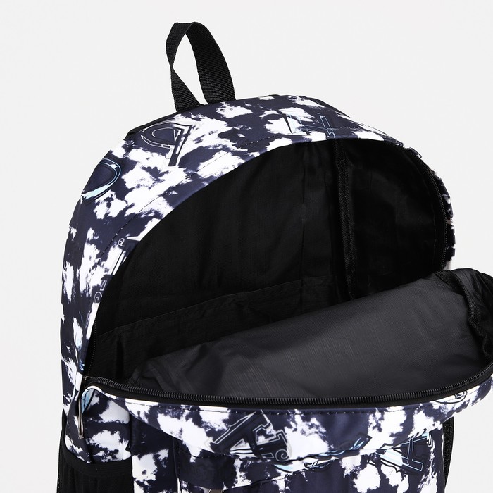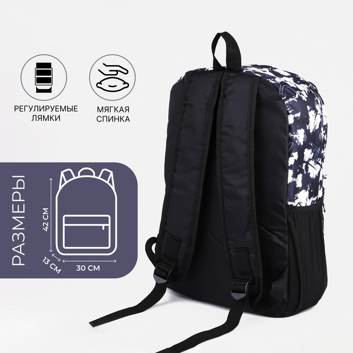 Рюкзак школьный на молнии, с карманами, с принтом, размер 30×13×42 см, чёрный/белый — Характеристики