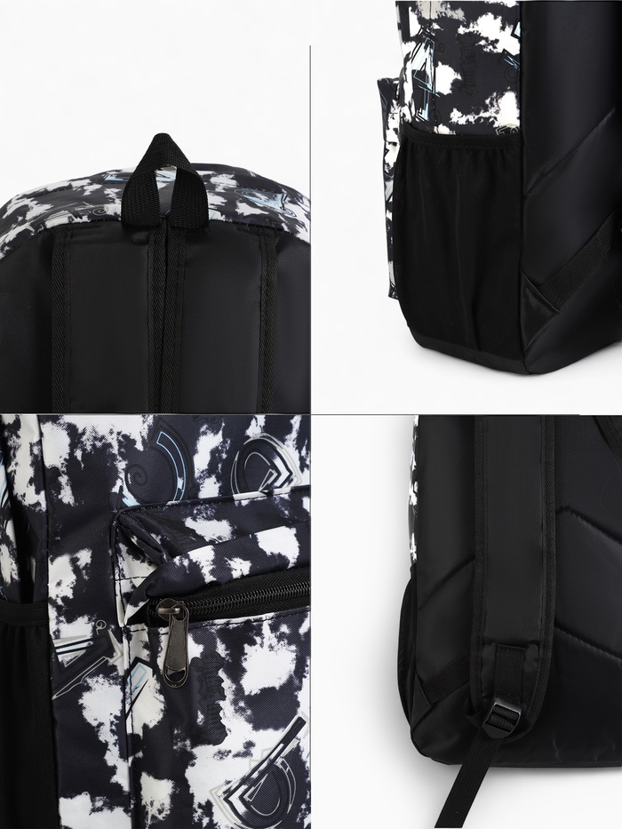 Этот школьный рюкзак с ярким принтом создан для учеников начальных классов, которые ценят удобство и индивидуальность. Чёрная основа с контрастным абстрактным рисунком становится выразительным акцентом в школьном образе, сочетая практичность с современным стилем.