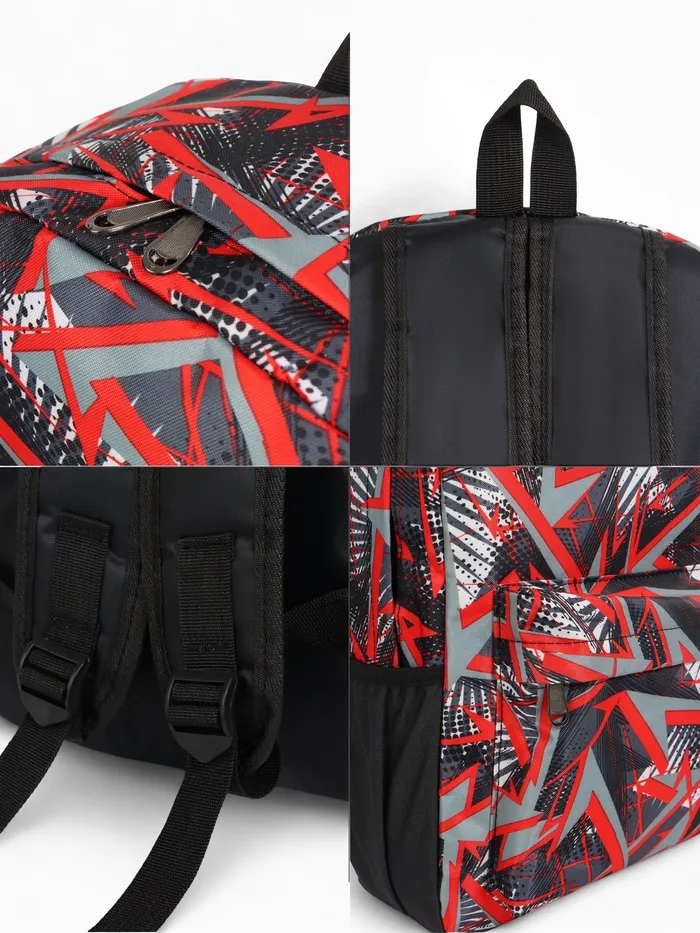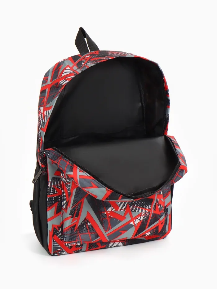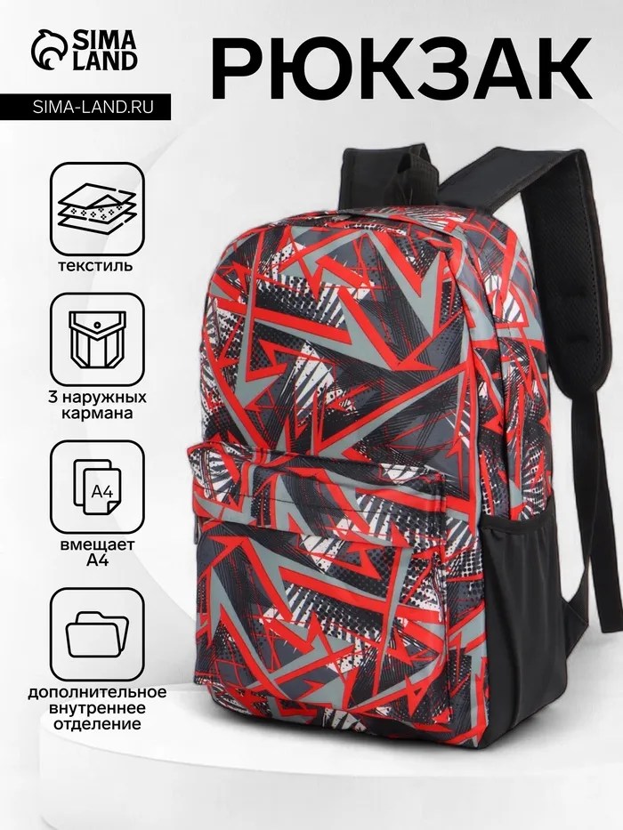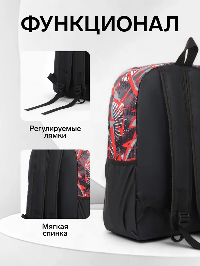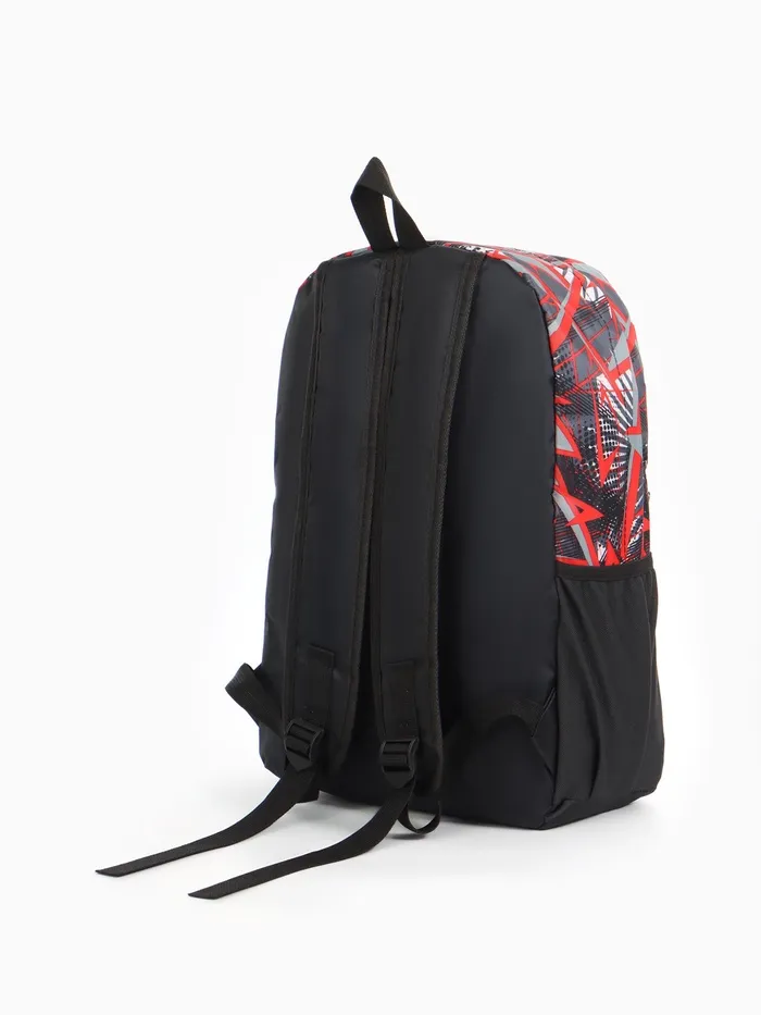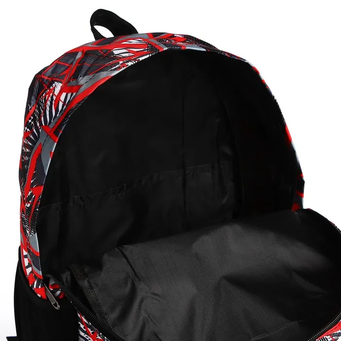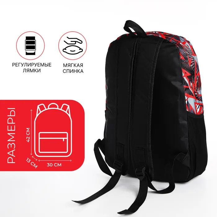 Рюкзак школьный на молнии, с карманами, с принтом, размер 30×13×42 см, чёрный/красный — Характеристики