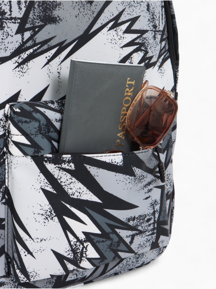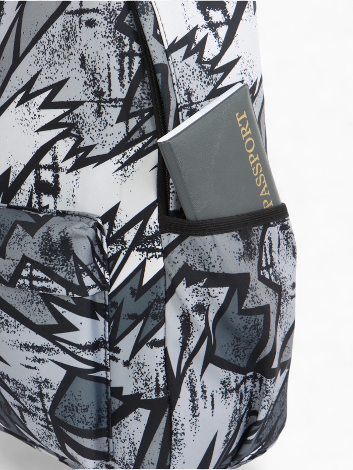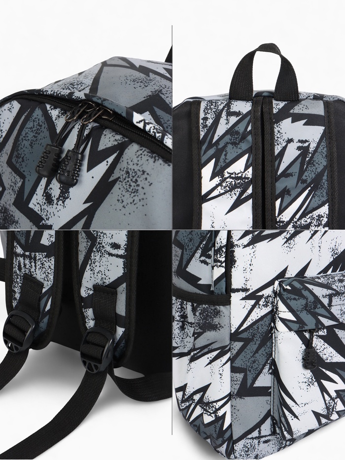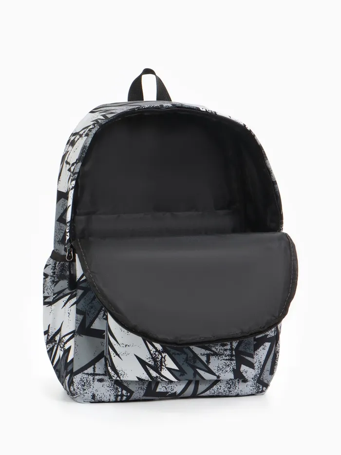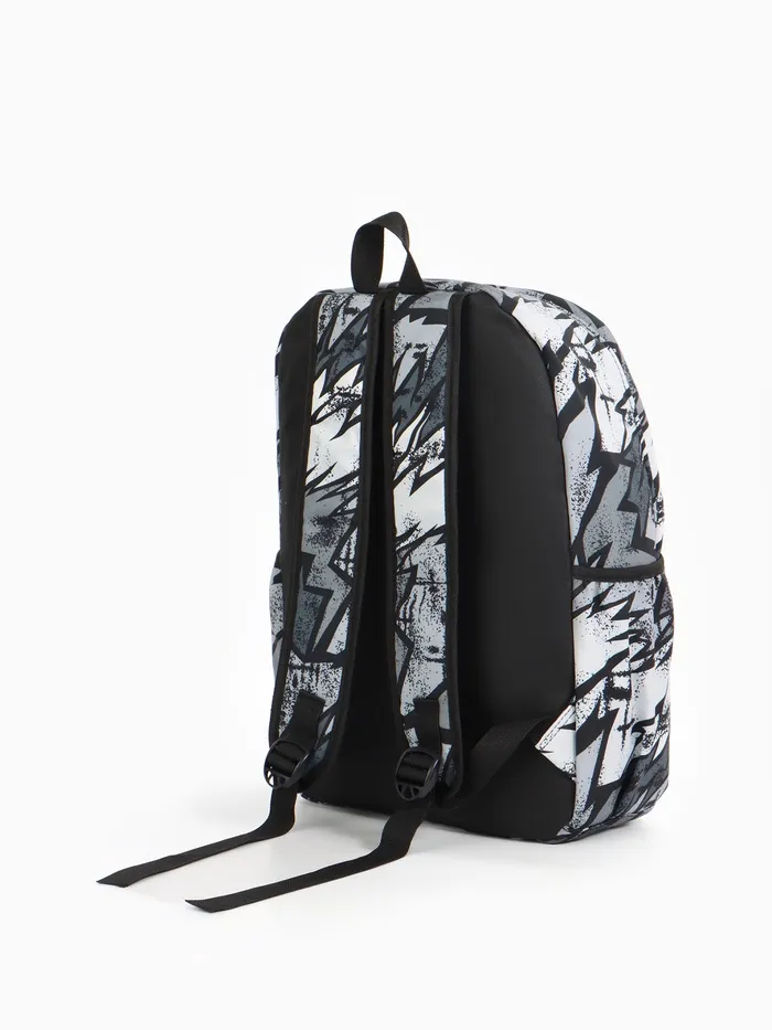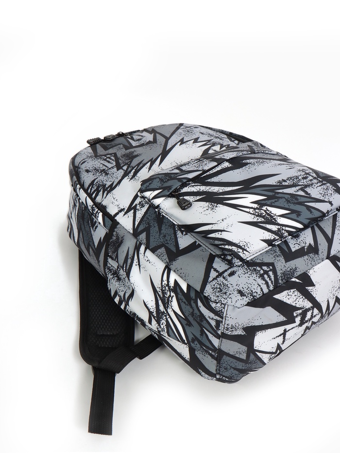 Рюкзак школьный на молнии, с карманами, с принтом, размер 30×13×42 см, чёрный/серый/белый — Характеристики