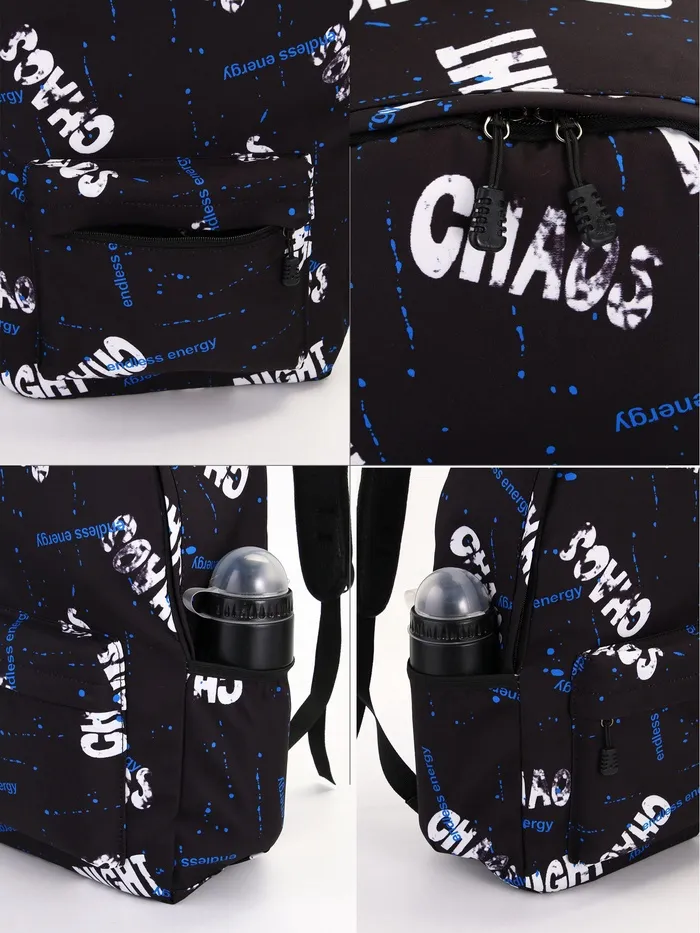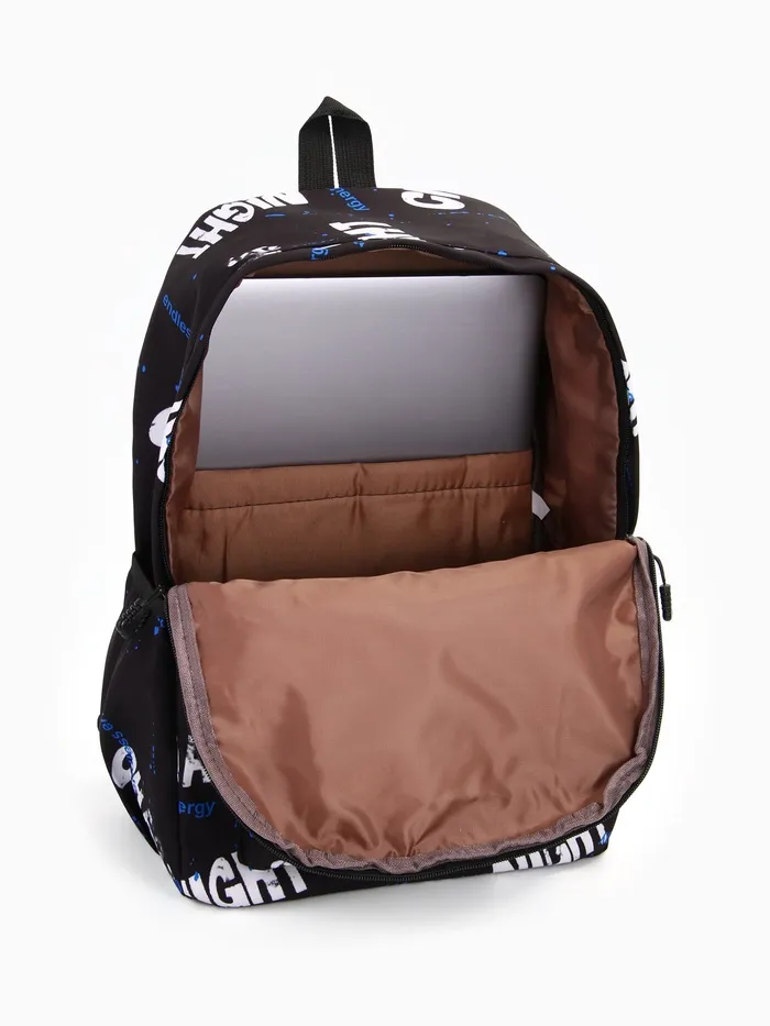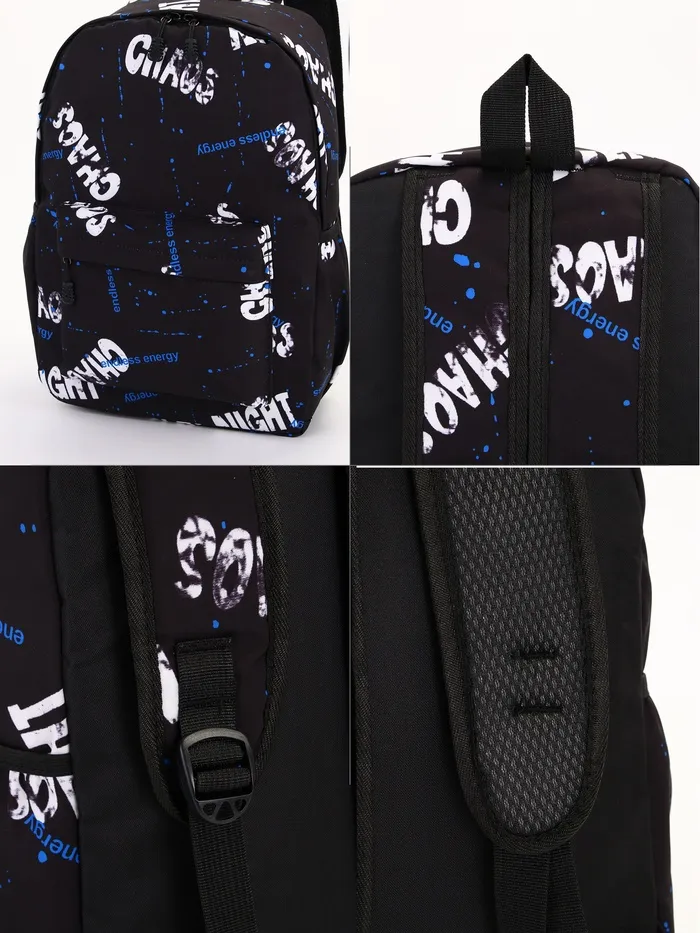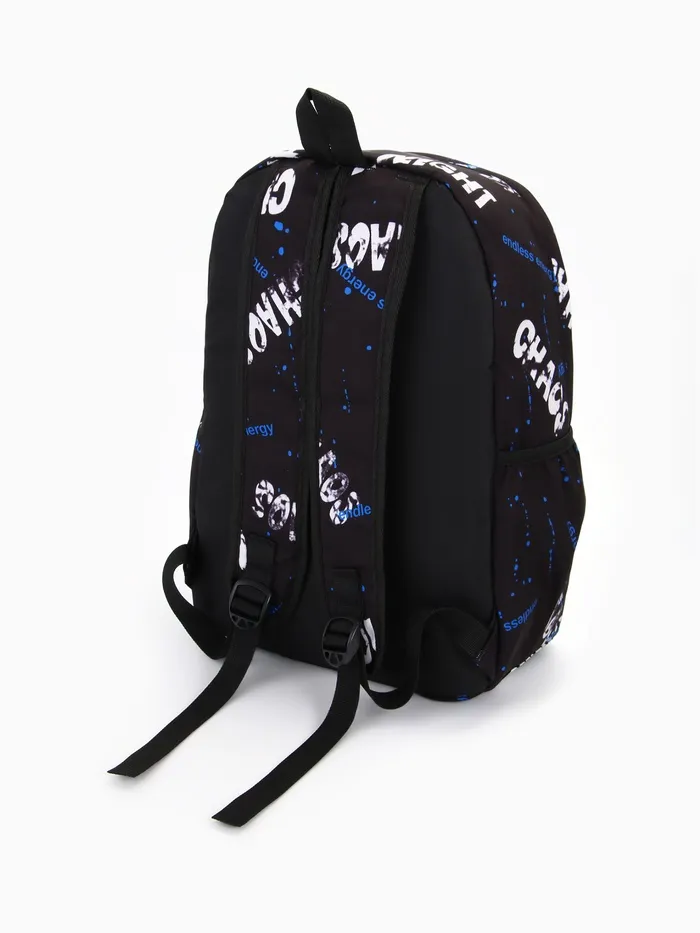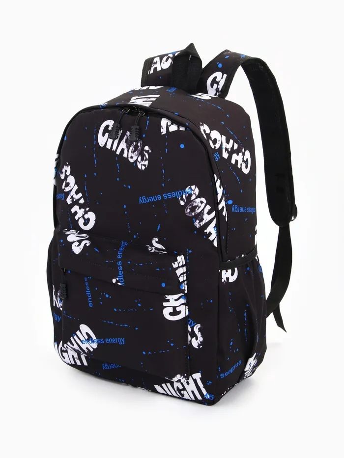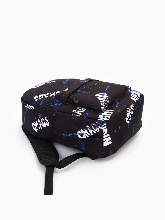 Рюкзак школьный на молнии, с карманами, с принтом, размер 30×13×42 см, чёрный/синий — Характеристики