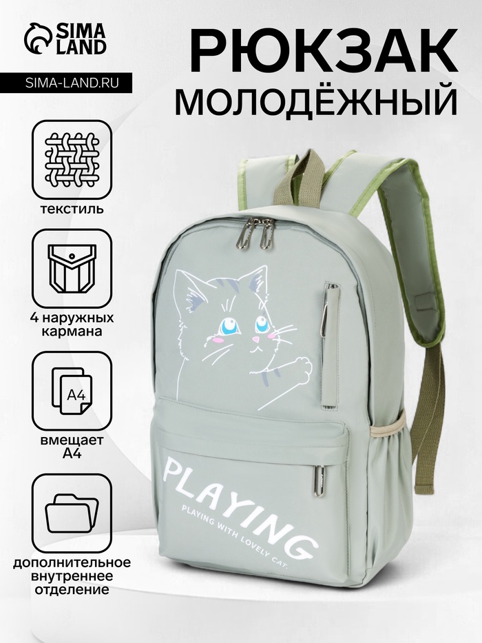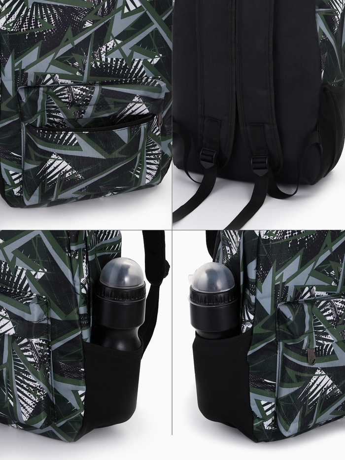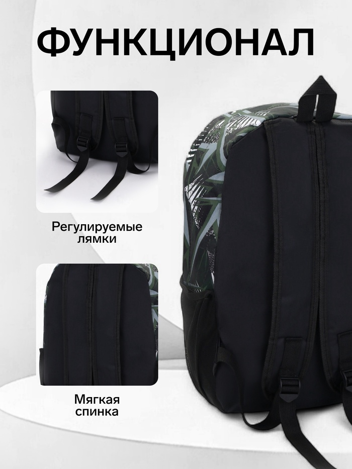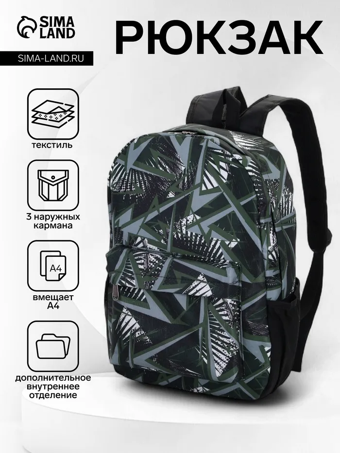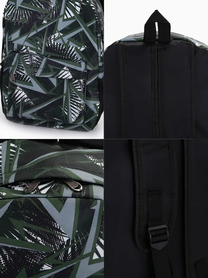 Рюкзак школьный на молнии, с карманами, с принтом, размер 30×13×42 см, разноцветный/тёмно-зелёный — Характеристики