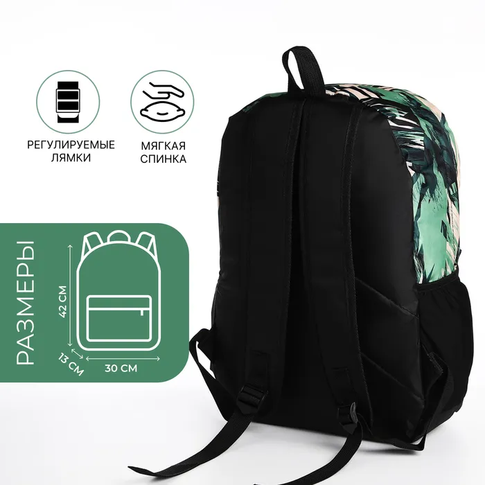 Рюкзак школьный на молнии, с карманами, с принтом, размер 30×13×42 см, разноцветный/зелёный — Характеристики