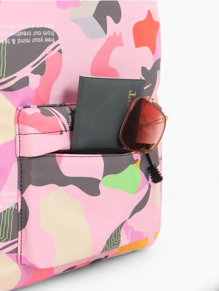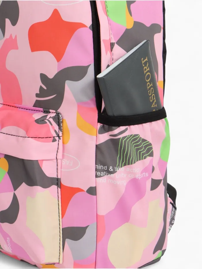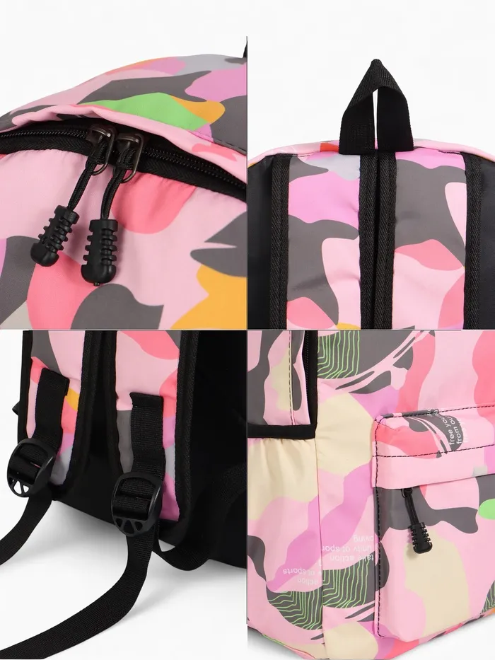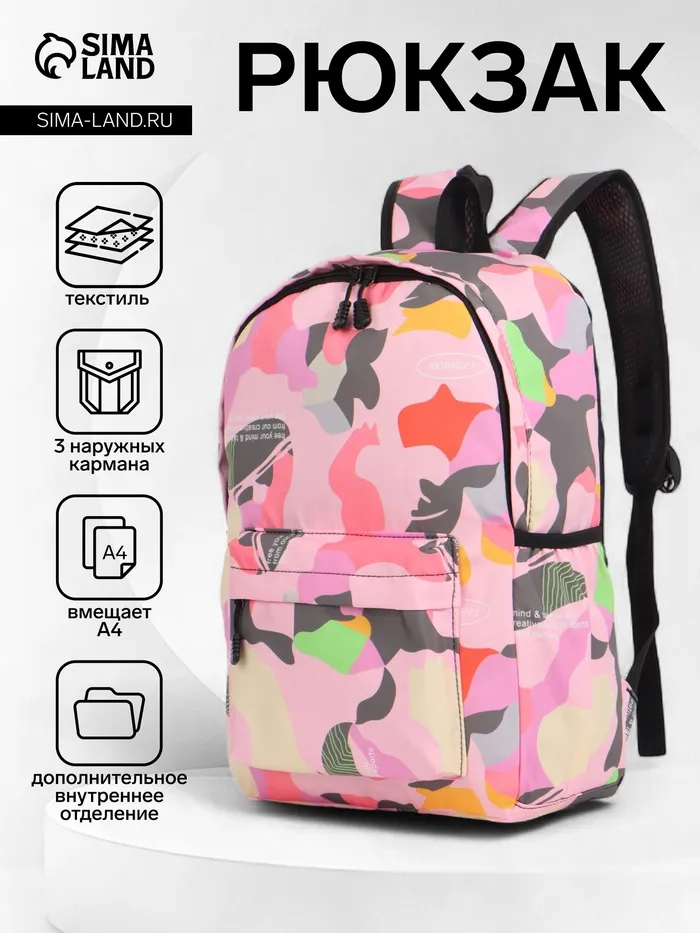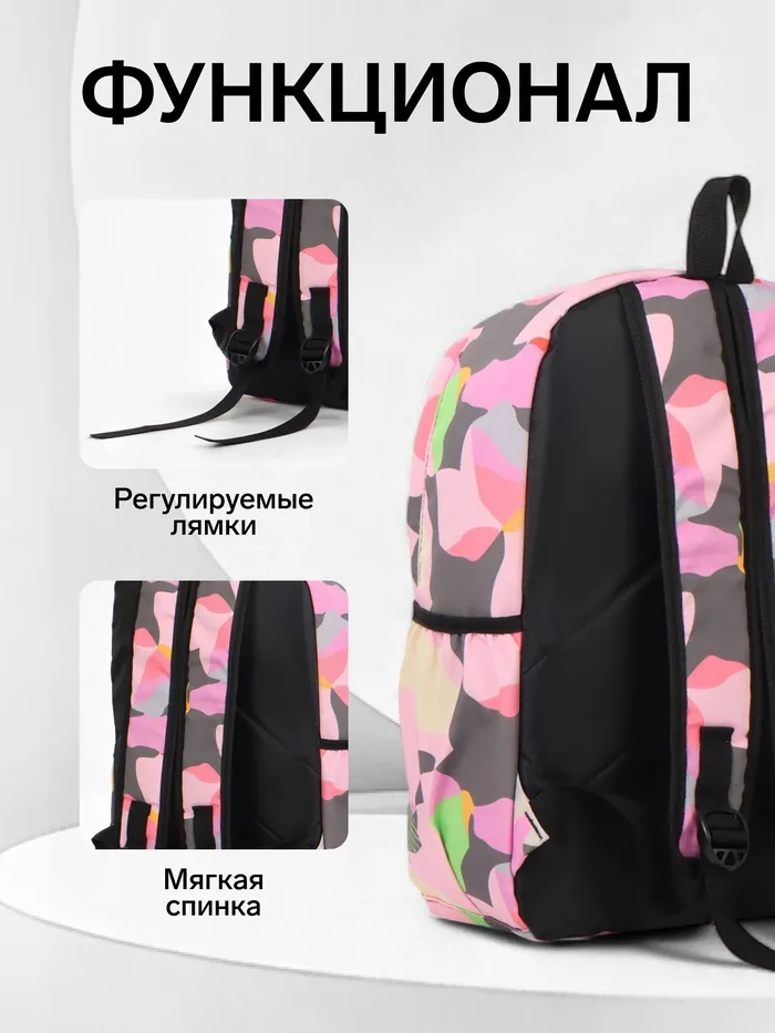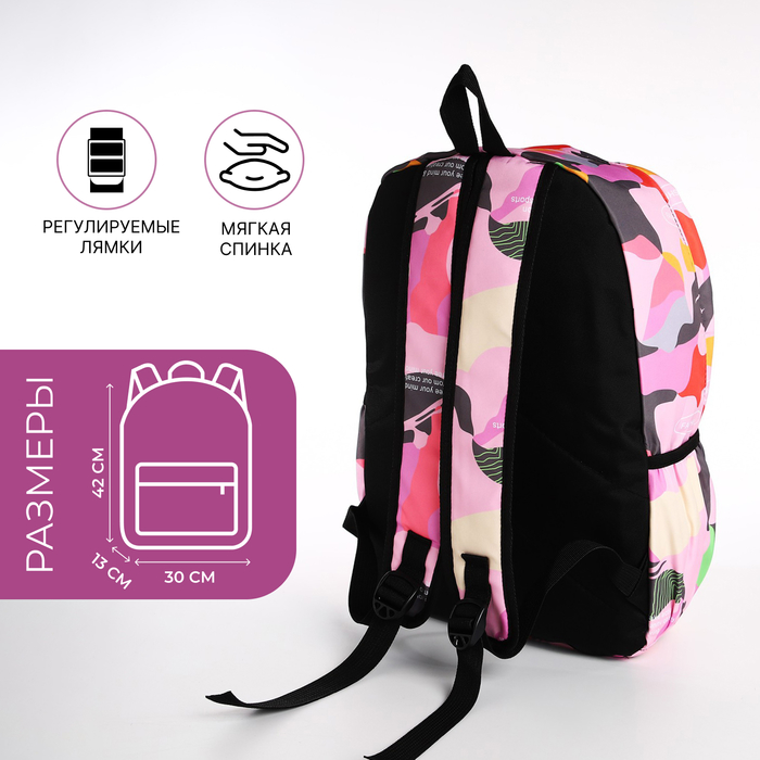 Рюкзак школьный на молнии, с карманами, с принтом, размер 30×13×42 см, розовый — Характеристики