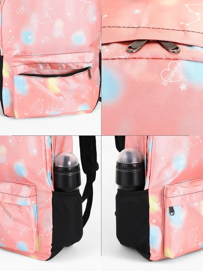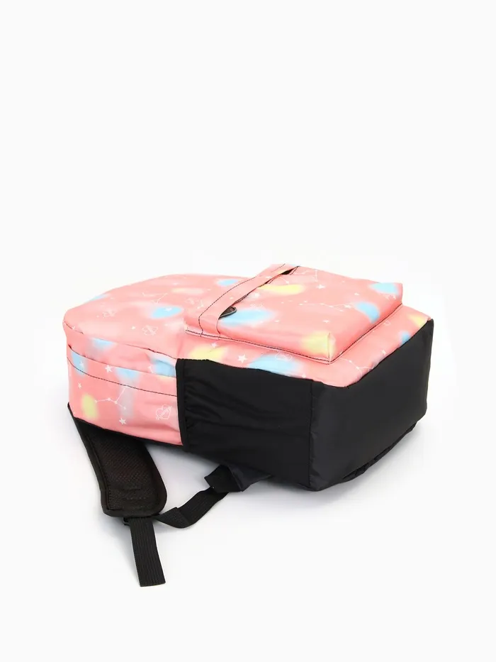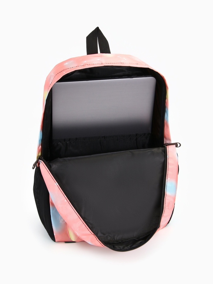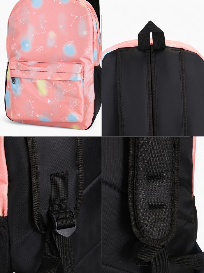 Рюкзак школьный на молнии, с карманами, с принтом, размер 30×13×42 см, розовый/голубой/белый — Характеристики