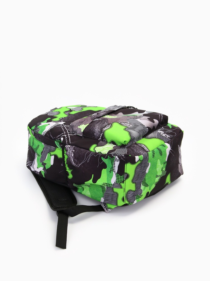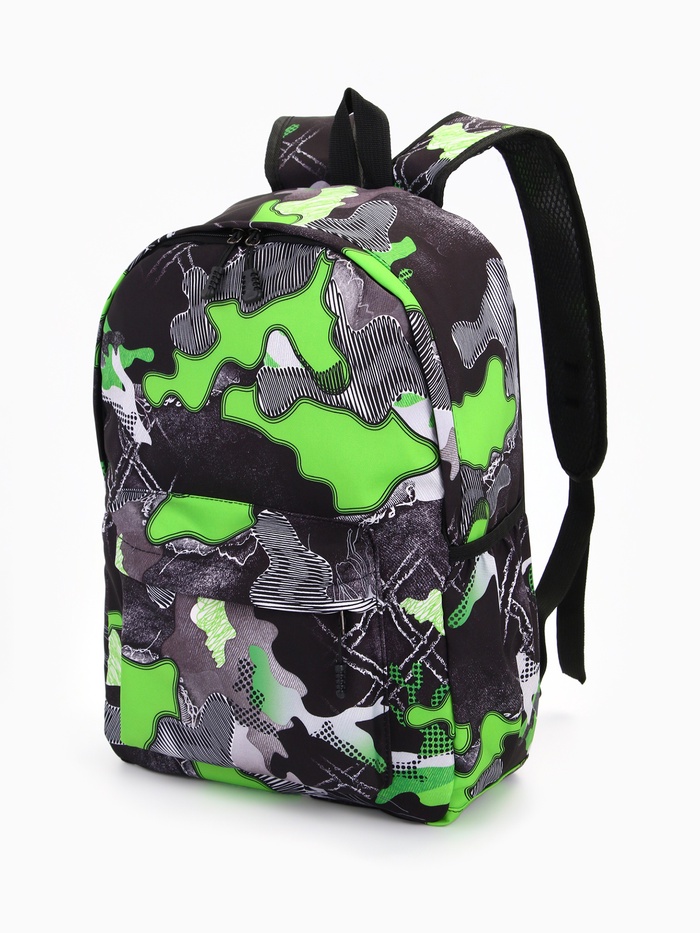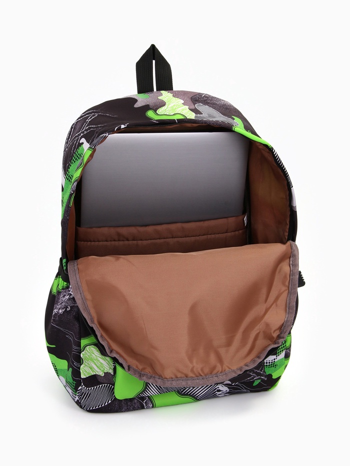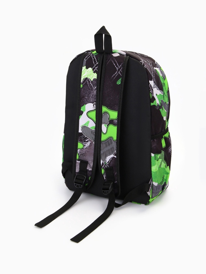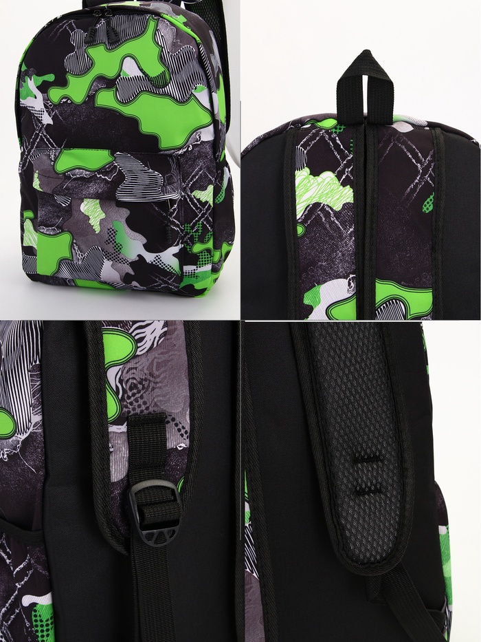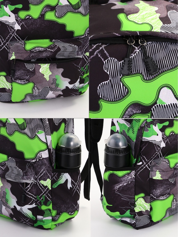 Рюкзак школьный на молнии, с карманами, с принтом, размер 30×13×42 см, серый/зелёный — Характеристики