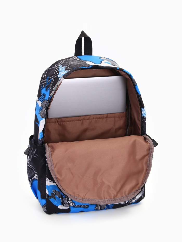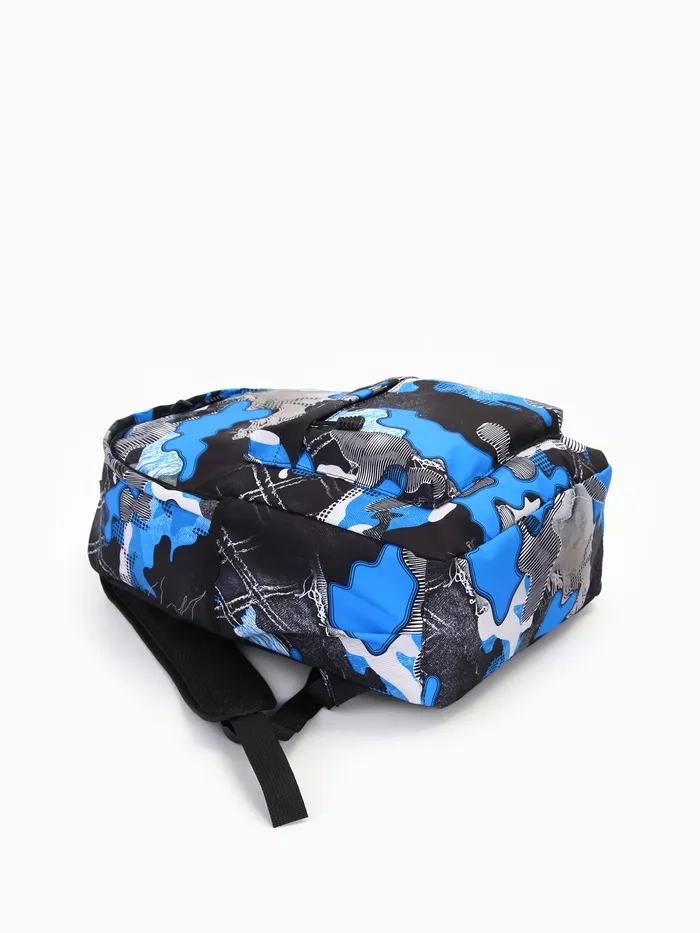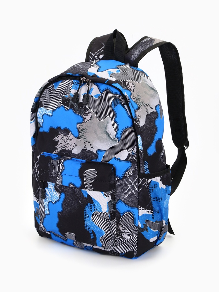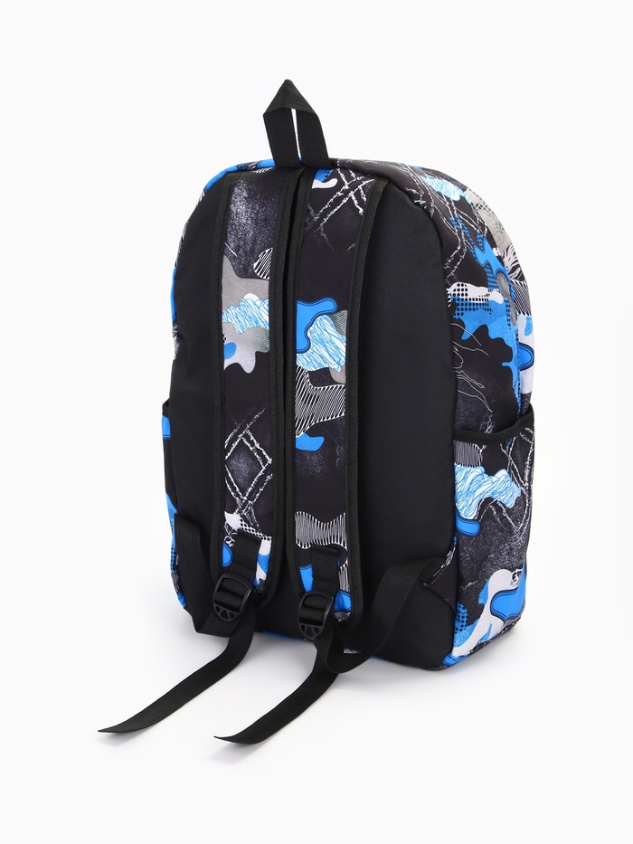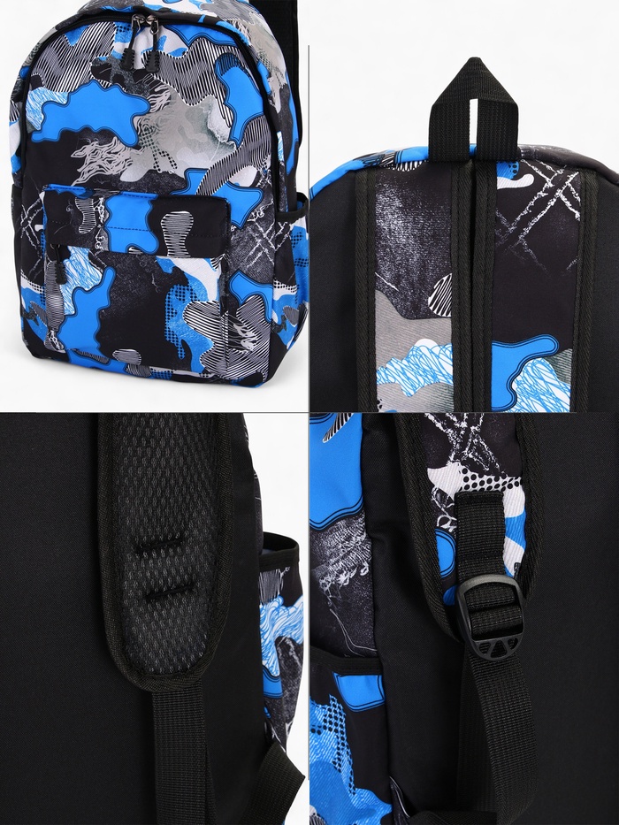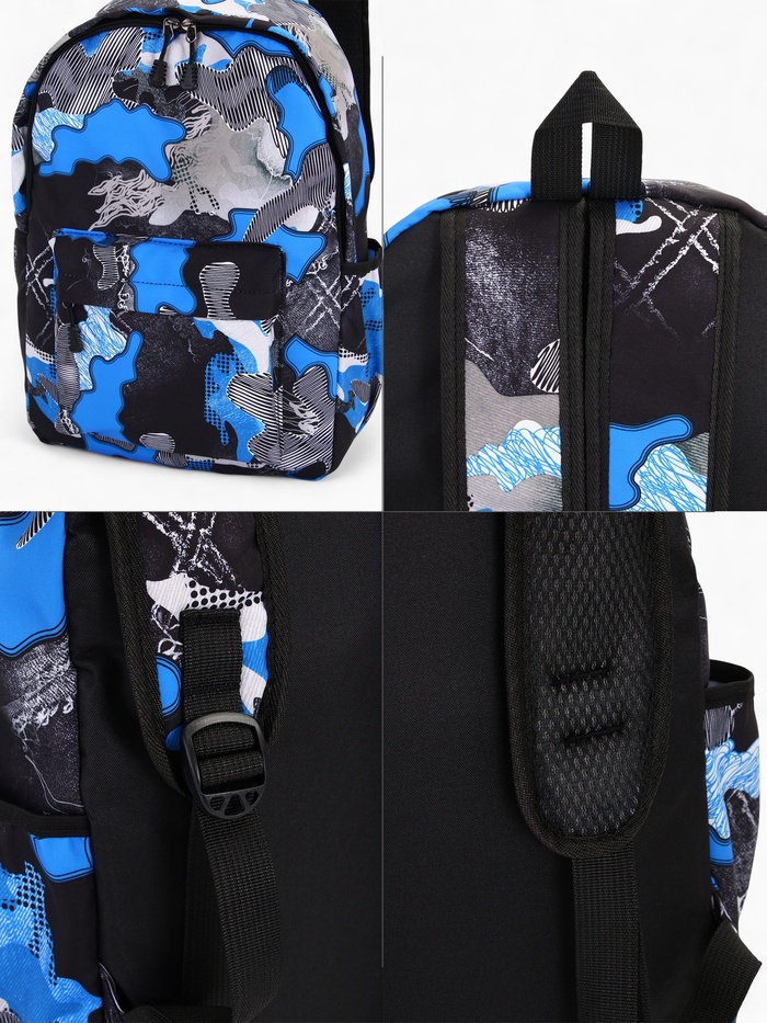 Рюкзак школьный на молнии, с карманами, с принтом, размер 30×13×42 см, синий/серый — Характеристики
