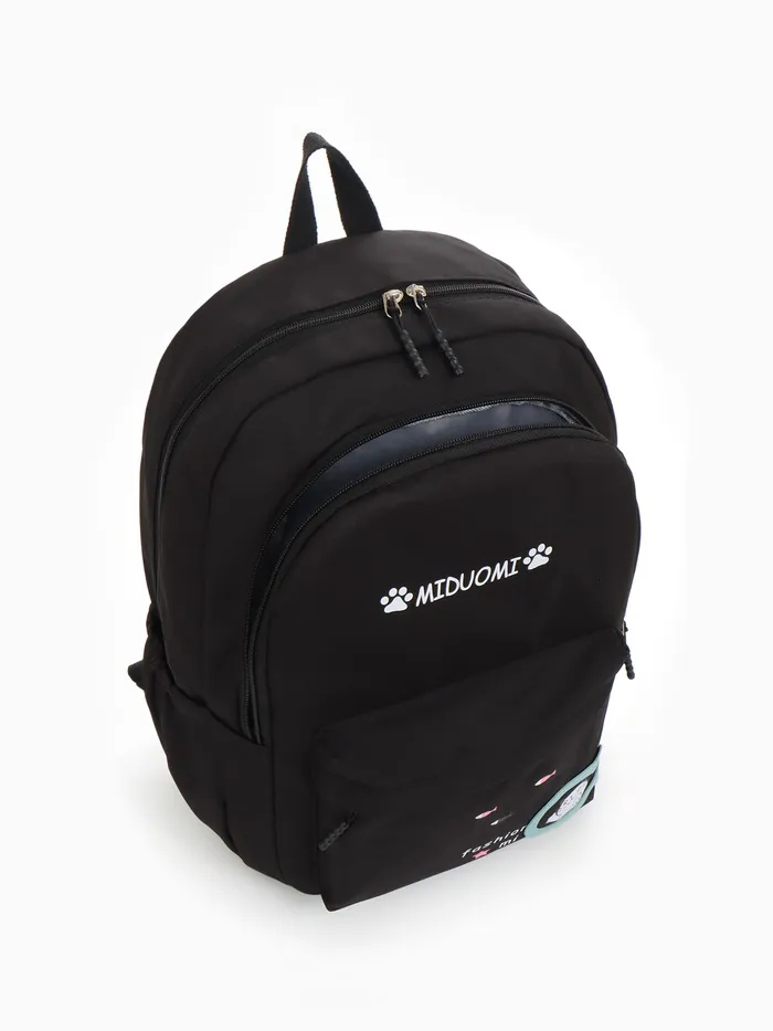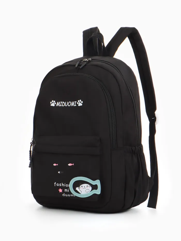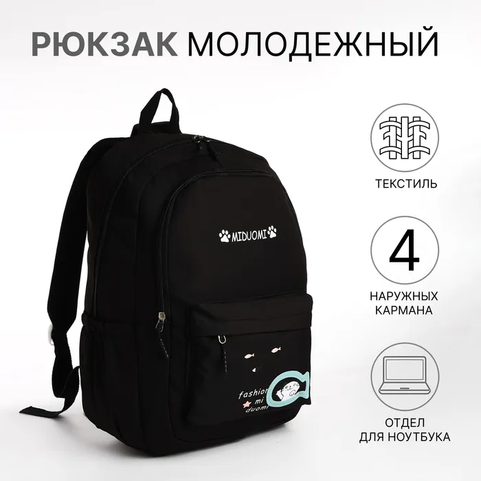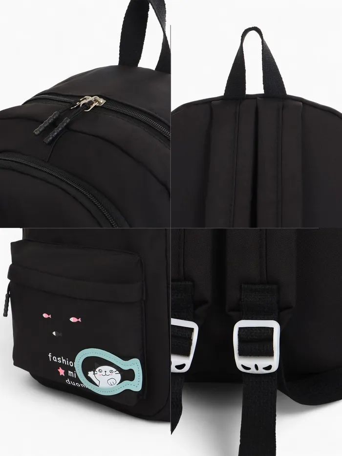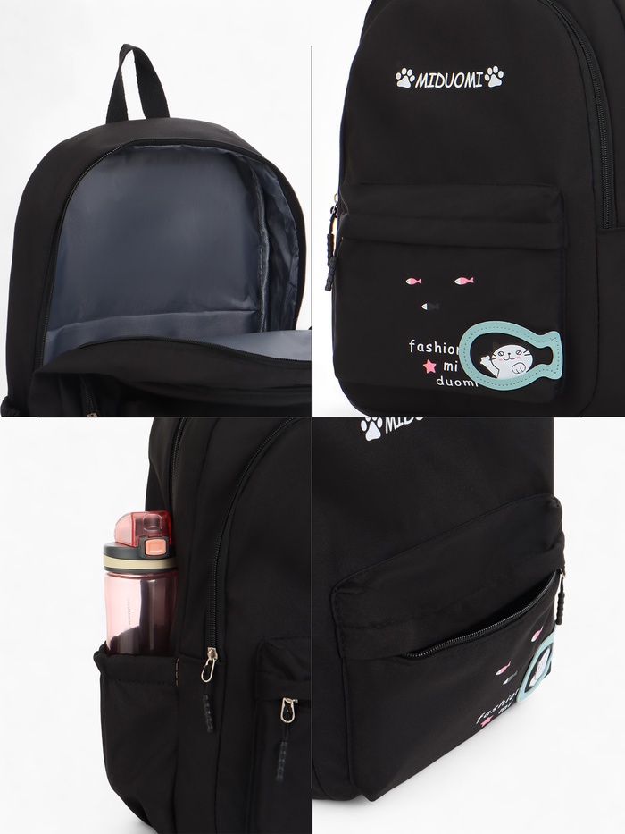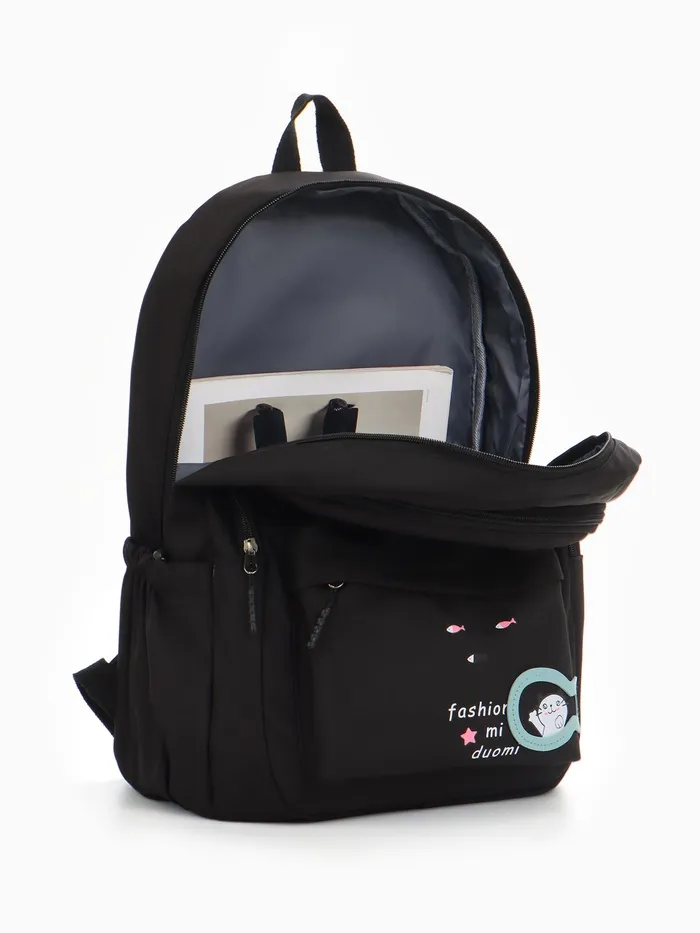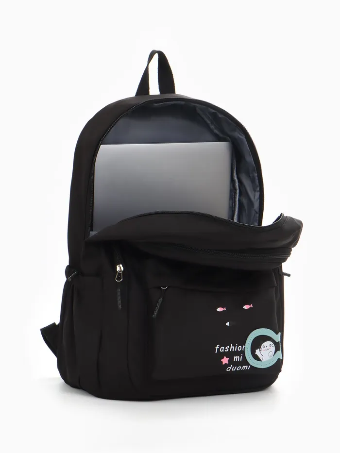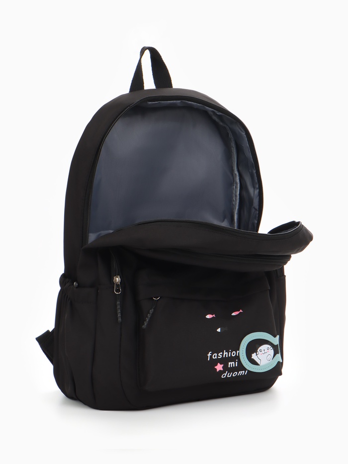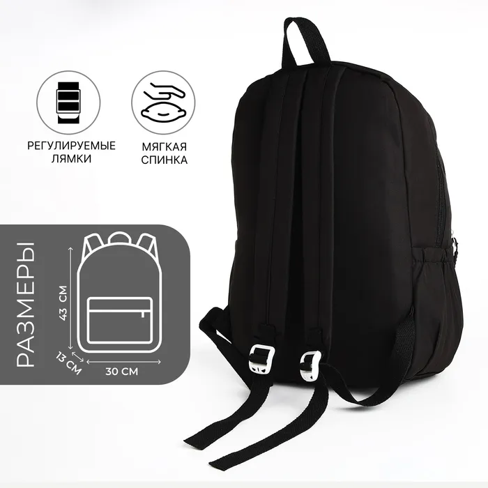 Рюкзак школьный на молнии, с карманами, с принтом, размер 30×13×43 см, чёрный — Характеристики