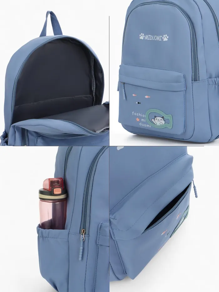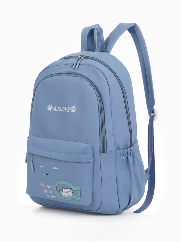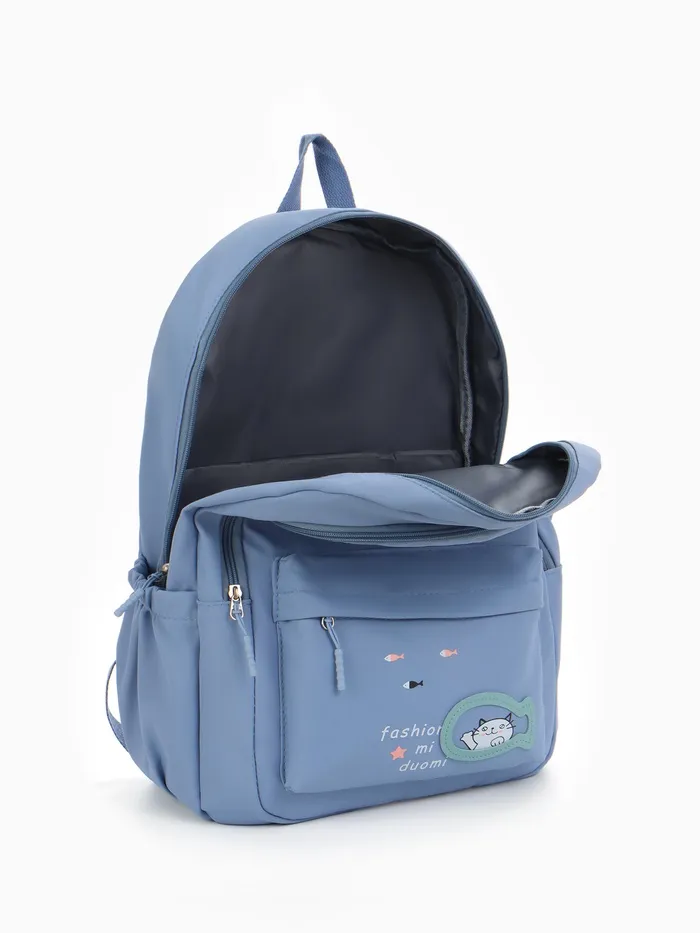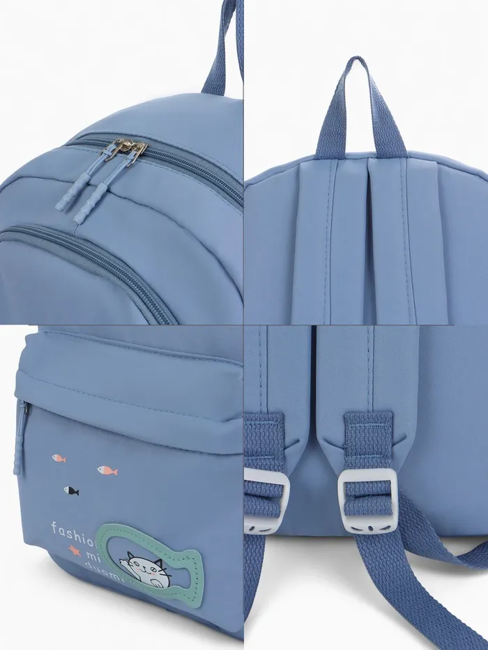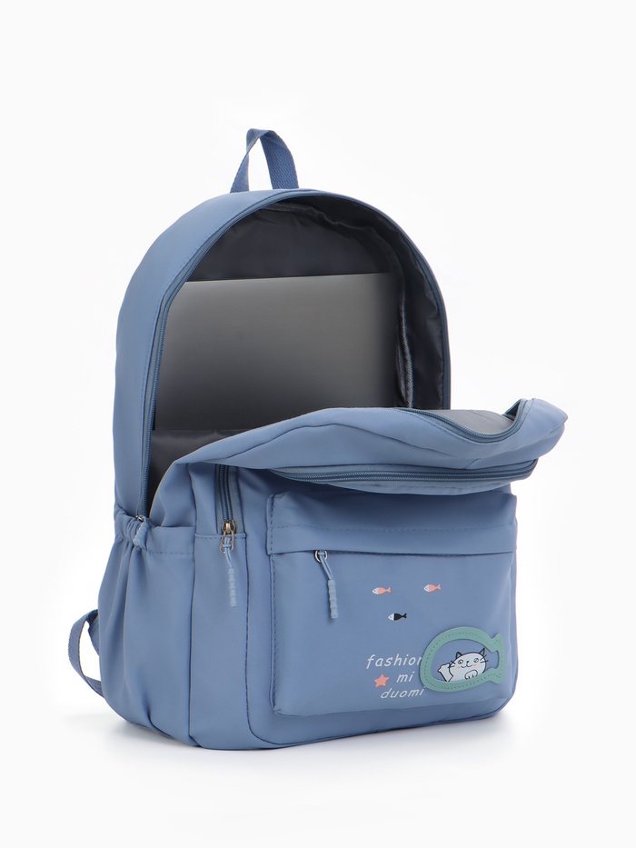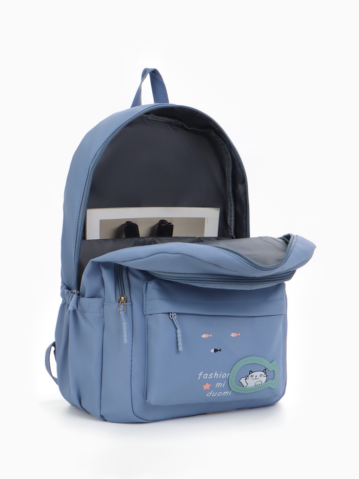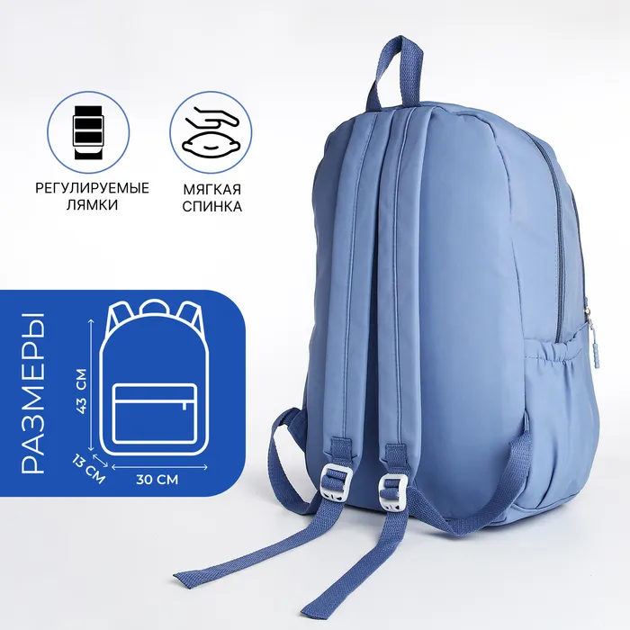 Рюкзак школьный на молнии, с карманами, с принтом, размер 30×13×43 см, голубой — Характеристики